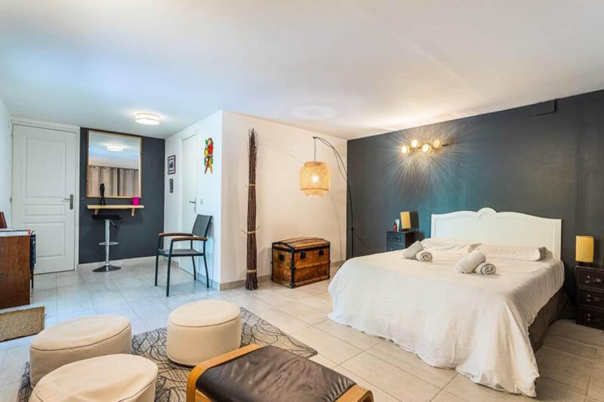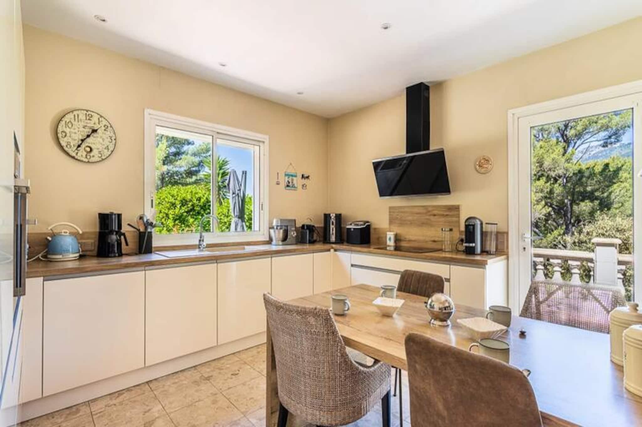 Midt i Toulons fredfyldte landskaber tilbyder denne udsøgte villa et roligt tilflugtssted for op til 10 gæster. Omgivet af frodige skove og bølgende bakker inviterer ejendommen dig til at slappe af i fredelige omgivelser, samtidig med at du stadig er tæt på Toulons pulserende middelhavscharme. Uanset om du søger afslapning eller eventyr, er denne villa den perfekte kulisse for uforglemmelige øjeblikke med familie eller venner. Villaen strækker sig over imponerende 183 m² og kan prale af en lys og luftig opholdsstue med en hyggelig pejs og elegante møbler. Det fuldt udstyrede køkken er et kulinarisk paradis med moderne apparater såsom grill, kaffemaskine og ismaskine, der sikrer, at hvert måltid er en fryd. Med fem komfortable soveværelser, herunder tre med 160 x 220 cm senge og to med 140 x 220 cm senge, samt fire badeværelser, tilbyder villaen rigelig plads og privatliv for alle. Yderligere faciliteter som aircondition, Wi-Fi, vaskemaskine og satellit-tv sikrer et problemfrit og behageligt ophold. Træd udenfor for at opdage en 1200 m² stor privat oase designet til afslapning og underholdning. Dyk ned i den store swimmingpool, solbad på liggestolene, eller nyd en middag under den skyggefulde pergola. Den frodige have, petanquebanen og den møblerede terrasse skaber idylliske omgivelser til socialt samvær eller blot at nyde den naturlige skønhed. Privat parkering øger bekvemmeligheden, mens villaens nærhed til Toulons strande, havn og berømte restauranter som ...
