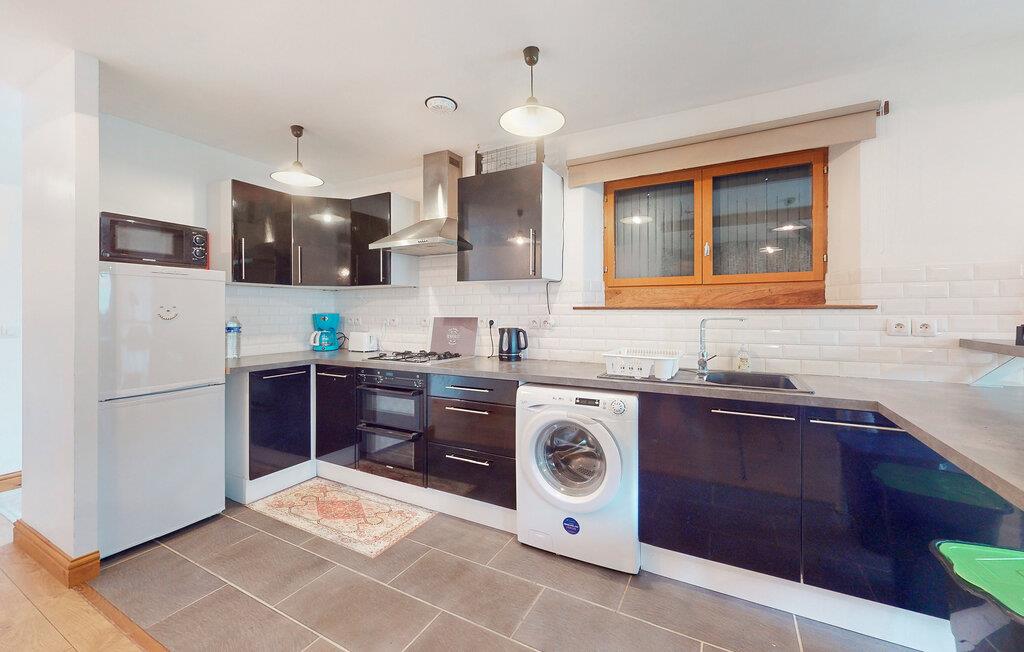 Det moderne køkken indbyder til fælles madlavning og er udstyret med alt, hvad I har brug for. Nyd måltiderne i det store spiseområde, der har plads til alle og ligger i direkte forbindelse med opholdsstuen.