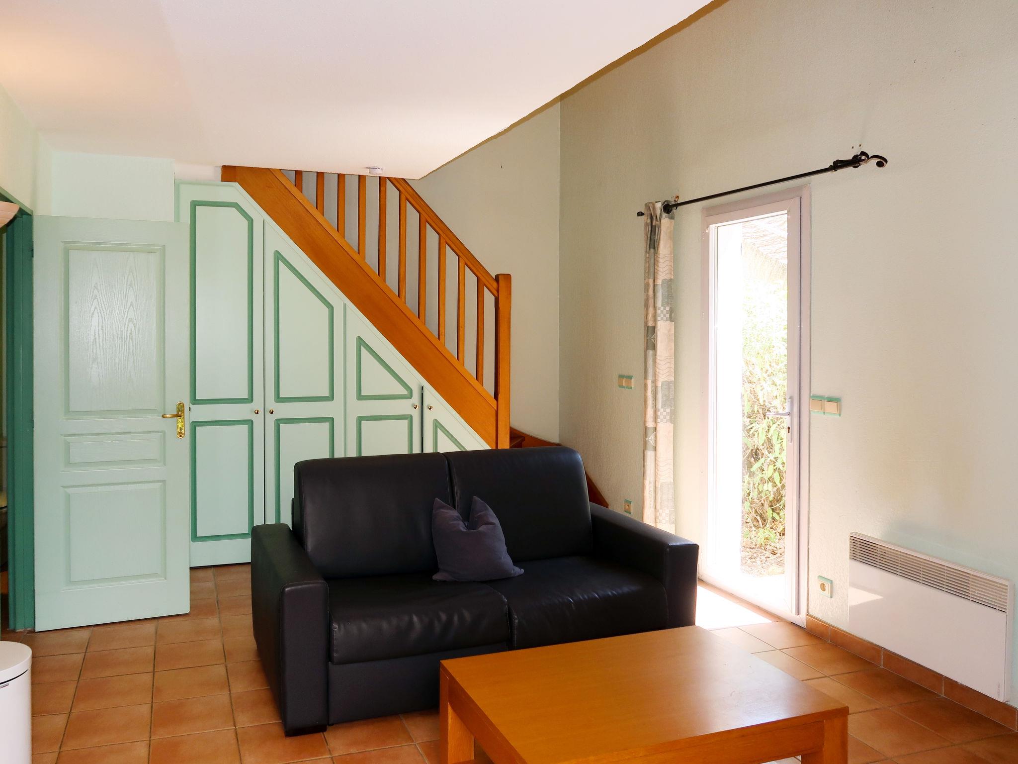 "Les Bastides de Fayence", 3-room terraced house 46 m2 on 2 levels. Bright, beautiful and cosy furnishings: living/sleeping room with 1 double sofabed, dining table and TV. Exit to the terrace. Open kitchen (4 hot plates, dishwasher, microwave, electric coffee machine). Shower/WC. Upper floor: 2 rooms, each room with 1 french bed. Electric heating. Terrace. Terrace furniture. Facilities: Internet (WiFi, free). Please note: non-smokers only. Maximum 1 pet/ dog allowed. Smoke alarm, fire extinguisher.