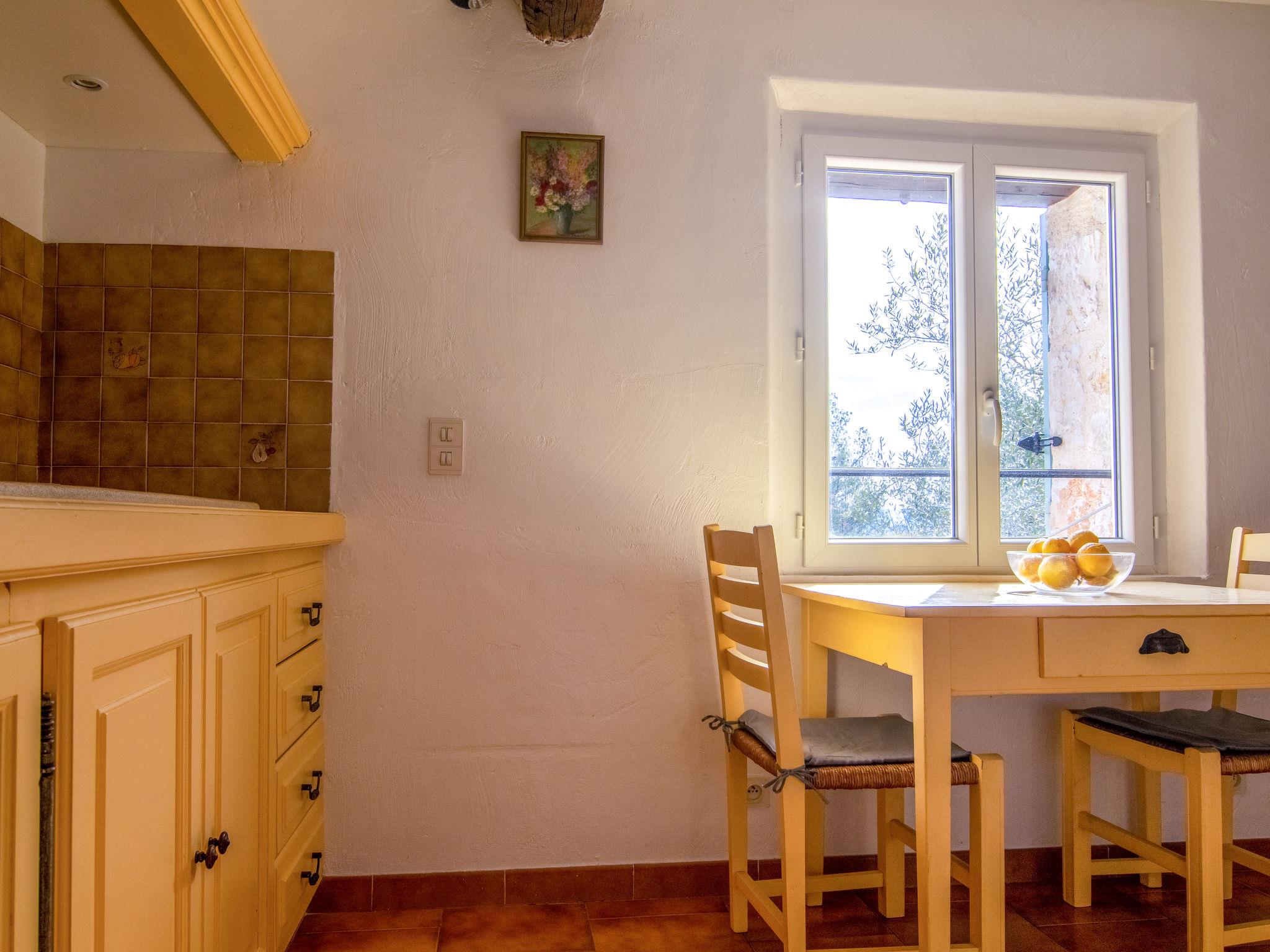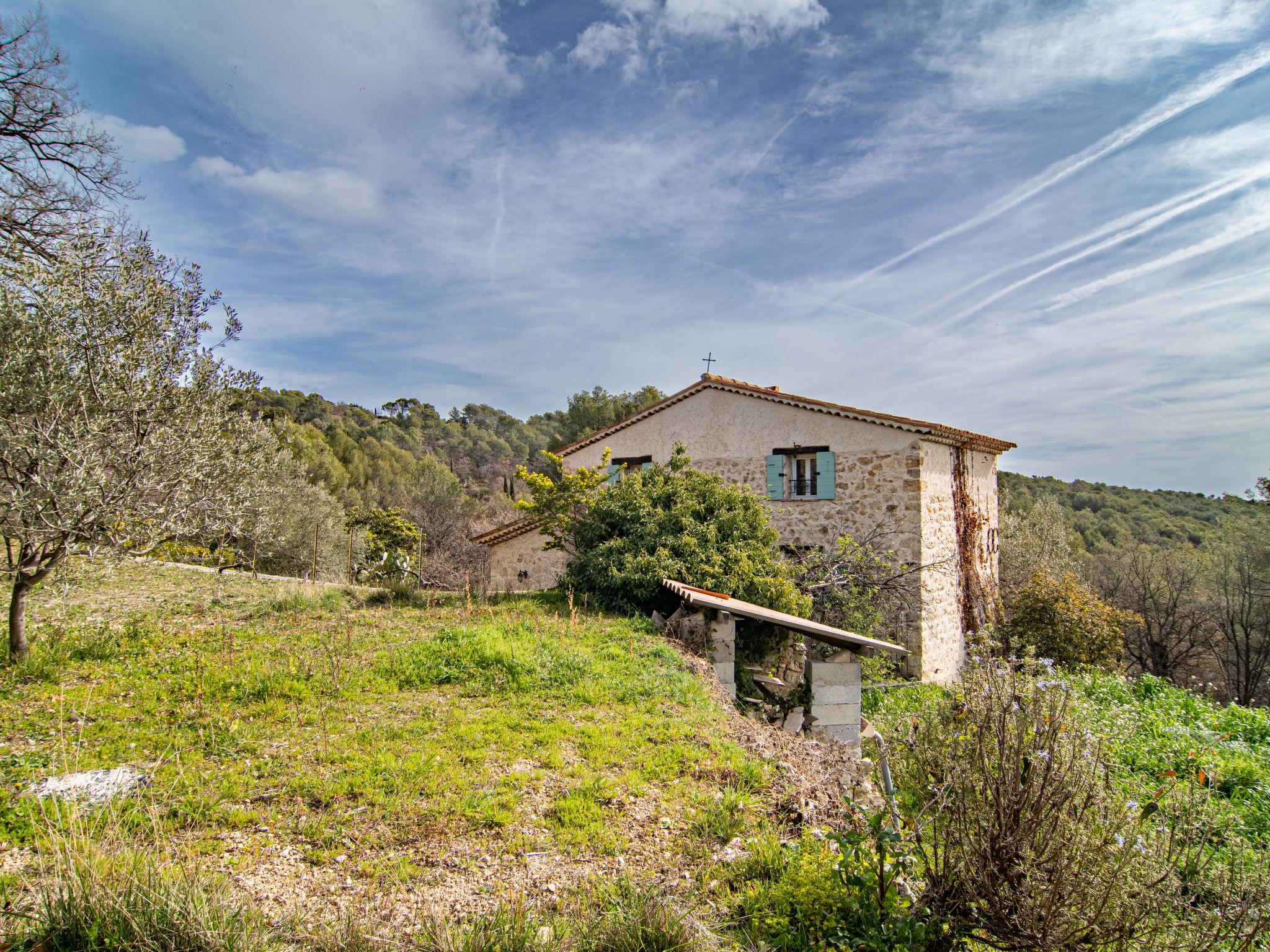House "La Foux". 3 km from the centre of Tourrettes, 3 km from the centre of Fayence, 37 km from the centre of Cannes, 33 km from the sea, 8 km from the lake, in the countryside. Private: natural state property 1'500 m2, terraced garden. Outdoor shower, boules. Stepped path (5 steps) to the house. Parking on the premises. Shop 3 km, supermarket 3 km, bakery 2.6 km, bus stop 1.3 km, railway station "Cannes" 42 km, sandy beach "Mandelieu La Napoule" 31 km, outdoor swimming pool 3.5 km. Golf course (18 hole) 7 km. Nearby attractions: Aérodrome de Fayence. Well-known lakes can easily be reached: Saint Cassien. Please note: car recommended.