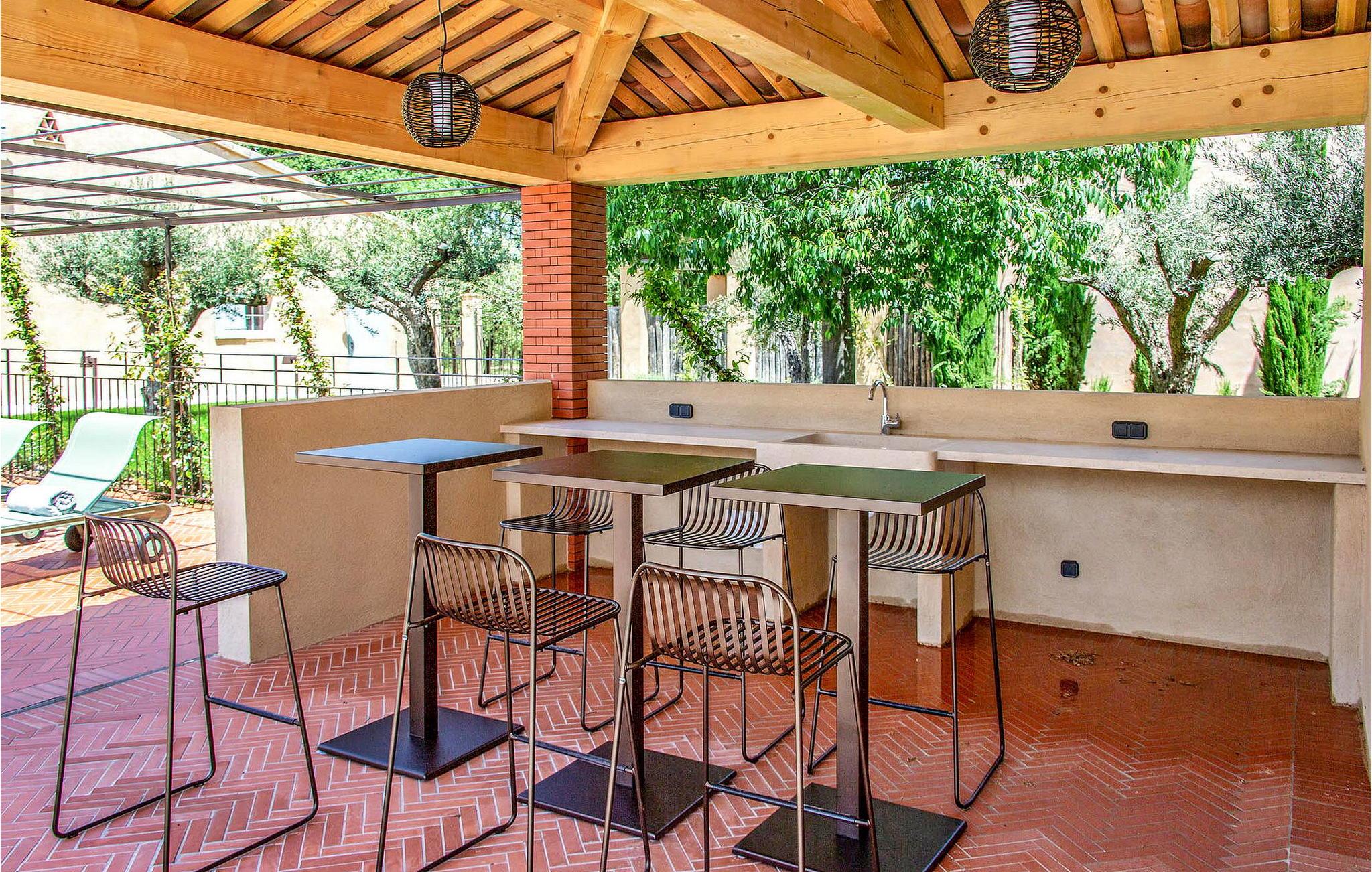 Forkæl dig selv i hjertet af Var med denne luksuriøse villa nær Saint-Maximin, beliggende i en stor vinproducerende ejendom. Denne fantastiske villa har et fuldt udstyret køkken, en rummelig stue med pejs og flere terrasser med malerisk udsigt. Første sal afslører seks suiter med aircondition, hver med sin egen charme og privatliv. Udendørs kan du nyde den opvarmede private pool (12m x 5m) blandt oliventræer og vinmarker med liggestole til afslapning. Villaen og lukkede, eksklusive haver ligger blandt 190 hektar vinproducerende ejendom i det franske landskab. Bemærkelsesværdige funktioner inkluderer aircondition i alle seks soveværelser, mulighed for en privat kok, vingårdsture og opladningsterminaler til elbiler på ejendommen. Andre private poolvillaer er tilgængelige i nærheden, og der er et receptionsområde til arrangementer. Beliggende i hjertet af Var, er villaen det ideelle sted for en afslappende ferie omgivet af natur. Alle lokale butikker i landsbyen Saint-Maximin 5 km væk eller i landsbyen Rougiers 5 km væk. I nærheden giver vinkælderen dig mulighed for at opdage ejendommens aktivitet, og dens mange naturrum er en mulighed for vandre- eller cykelture for en fordybelse i et autentisk og bevaret grønt Provence. Omfavn roen i denne Var-villa, en perfekt flugt, hvor skønheden i Provence omgiver dig.