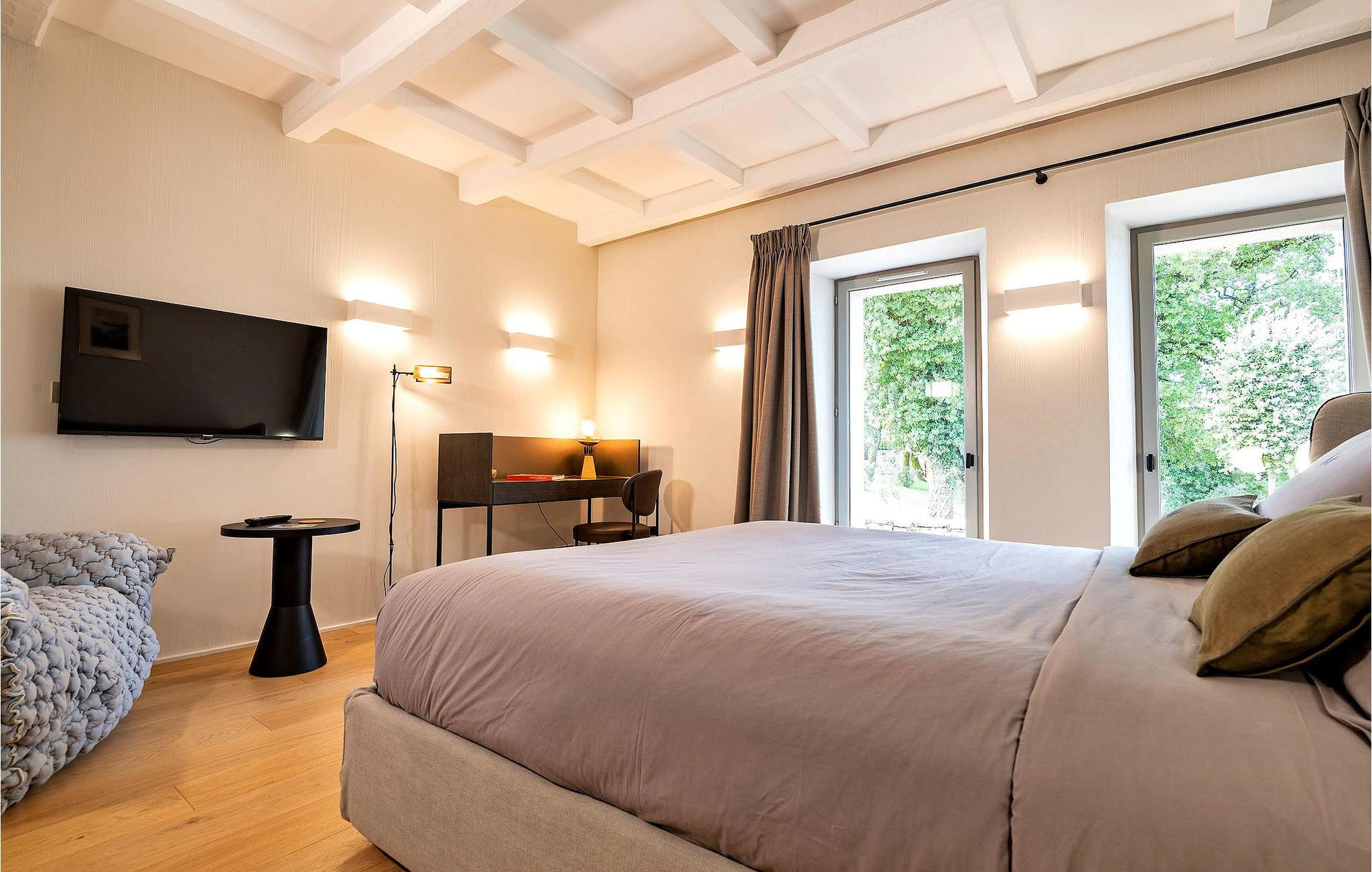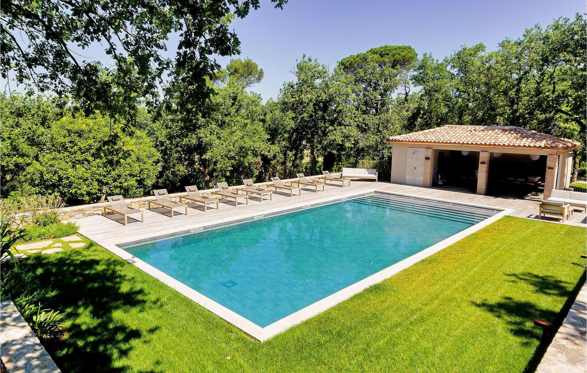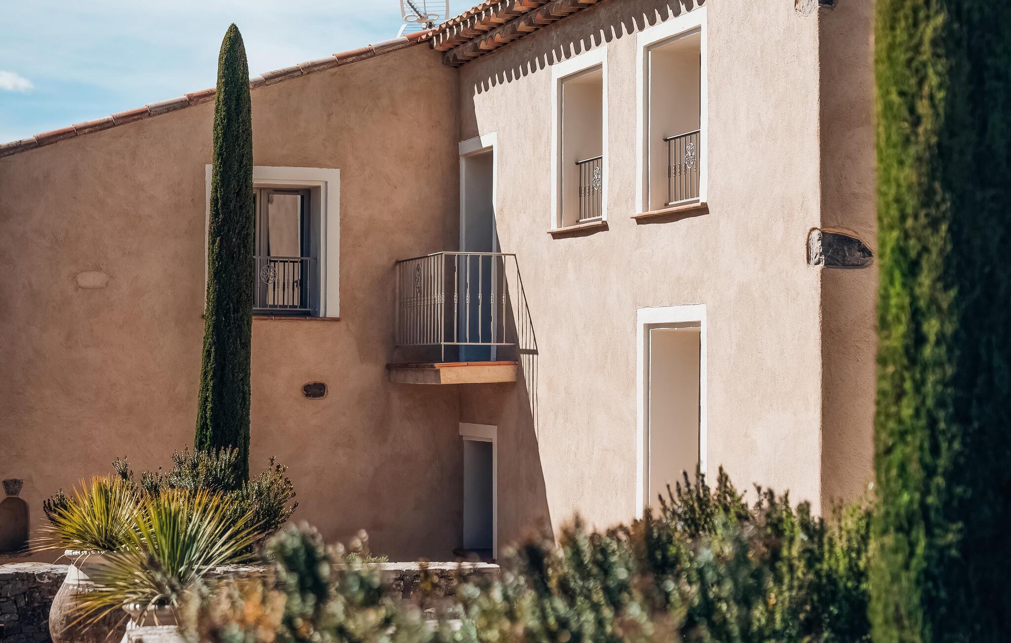 Den luksuriøse ferievilla, der ligger på en vingård i Tourves, huser op til 14 gæster fordelt på 7 suiter med aircondition. Villaen, fordelt på halve etager, omfatter en brudesuite, et veludstyret køkken/alrum, stue med pejs, vaskerum og separate toiletter. Nogle suiter har balkon, terrasse eller direkte adgang til terrassen. Udenfor giver en stor, skyggefuld terrasse og en privat opvarmet pool med poolhus og komfortable siddepladser rigelig afslapning. Den ekspansive 190 hektar store ejendom, selvom den er indhegnet, mangler en privat lukket have, men tilbyder fælles faciliteter såsom petanque- og tennisbaner. Tjenester såsom kokke-catering, vingårdsture, leje af elektriske cykler og ladeterminaler til elbiler er tilgængelige efter anmodning. Bemærk venligst, at en bil er afgørende, og ejendommens stier er ikke asfalterede. Andre ferieboliger på ejendommen tilbyder individuelle pools og private rum, mens receptionshallen er tilgængelig for reservationer. Alle lokale butikker i landsbyen Tourves 3,5 km væk eller i landsbyen Rougiers 5 km væk. Beliggende i hjertet af Var, er bastide et ideelt sted for en afslappende ferie omgivet af natur.