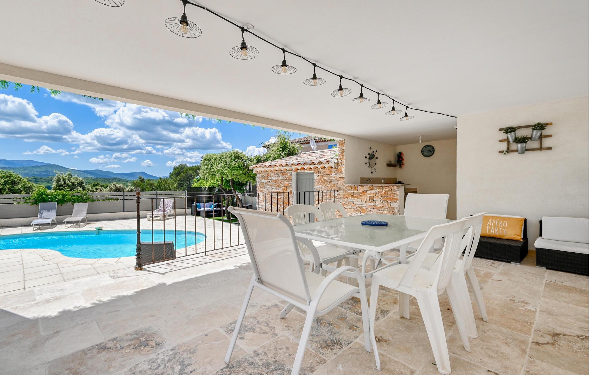 Dette charmerende feriehus og dets smukke, opvarmede private pool er ideel til et afslappende og solrigt ophold i Var. Feriehuset ligger i slutningen af en blind vej med en beliggenhed halvvejs mellem Saint Maximin og Brignoles. Interiøret er moderne og har komfortable, lyse værelser og en dejlig terrasse, hvor du kan nyde grillen. I nærheden kan du besøge Gueules Rouges-museet (1 km), ruinerne af slottet Valbelle (2 km) eller Basilica of Saint Maximin (7 km). Den smukke middelalderlige landsby Brignoles ligger 14 km væk. Elskere af gode vine vil glæde sig over dette område, der er kendt for sine fine vine, og du kan smage de bedste vine fra Château Lafoux eller Château de l'Escarelle. For børn er der en gokartbane 10 km væk, og du kan også tage smukke vandreture i Gorges du Caramy. Denne smukke lejlighed og opvarmet pool vil gøre dit ophold med familie eller venner i Var til en succes.