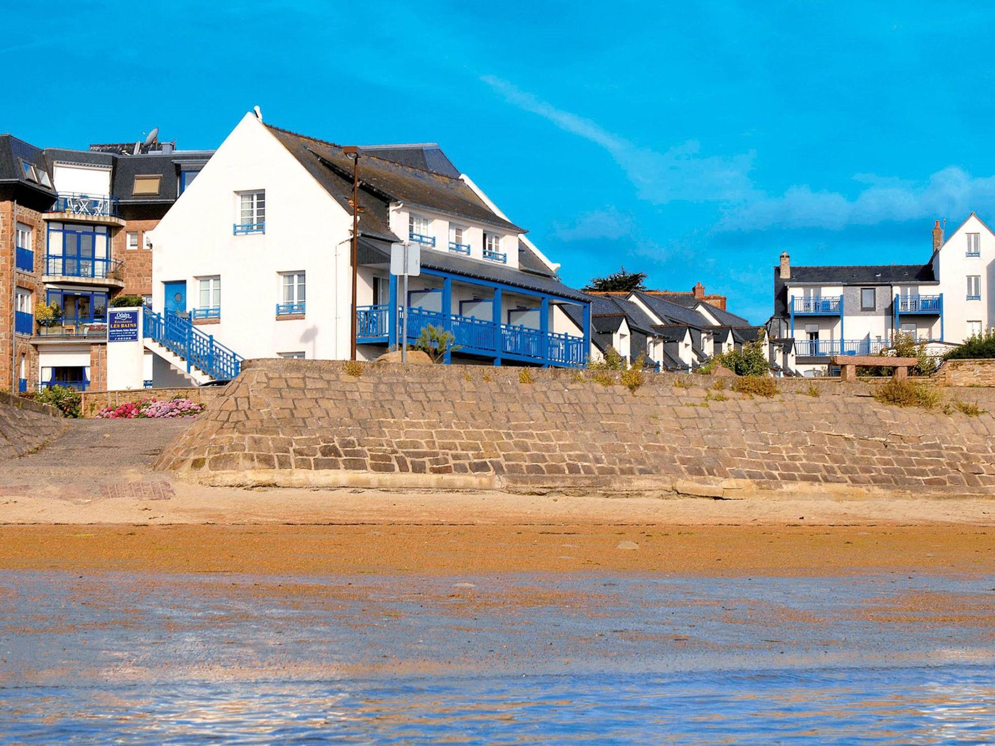 Cosy residence "Les Bains". 100 m from the centre of Trégastel, on top of a hill, 50 m from the sea, 50 m from the beach, road to cross. In the complex: reception, internet access, washing machine, tumble dryer (for shared use, extra). Parking at the house. Shop 100 m, grocery, restaurant 200 m, bus stop 1 km, railway station "Lannion" 10 km, sandy beach "Chemin des Douaniers" 50 m, park "Aquatonic eau de mer" 1 km. Sports harbour 2 km, riding stable 5 km. Nearby attractions: La presqu'île Renote,24h de la Voile, Perros Guirec 5 km, Pleumeur Bodou 5 km, Aquarium de Trégastel, La réserve des 7 îles, Festival du Chant des marins (aout). Hiking paths: La Vallée de Traoueros, Découverte de la côte de granit rose, les vieux Gréments à Paimpol 45 km. Please note: car recommended. Suitable for families, baby equipment on request (extra). Residence with electric gates. The photograph shows a typical example. The photo is just an example. Additional accommodations can be booked.