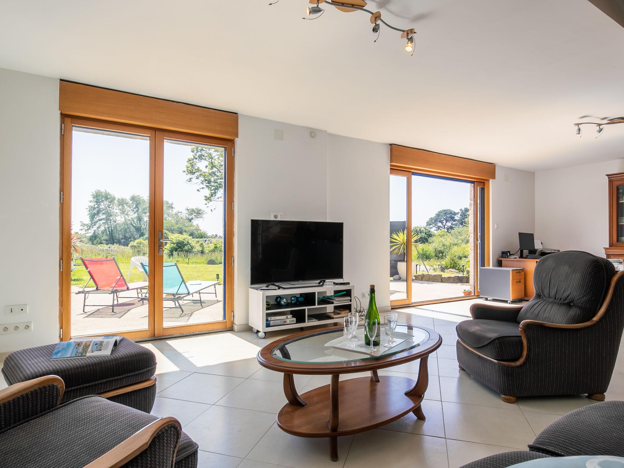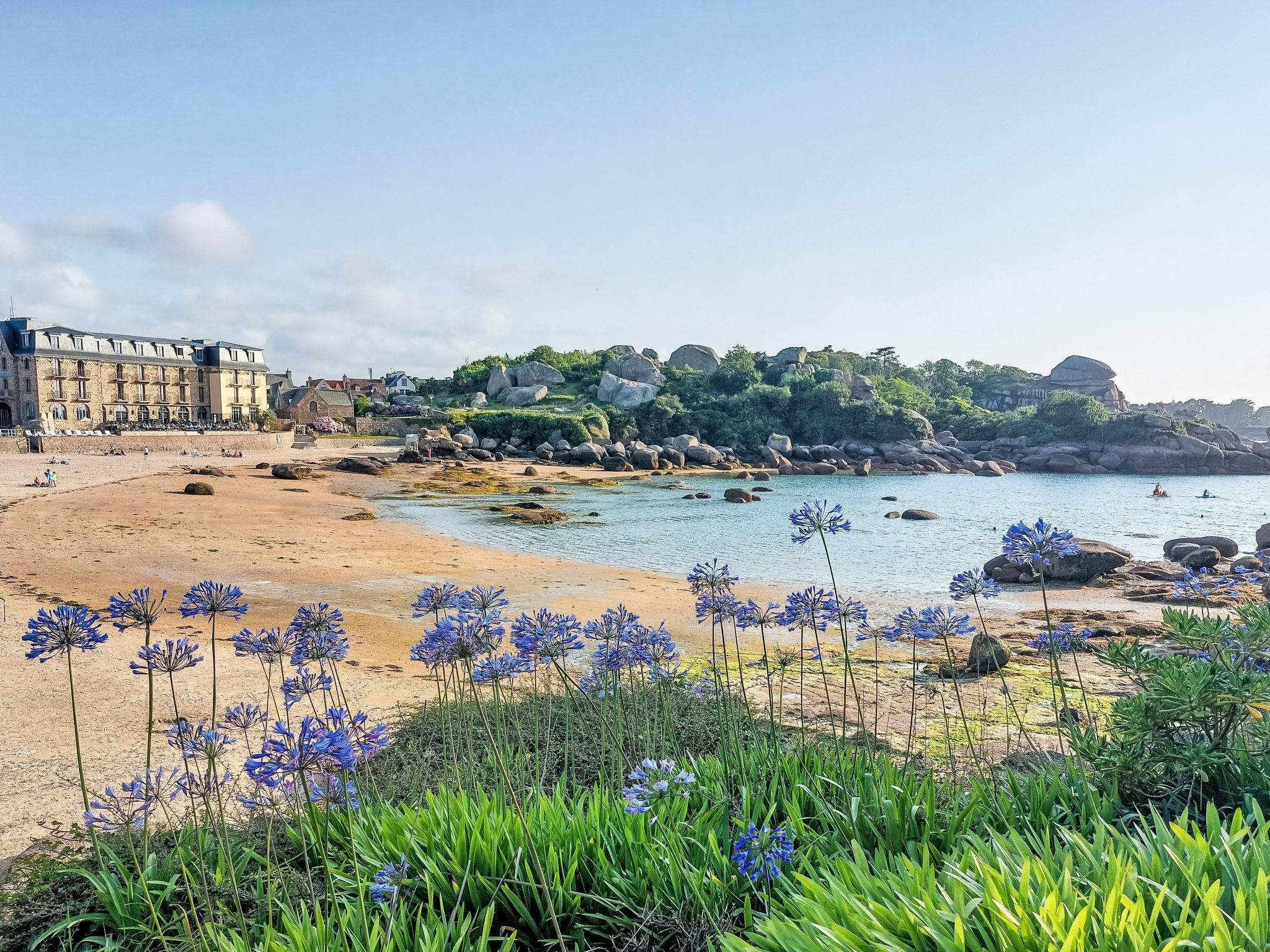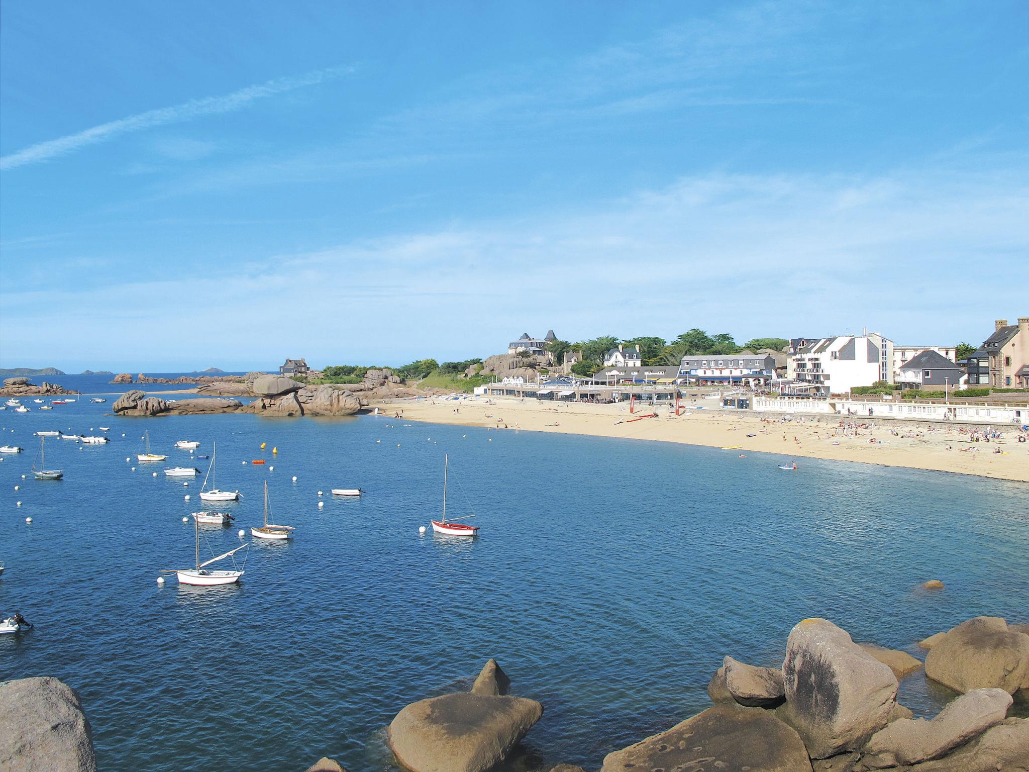 Single-family house "Rivage". In the resort 2 km from the centre of Tregastel, 600 m from the sea, 1 km from the beach, south facing position. Private: property 400 m2, garden (not fenced) with lawn, parking (for 2 cars). Shop 2 km, restaurant 2 km, bus stop 2 km, sandy beach "Plage de Publique" 1 km. Golf course (18 hole) 2.5 km, sailing school 2.5 km, tennis 3 km. Nearby attractions: Ploumanac’h 6 km, Perros-Guirec 8 km, Ile Grande 7 km, Trebeurden 7 km, Le Radôme - Cité des Télécoms 5 km, Lannion 14 km. Hiking paths: GR34, Côte de Granit Rose, Ile de Bréhat.