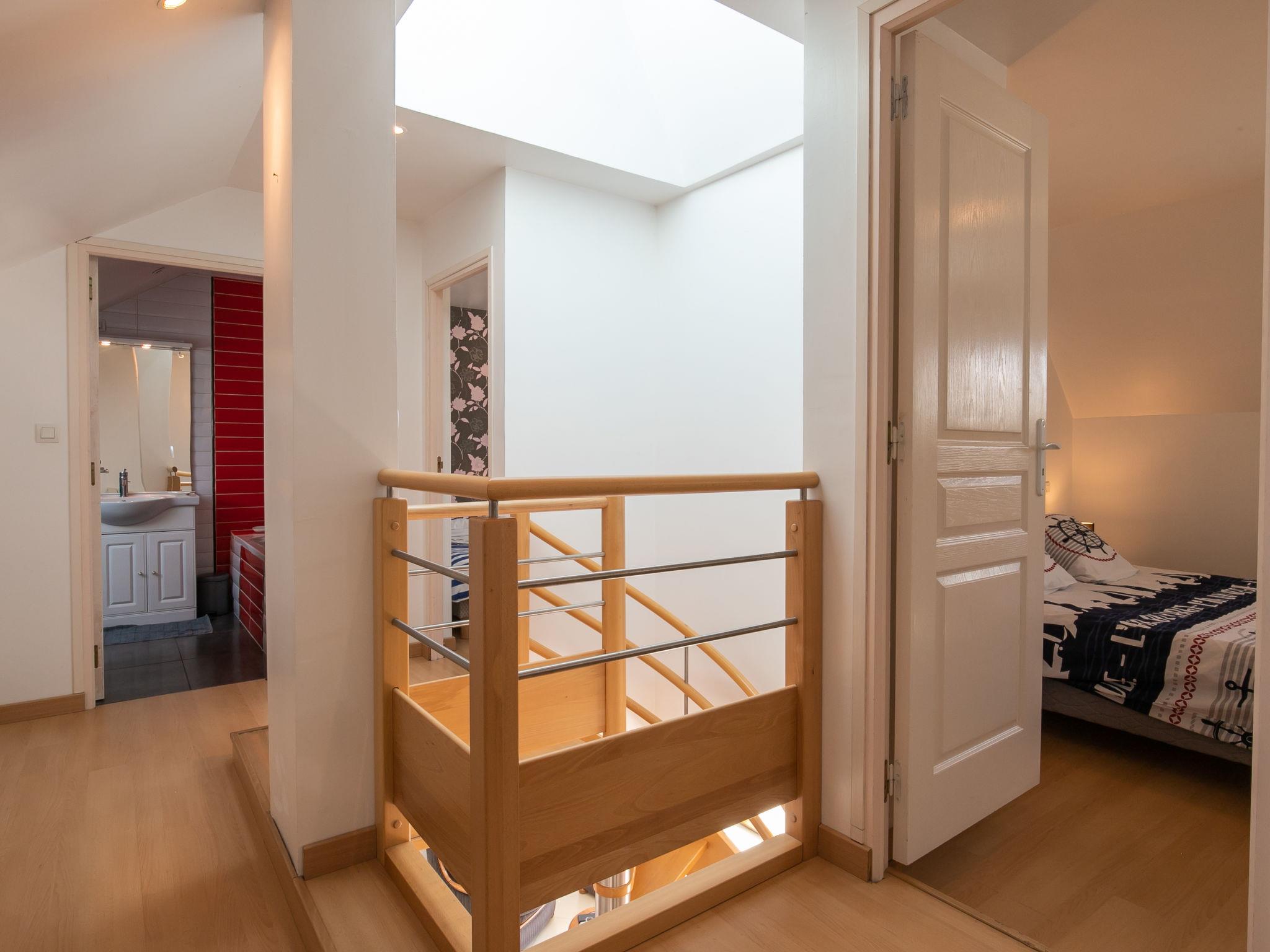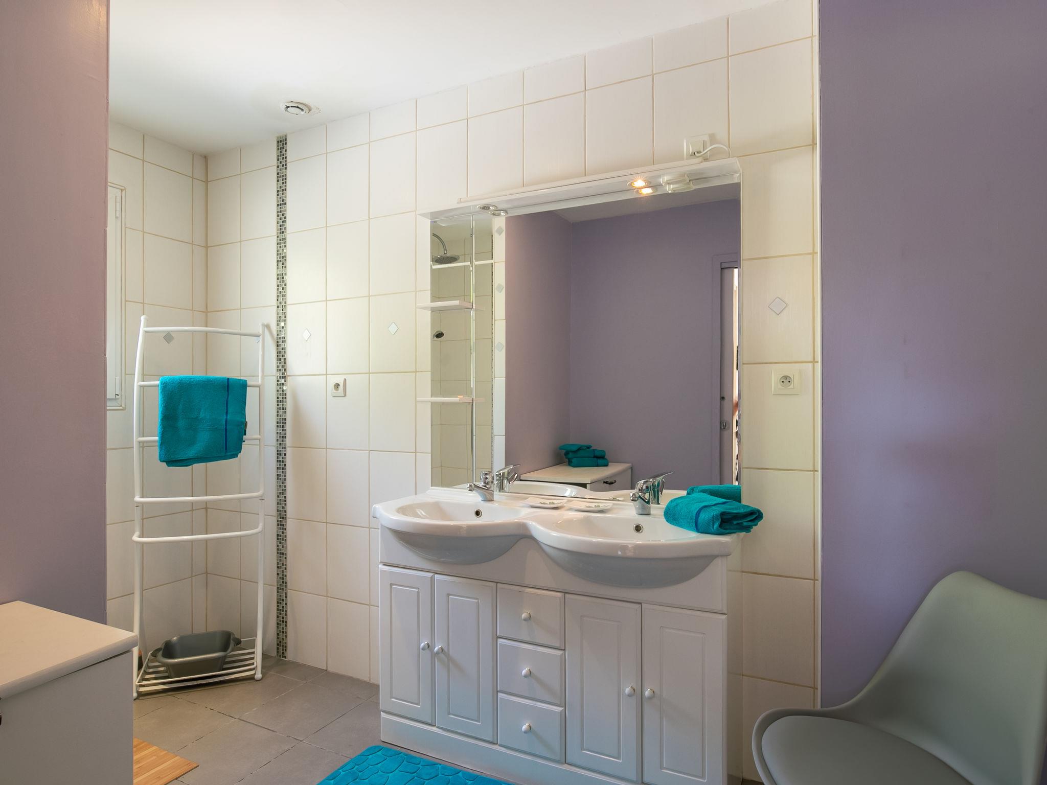 "Rivage", 3-room house 120 m2 on 2 levels. Beautiful and cosy furnishings: large living/dining room with dining table and TV (flat screen). Exit to the terrace. Open kitchen (oven, dishwasher, 3 induction hot plates, toaster, kettle, microwave, freezer, electric coffee machine) with bar. Shower, sep. WC, double hand-basin. Upper floor: (spiral staircase), 1 room with 1 french bed (160 cm, length 200 cm), TV (flat screen). 1 room with 2 beds (90 cm, length 190 cm). Gallery. Bath/WC. Floor heating. Terrace furniture, barbecue (portable), deck chairs (4). Facilities: washing machine. Internet (WiFi). Please note: non-smoking house. Maximum 1 pet/ dog allowed. Smoke alarm. Instead of an enclosed bedroom, some sleeping areas are located in an open-plan area (gallery, alcove, etc.). Offer by a private individual according to Art. 155, IV of CGI.