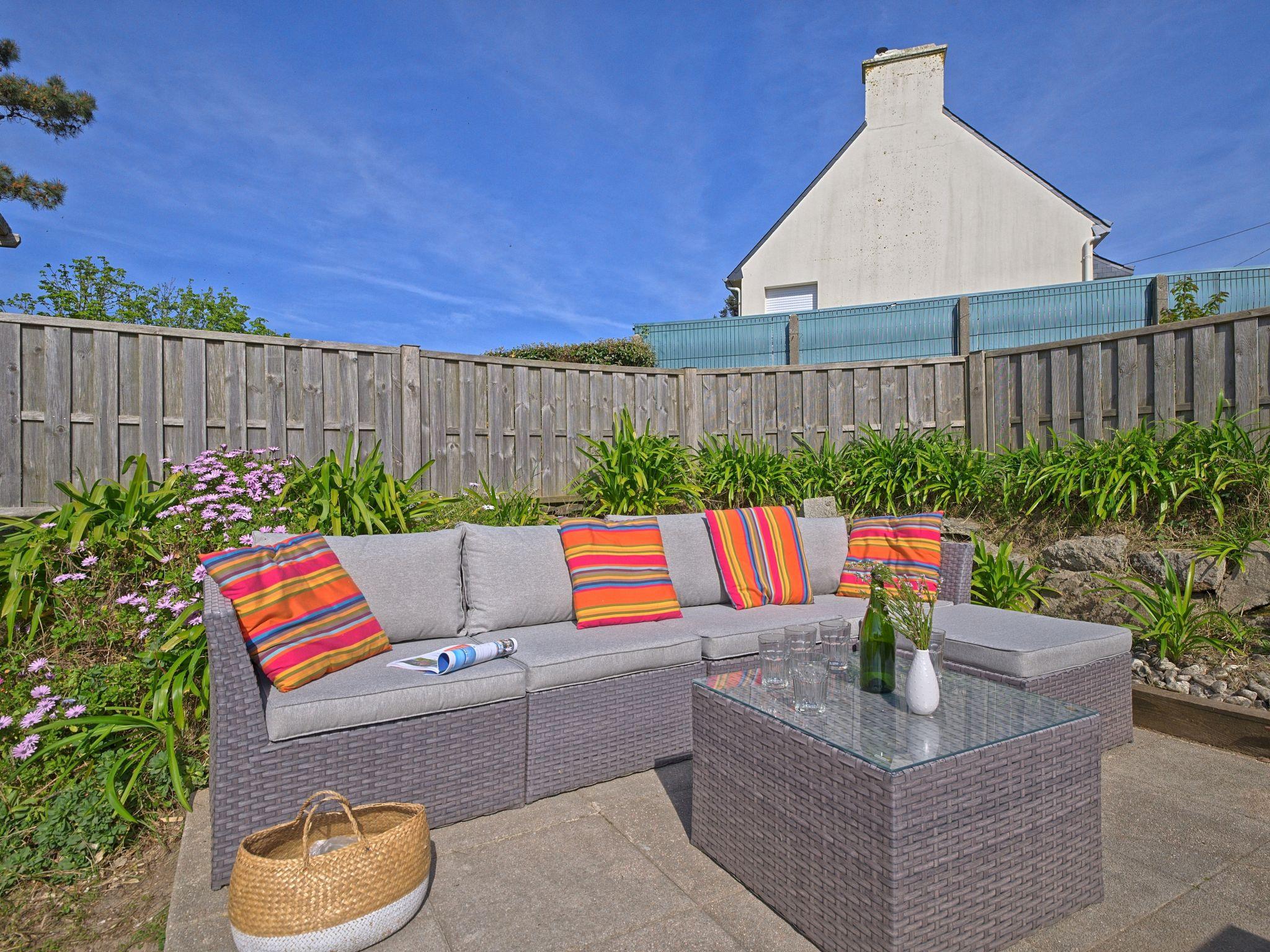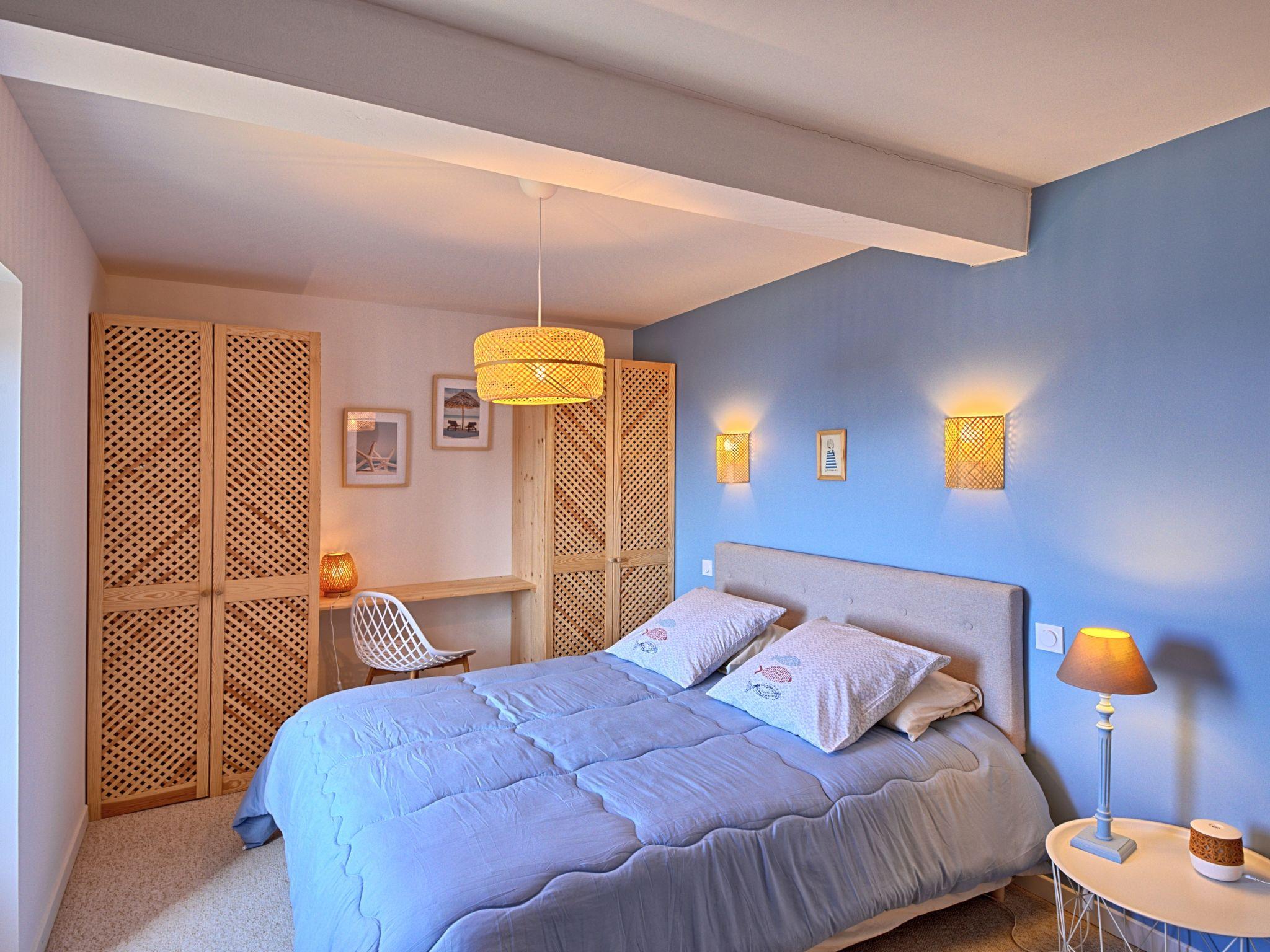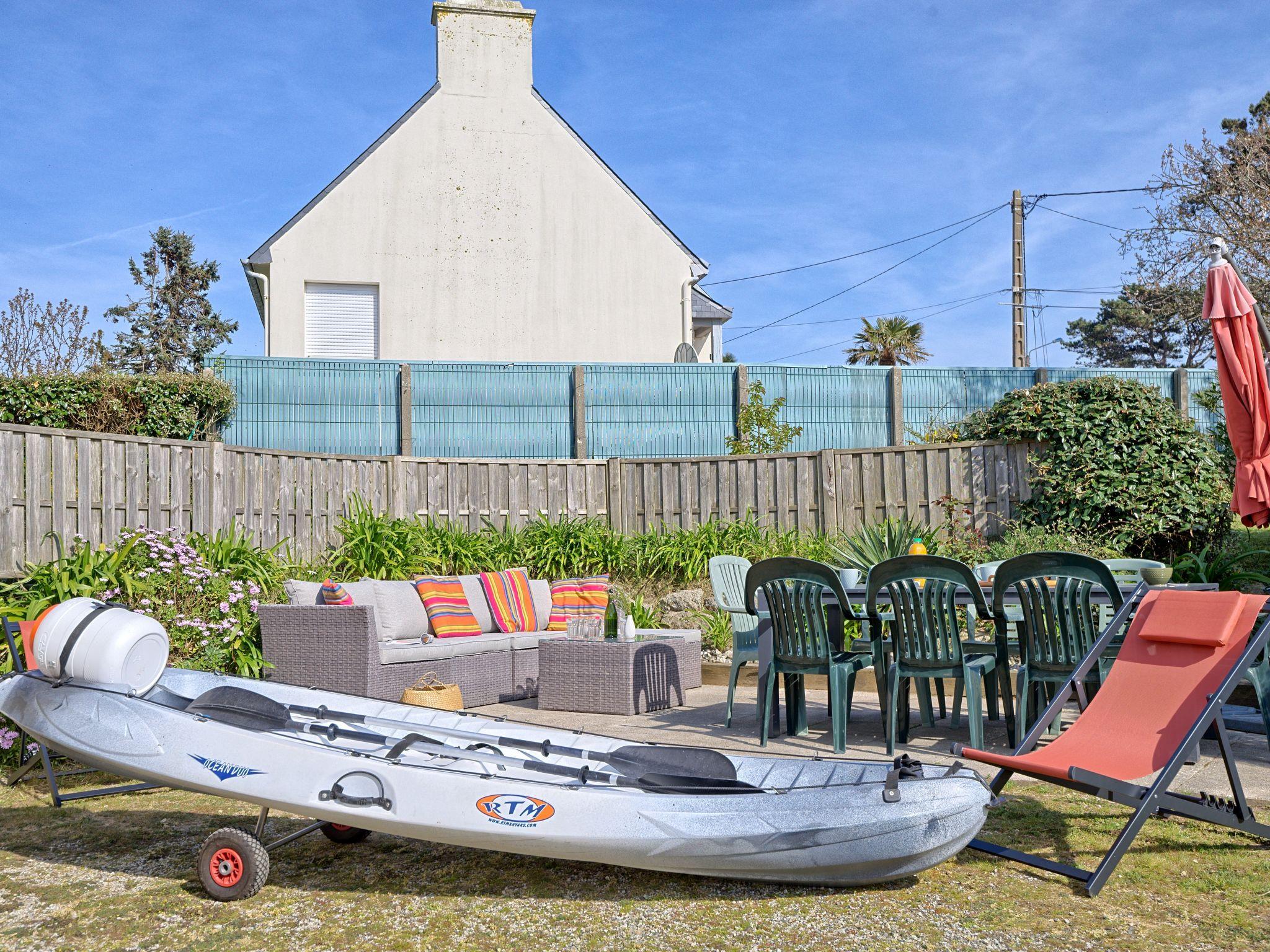 "Ty Poulpry", 5-room house 130 m2 on 3 levels. Spacious, partly renovated in 2024, comfortable and beautiful furnishings: living/dining room with open-hearth fireplace (only for decoration), TV (flat screen). Exit to the balcony, west facing position. Kitchen (oven, dishwasher, 3 ceramic glass hob hotplates, toaster, kettle, microwave, freezer, electric coffee machine, Capsules for coffee machine (Senseo) extra) with small dining table. Sep. WC. Upper floor: 1 room with 1 french bed (160 cm, length 190 cm). 1 room with 1 french bed (140 cm, length 190 cm). Shower/WC, double hand-basin. 2nd upper floor: 1 room with 1 french bed (140 cm, length 190 cm). 1 room with 1 french bed (2 x 80 cm, length 190 cm). Shower/WC, double hand-basin. Electric heating. Large balcony 20 m2, west facing position, terrace 18 m2, south facing position and, east facing position. Terrace furniture, barbecue, deck chairs (4). Beautiful view of the sea. Facilities: washing machine, iron, baby cot for up to 2 year olds, hair dryer. Internet (WiFi, free). Please note: non-smoking house. Smoke alarm. Offer by a private individual according to Art. 155, IV of CGI.