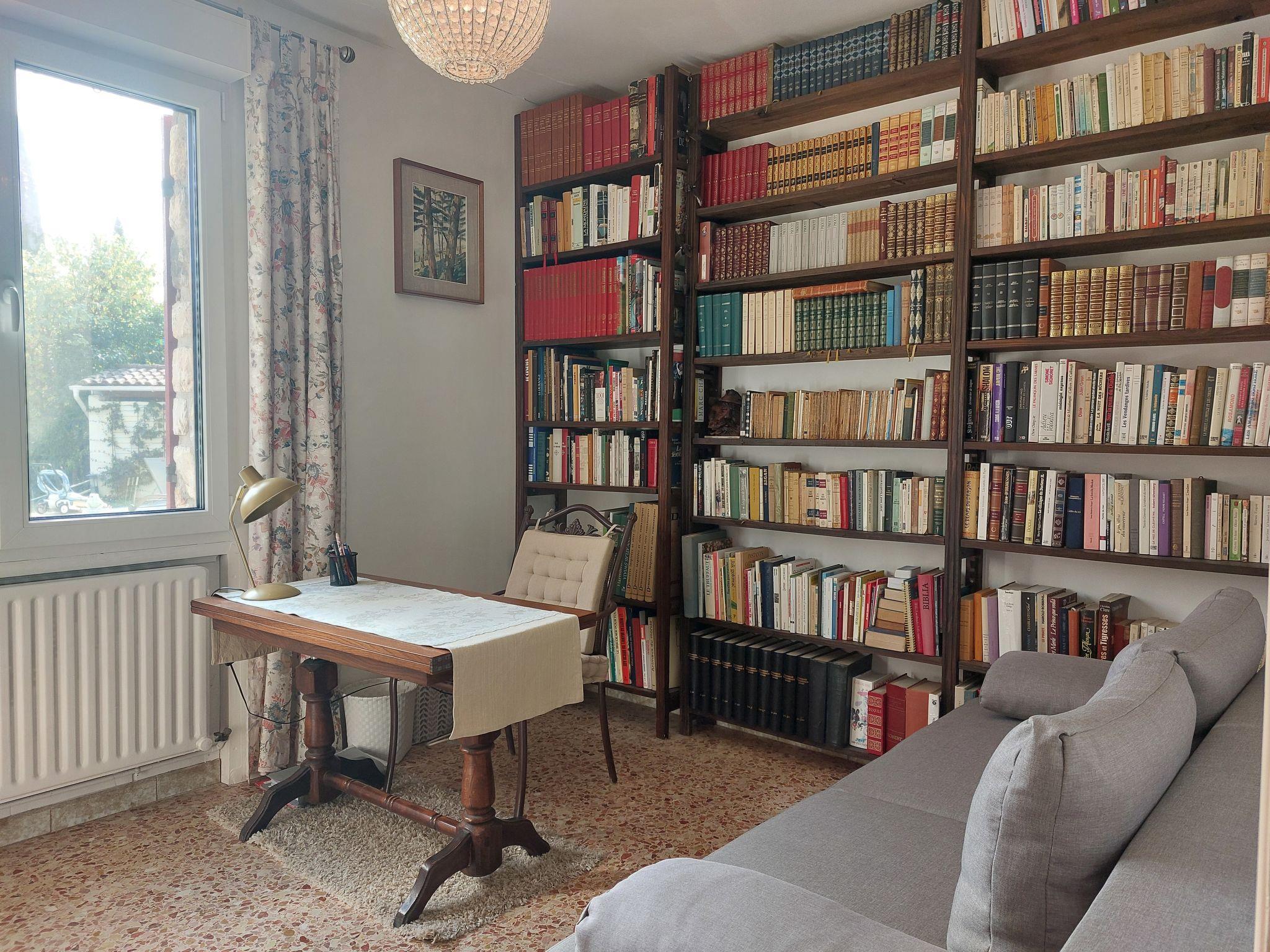 "Les Pierres Fleuries", 4-room villa 90 m2. Comfortable and beautiful furnishings: living/dining room with Scandinavian wood stove (only for decoration), dining table and TV (flat screen), air conditioning. Exit to the terrace. 1 room with 1 french bed (140 cm, length 190 cm), fan. 1 room with 2 beds (90 cm, length 190 cm), fan. 1 room with 1 double sofabed (140 cm, length 190 cm), library and fan. Open kitchen (oven, dishwasher, 3 induction hot plates, toaster, kettle, microwave, freezer, electric coffee machine, Capsules for coffee machine (Tassimo) extra) with small dining table. Exit to the garden. Bath/shower, sep. WC. Oil heating. Terrace furniture, electric barbecue, deck chairs (4). Facilities: washing machine, dryer, iron, mosquito net, baby cot for up to 3 year olds. Internet (WiFi, free). Parking (fenced 2 cars). Please note: non-smoking house. Smoke alarm. The pool mentioned in the description is for private use. Offer by a private individual according to Art. 155, IV of CGI.