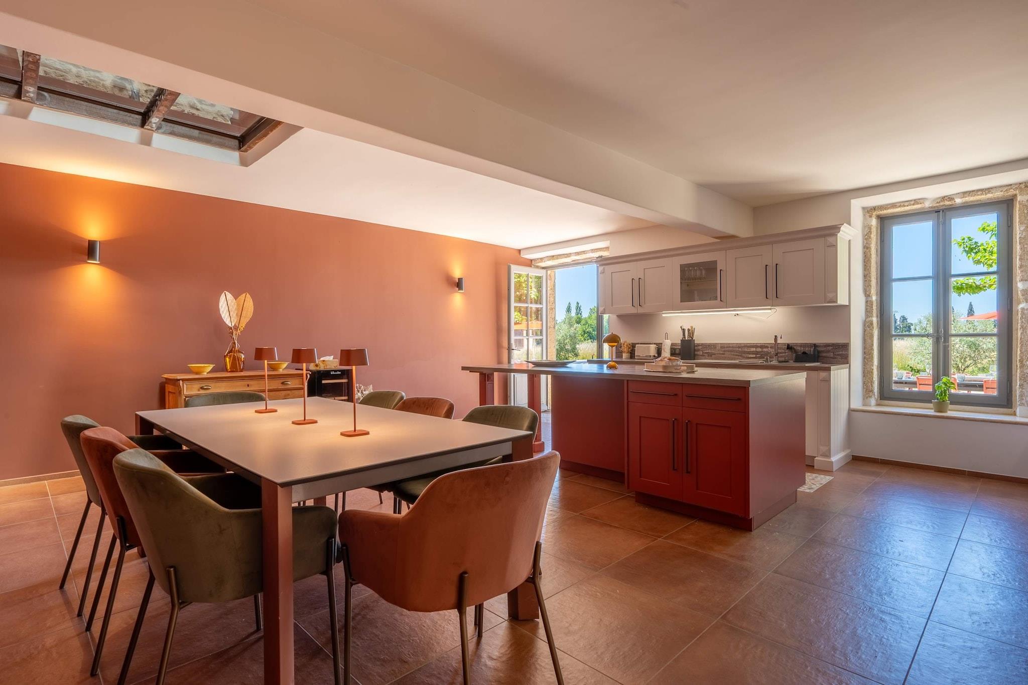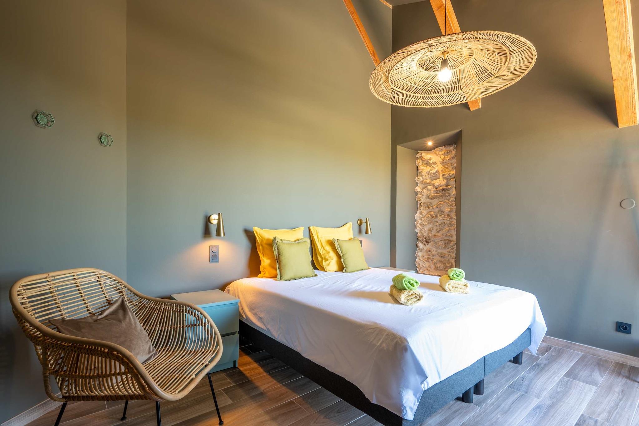 Forkæl dig selv med en fortryllende ferie på landet på Mas du Mûrier, et gammelt stenhus beliggende privat i hjertet af Rhône-dalen. Denne rummelige Mas på 260 m², bygget med tykke mure, opretholder naturligt en behagelig kølighed indenfor og legemliggør ægte provencalsk charme og autenticitet. Med en elegant kombination af træ, sten og smedejern skaber interiøret en varm og indbydende atmosfære. Ejendommen er ideel til op til 10 gæster og tilbyder fuldstændig privatliv i en sand oase af fred omgivet af natur. Vinelskere, cyklister og friluftsentusiaster er alle velkomne til at udforske de berømte vinmarker, middelalderlandsbyer på bakketoppe, slottene i Drôme Provençale og de gamle ruiner i Orange og Vaison-la-Romaine. Villaen har fem charmerende soveværelser og tre luksuriøse badeværelser. De fleksible sovepladser inkluderer en stor master suite, to ekstra dobbeltværelser og to soveværelser med to enkeltsenge, hvoraf det ene kan sættes sammen. De tre luksuriøse badeværelser inkluderer et stort anlæg med spabad og hydrobruser samt to moderne brusenicher og separate toiletter. De indbydende opholdsrum omfatter en spisestue, en lys stue og en afslapningsmezzanin. Udendørsområdet er en stor skovklædt grund, fuldstændig indhegnet for sikkerhed og afslapning. Gæsterne kan nyde flere afslappende områder, perfekte til solbadning eller en lur i den fantastiske hængekøje. Midtpunktet er den private swimmingpool, der er åben fra april til slutningen af oktober. Du kan nyde middage i skyggen af et stort træ og solbade i absolut privatliv. Med rigelig plads, essentielle faciliteter og dedikeret concierge-service er Mas du Mûrier den perfekte ramme for et uforglemmeligt tilflugtssted.