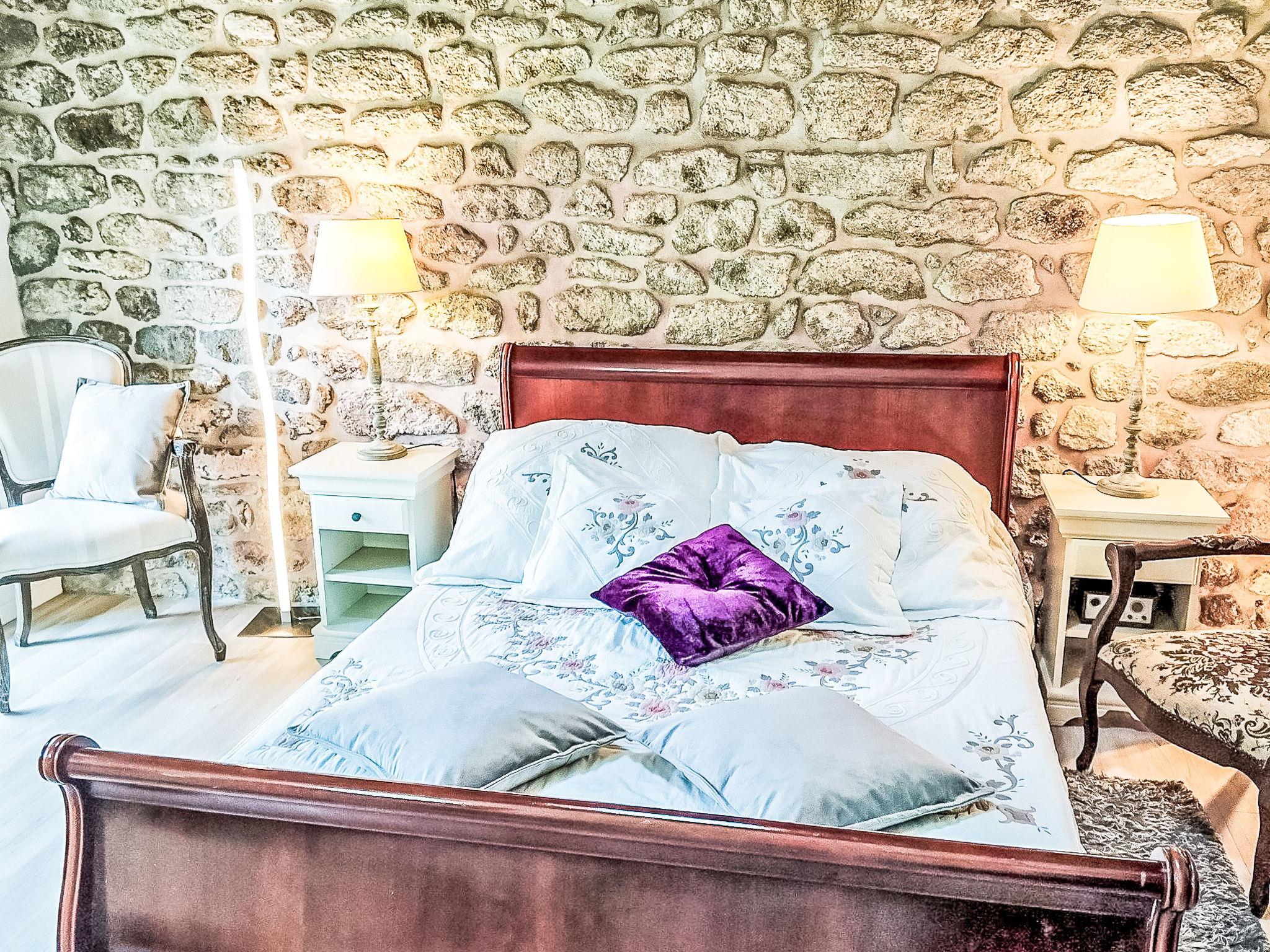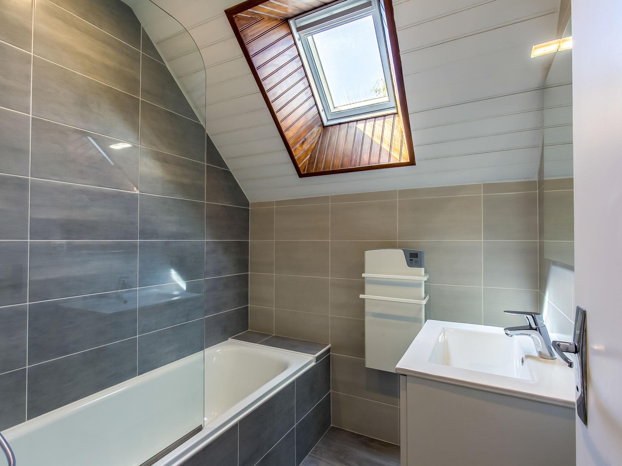 "Ty Keriquel", 5-room house 150 m2. Comfortable and cosy furnishings: living/dining room with open-hearth fireplace (only for decoration), dining table and TV (flat screen), hi-fi system and DVD. 1 room with 1 french bed (1 x 140 cm, length 190 cm), hand-basin, separate WC, bath/shower and double hand-basin. Exit to the garden. Open kitchen (4 hot plates, oven, dishwasher, microwave, freezer, electric coffee machine, Capsules for coffee machine (Senseo) extra). Upper floor: 1 room with 1 french bed (140 cm, length 190 cm). 1 room with 1 french bed (1 x 140 cm, length 190 cm). 1 room with sloping ceilings with 2 beds (90 cm, length 190 cm). Bathroom, sep. WC. Electric heating. Terrace. Terrace furniture, barbecue. Beautiful view of the countryside. Facilities: washing machine, dryer, iron, children's high chair, baby cot, hair dryer. Internet (WiFi, free). Please note: smoke alarm.