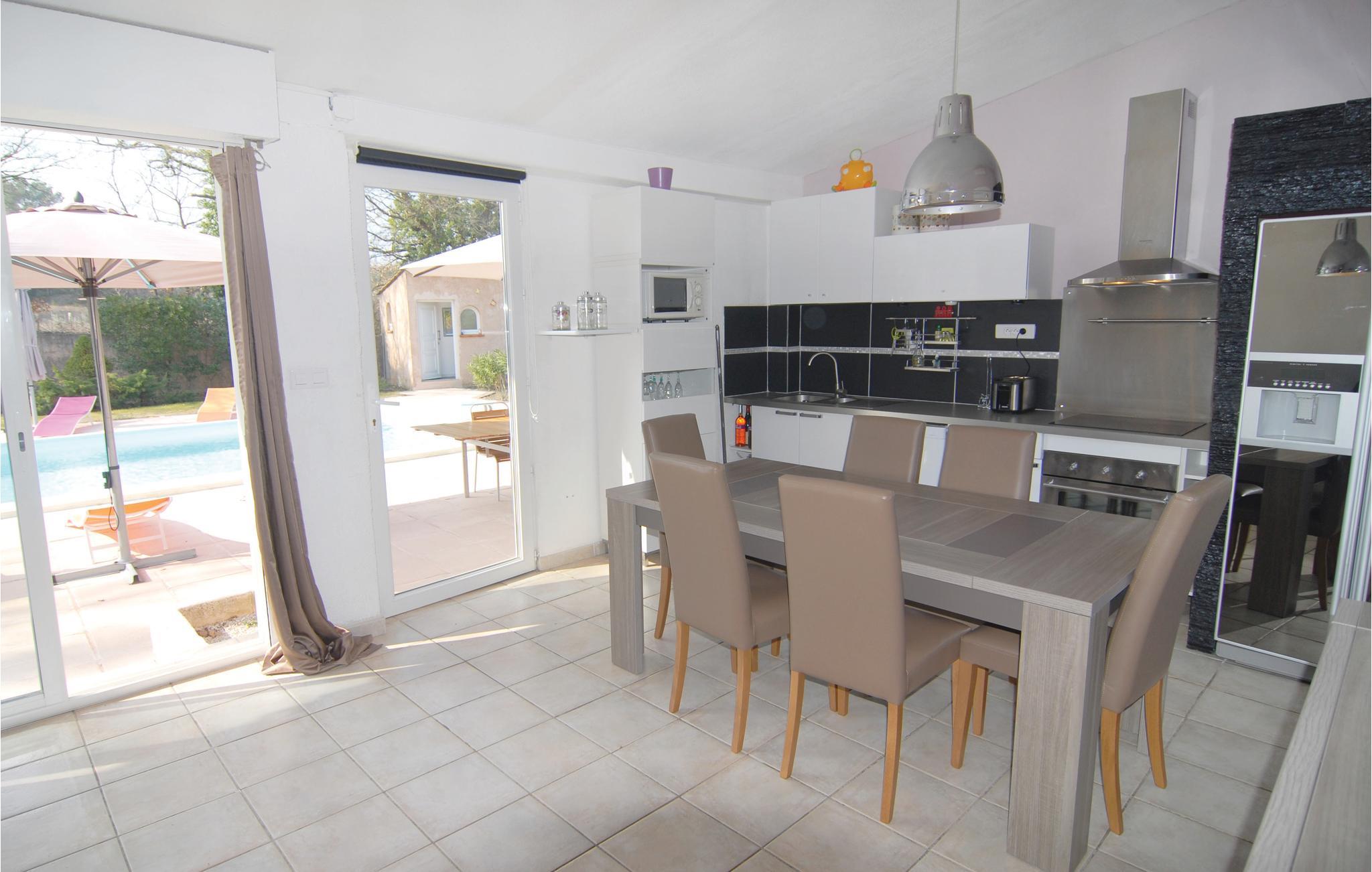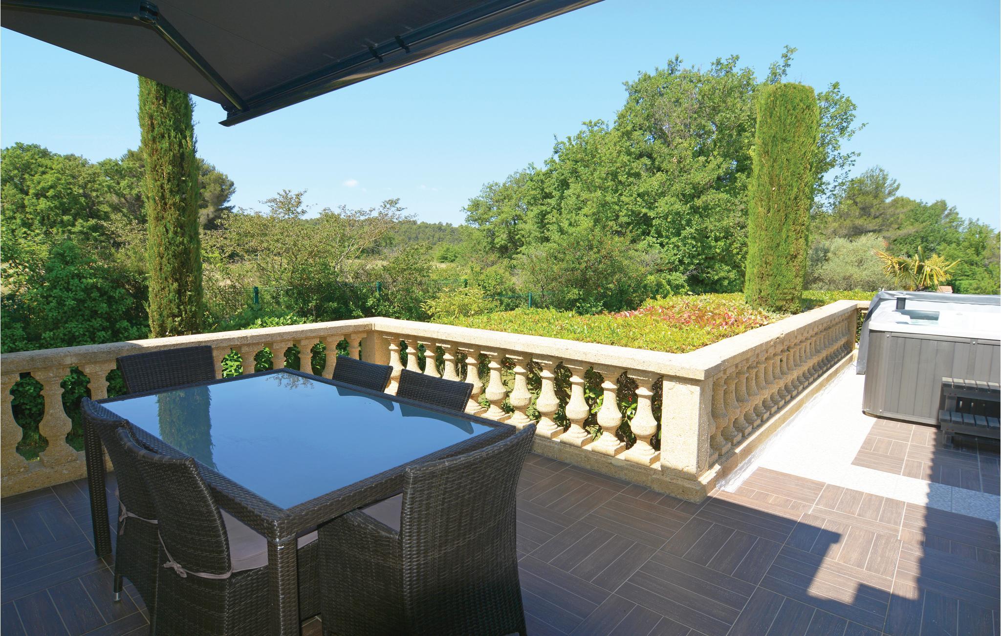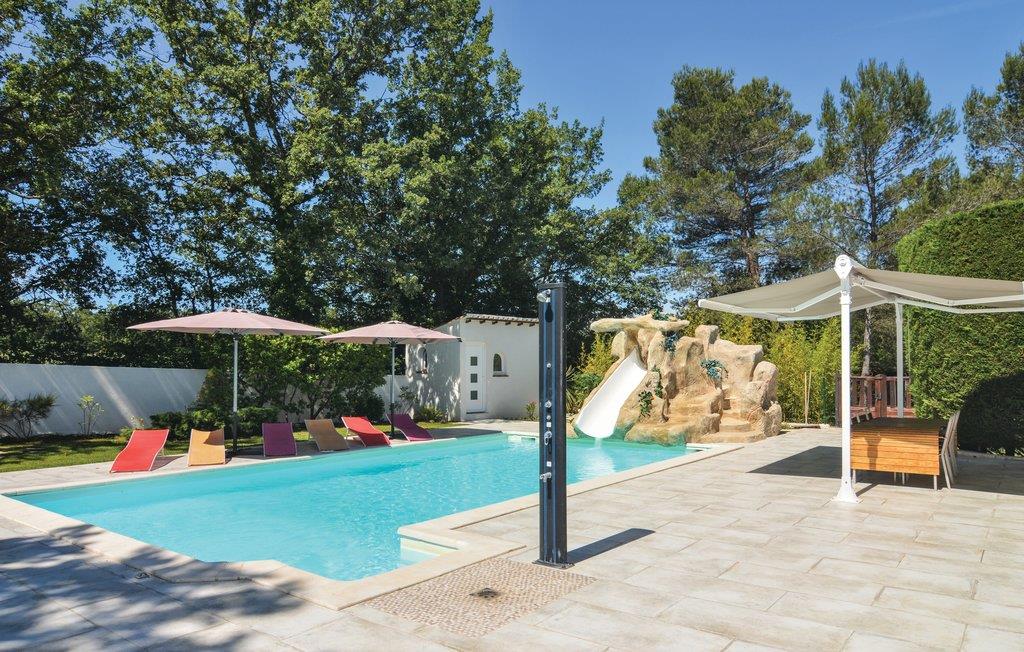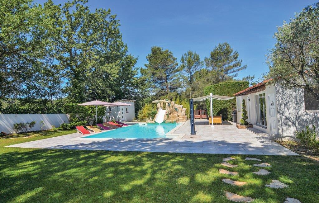 Dette rummelige feriehus til op til 10 personer rummer fire soveværelser og en generøst udmålt stue med tekøkken. Det ligger roligt på en over 5000 m² havegrund ved Aix-en-Provence og bjerget Sainte-Victoire. I har en trampolin og et bordtennisbord til rådighed. Den komplet ugenerede pool er opvarmet, så I allerede kan nyde godt af den fra april og tom. oktober. Omkostningerne for opvarmningen er inkl. i huslejen. Der er yderligere et køkken i et anneks samt en stue og soveværelse med badeværelse, og få meter videre er der brusebad og wc i en sidebygning, samt et udendørs brusebad. I kan nyde det gode vejr på flere terrasser, og huset råder over en petanquebane. I kan grille både med kul og gas, og det amerikanske køleskab sørger altid for isterninger til kolde drinks. Parker bilen på den lukkede grund eller i carporten. Der er 2,5 km til den typiske Provence-landsby Trets, hvor der er restauranter, supermarkeder og bagerier. Ad motorvejen kommer I nemt til Aix-en-Provence (25 km), Marseille (45 km), Aubagne, Cassis med sine klippebugter samt strandene ved La Ciotat. De mange vinslotte rundt om feriehuset lægger op til vinsmagninger.