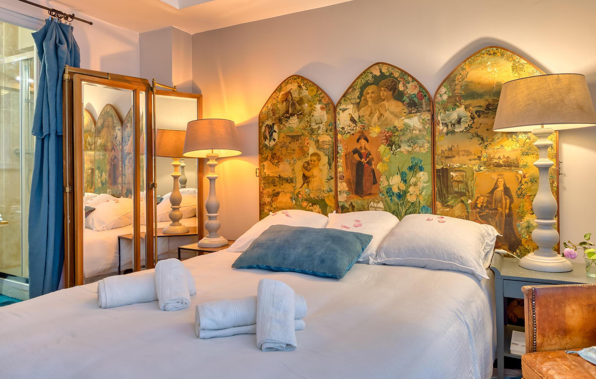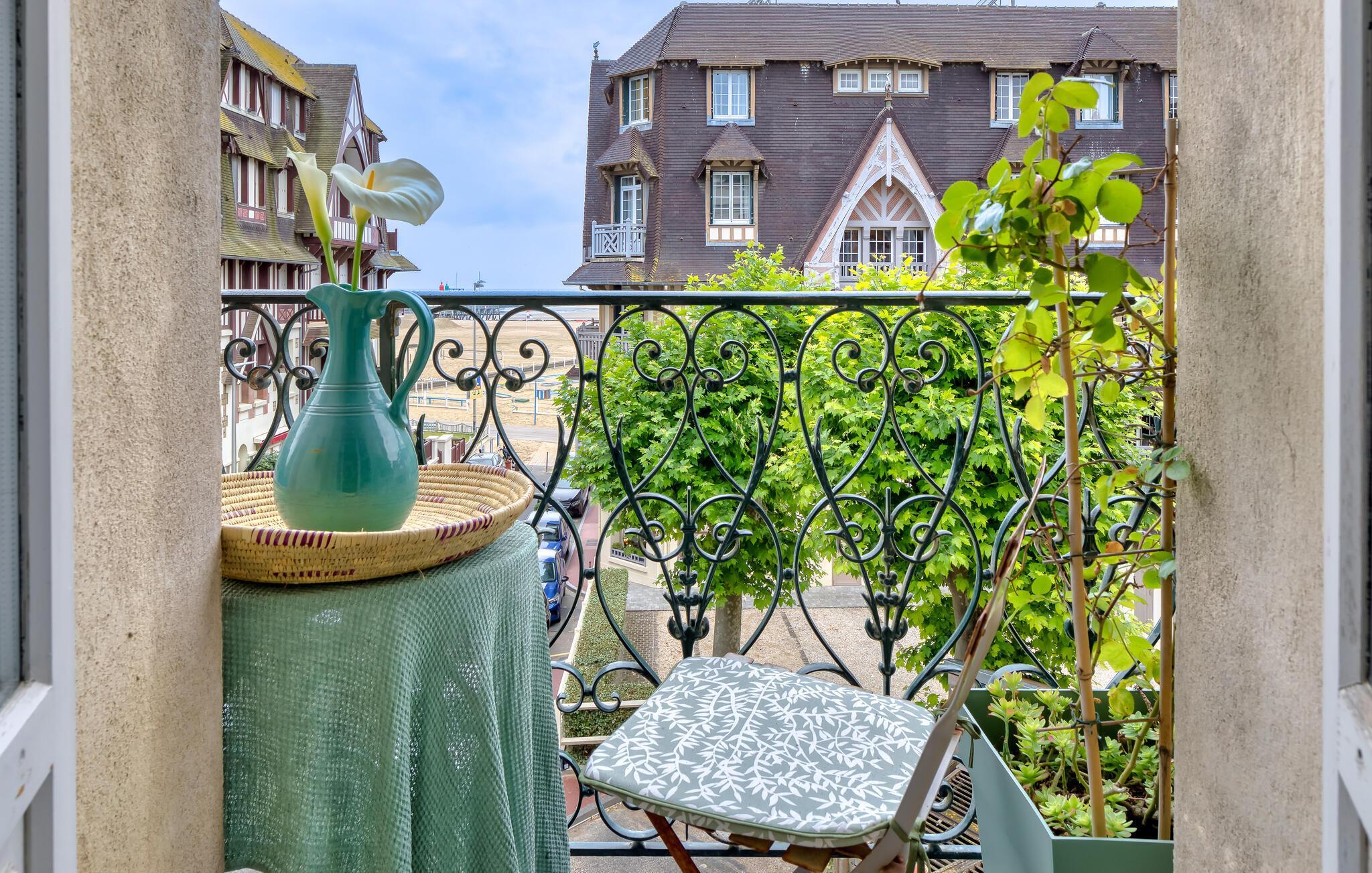 Nyd en uforglemmelig ferie for to i denne charmerende ferielejlighed med havudsigt nær stranden. Lad jer betage af det stilfulde interiør i denne fortryllende ferielejlighed, møbleret med stor sans for detaljer, hvor I kan tilbringe hyggelige dage i intim samvær kun få skridt fra sandstranden. Tilbered lækre måltider med friske råvarer fra markedet, planlæg jeres aktiviteter blandt de gamle bindingsværkshuse i nabolaget, og nyd den unikke atmosfære med et glas vin om aftenen. Fra den charmerende lille altan kan I allerede se den nærliggende sandstrand. Start dagen med en friskbrygget kaffe og glæd jer til en begivenhedsrig dag. Udnyt nærheden til butikker og restauranter, og vælg spontant mellem stranden eller en slentretur gennem byen. Slentr gennem det maleriske fiskerkvarter Honfleur og nyd frisk fisk og skaldyr ved havnen, udforsk den berømte badeby Deauville med dens elegante villaer, butikker og den berømte strandboulevard Les Planches, eller cykl gennem æbleplantagerne i det idylliske Pays d'Auge.