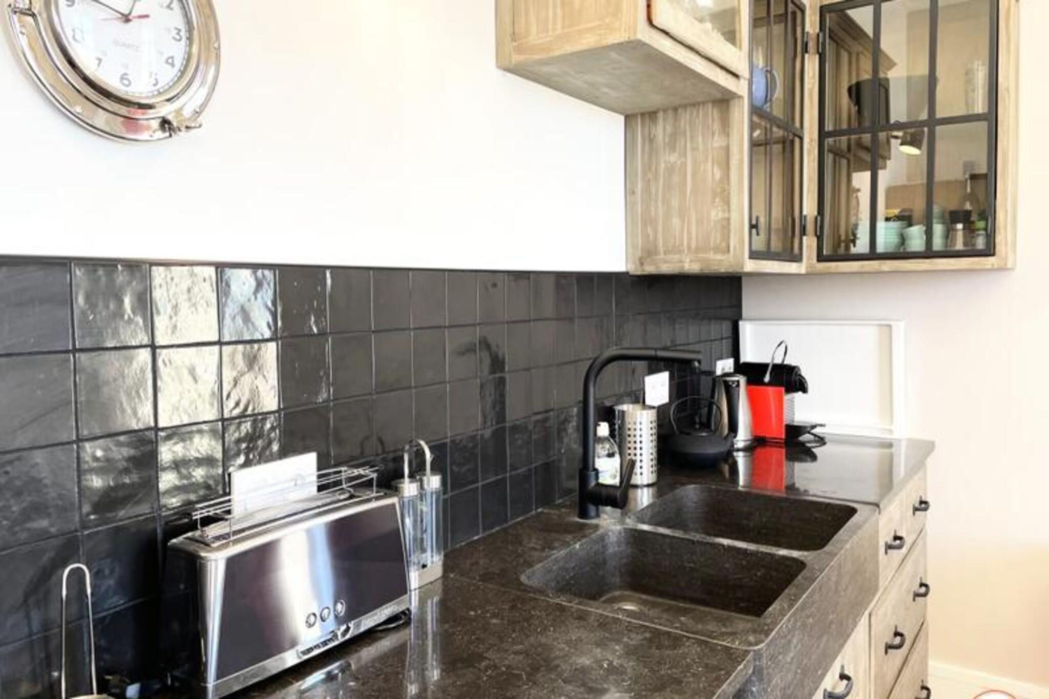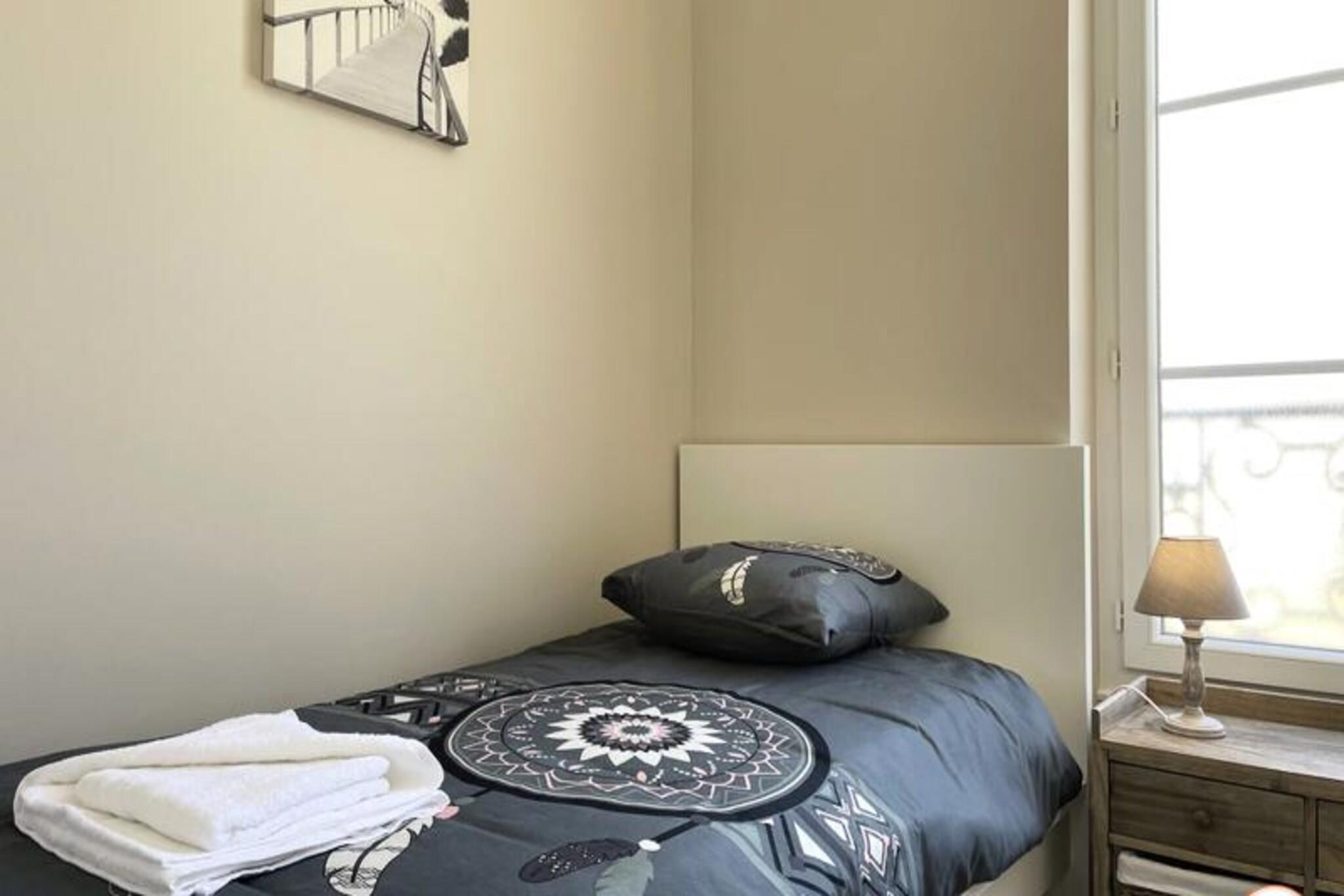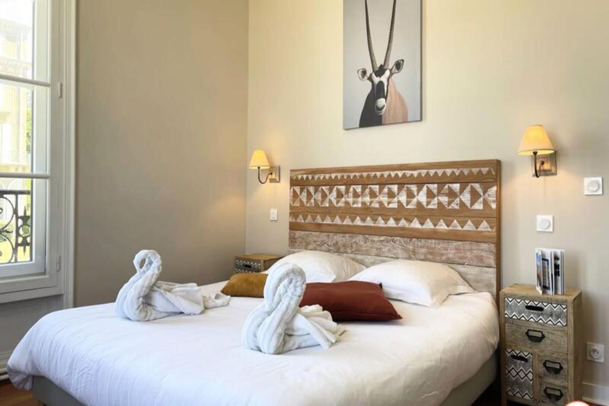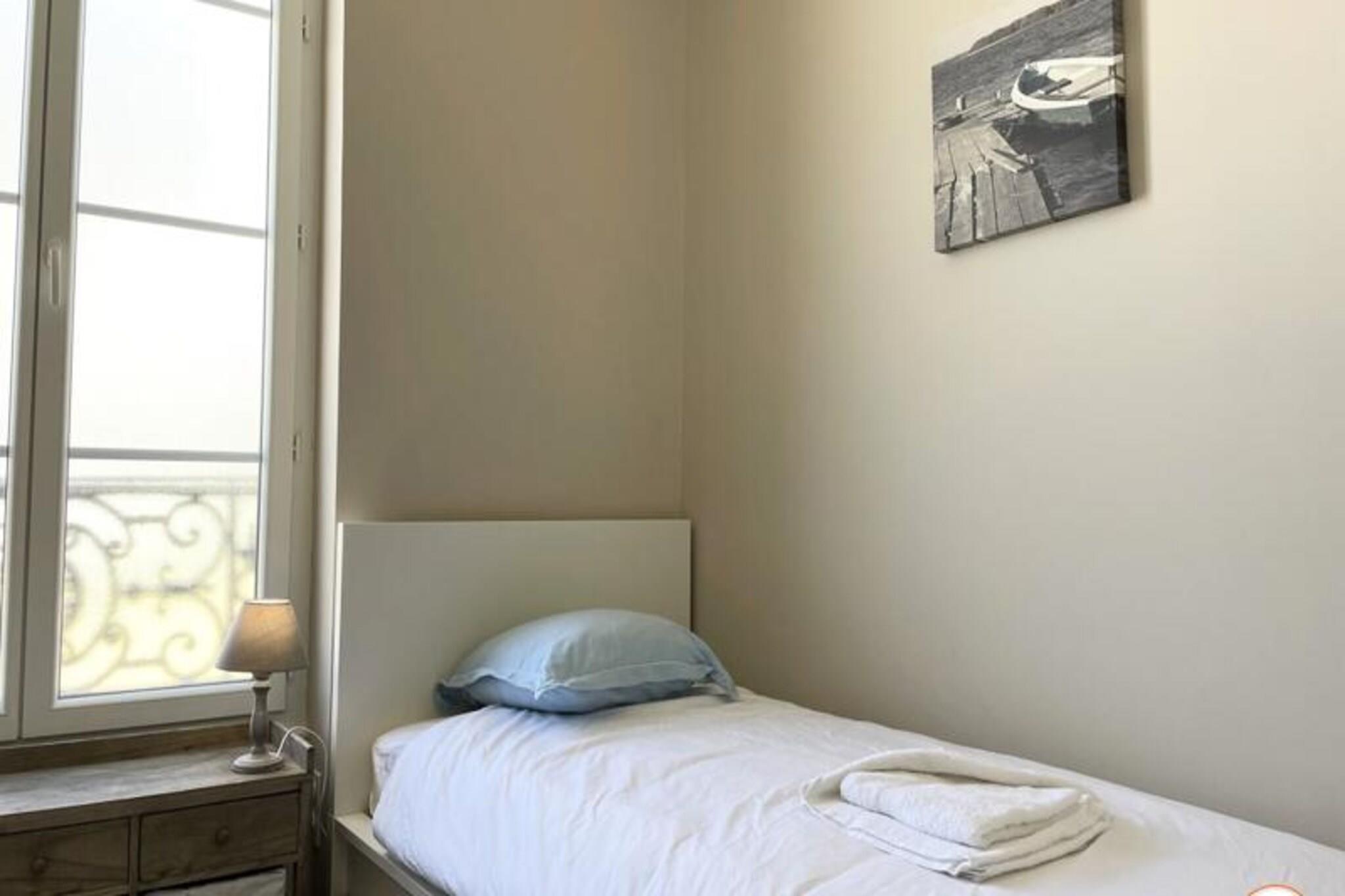 Denne charmerende lejlighed p? 80 m² tilbyder et afslappende tilflugtssted med sin beliggenhed ved havet og en fantastisk 40 m² stor terrasse. Det kan rumme op til 6 g?ster med et rummeligt sovev?relse med en queen-size seng og havudsigt, et andet sovev?relse med to enkeltsenge og et tredje med en queen-size seng. Yderligere faciliteter omfatter to badev?relser, det ene med badekar og bruser, og et separat brusebad. Lejligheden er k?ledyrsvenlig og tilbyder gratis Wi-Fi, hvilket g?r det til et behageligt sted for dit ophold. Lejligheden ligger i det historiske Roches Noires-distrikt, kun f? skridt fra den ber?mte Roches Noires-strand, hvor litter?re legender som Marguerite Duras og Marcel Proust engang boede. Det er i kort afstand fra Trouville-sur-Mers surfbr?tter samt de bedste restauranter, kasinoet og Cures Marines. Den gratis shuttleservice g?r det nemt at udforske, og ejendommen ligger kun f? minutter fra centrum af Trouville, hvilket giver g?sterne mulighed for at nyde det bedste fra badebyen. Lejligheden har et fuldt udstyret k?kken med komfur, ovn, k?leskab, kaffemaskine og opvaskemaskine. Den ?bne planl?sning og spisestue f?rer direkte til terrassen, hvor g?sterne kan nyde en fantastisk udsigt. Andre faciliteter omfatter havem?bler med bord, stole, parasol og liggestole. Bem?rk venligst, at morgenmad ikke er inkluderet, og at boligen ikke tilbyder privat parkering.