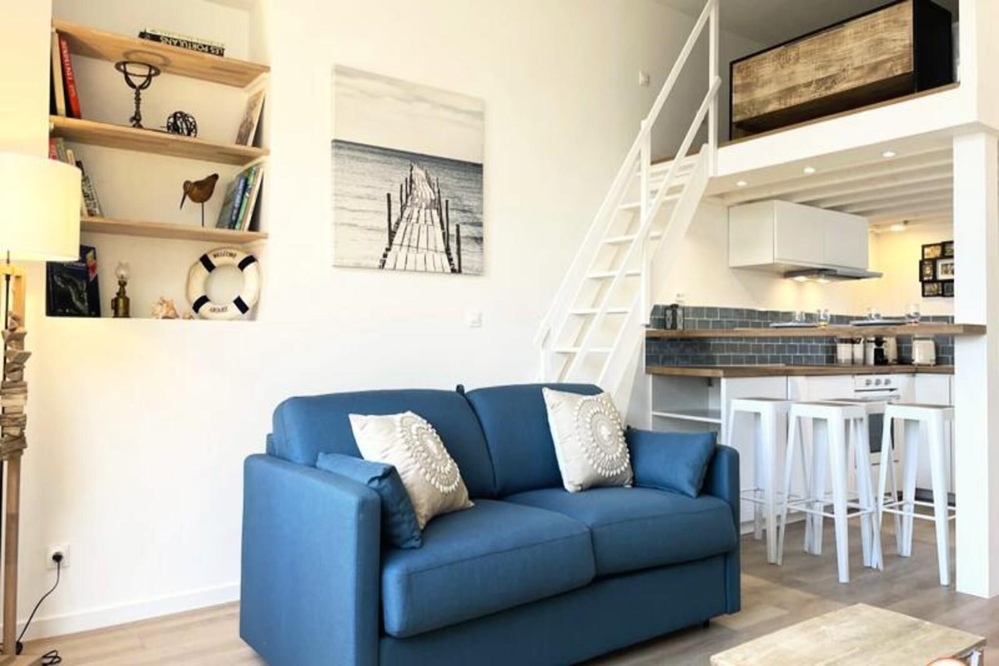 Denne charmerende lejlighed for op til 4 personer tilbyder et enestående ophold med direkte og privat adgang til stranden. Lejligheden ligger i stueetagen af ??Les Roches Normandes-boligen og har en fantastisk panoramaudsigt over havet og Trouville-stranden. Den nyligt renoverede lejlighed omfatter et fuldt udstyret åbent køkken med en hævet spiseplads, et hyggeligt opholdsområde med en high-end sovesofa og et åbent mezzanin-soveværelse med en dobbeltseng. Badeværelset er designet med en regnbruser i italiensk stil, og der er separat toilet for ekstra bekvemmelighed. Boligens beliggenhed er ideel, beliggende kun få skridt fra det berømte Roches Noires-område, kendt for sin historiske betydning. Dette sted er ikke kun tæt på stranden, men også inden for kort afstand fra byens pulserende attraktioner, herunder de berømte Trouville surfbrætter, kasinoet og Cures Marines. Nyd de lokale caféer, restauranter og butikker, der tilbyder en ægte smag af regionens charme. Lejlighedens beliggenhed garanterer et fredeligt miljø med storslåede solnedgange over havet. Yderligere faciliteter omfatter sengetøj og håndklæder, strygejern og strygebræt samt et smart-tv med adgang til Netflix og YouTube. Gæsterne kan slappe af på terrassen, mens de nyder udsigten eller udforske det omkringliggende historiske område. Lejligheden sikrer et behageligt og mindeværdigt ophold med alle de nødvendige faciliteter for din bekvemmelighed.