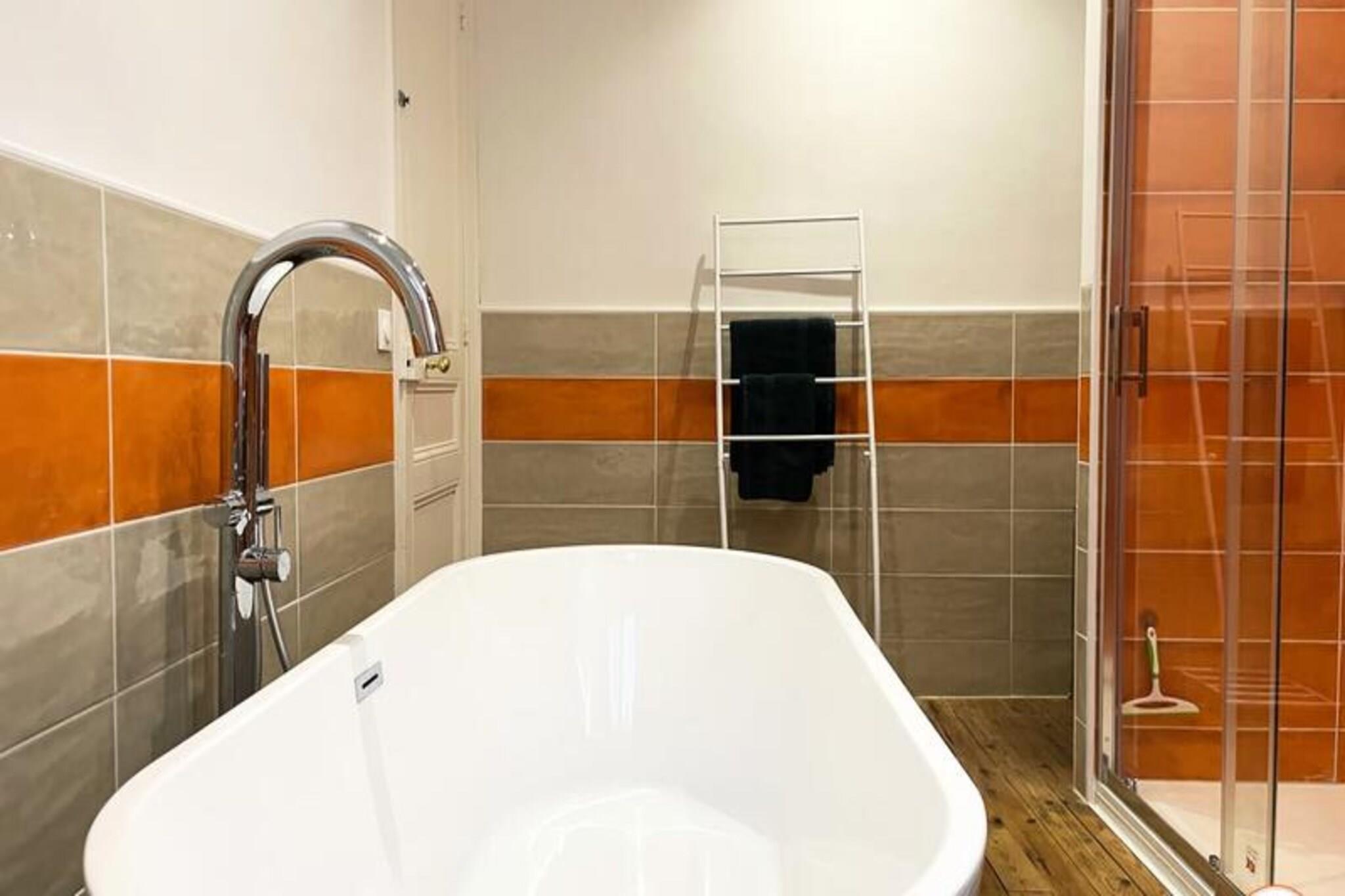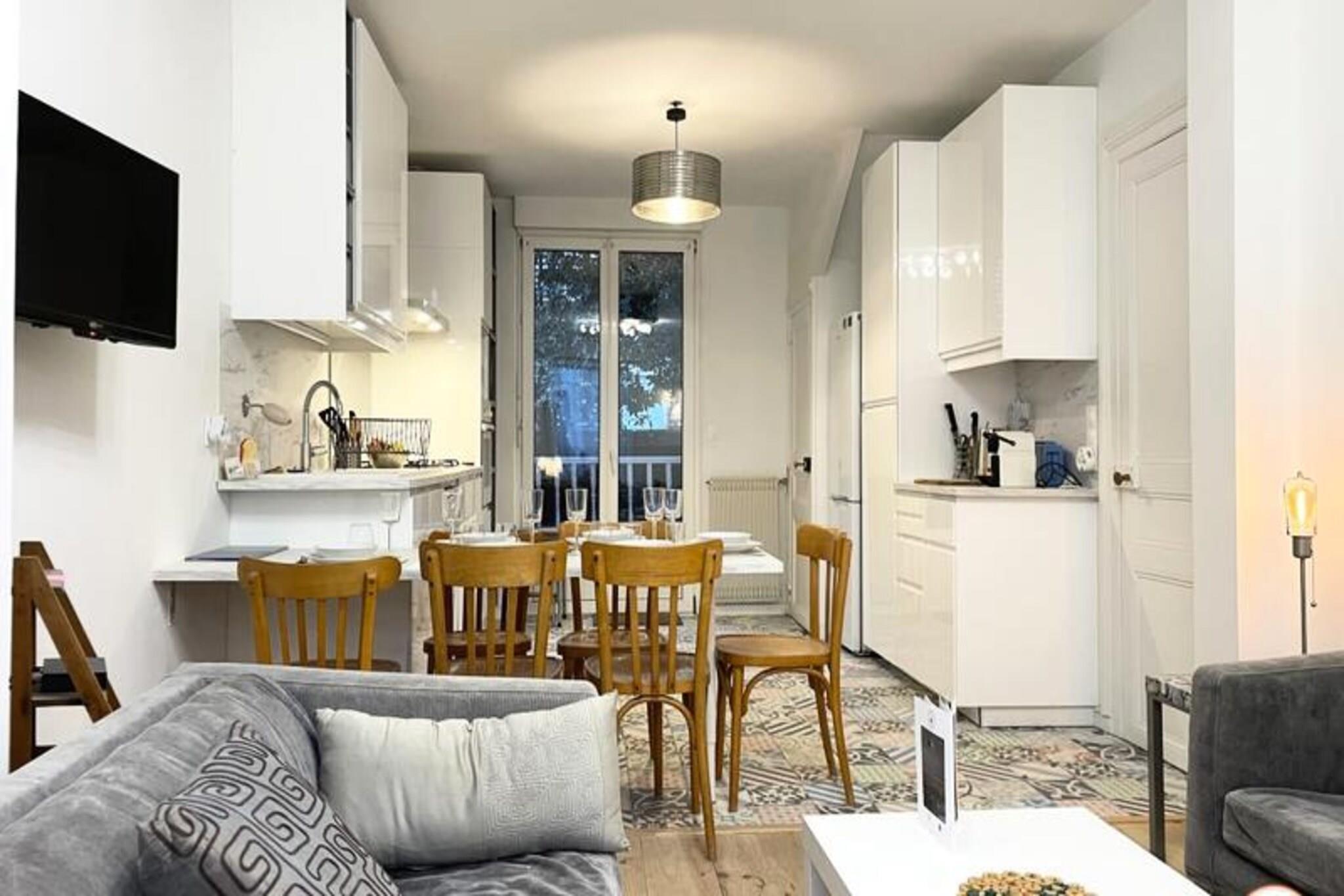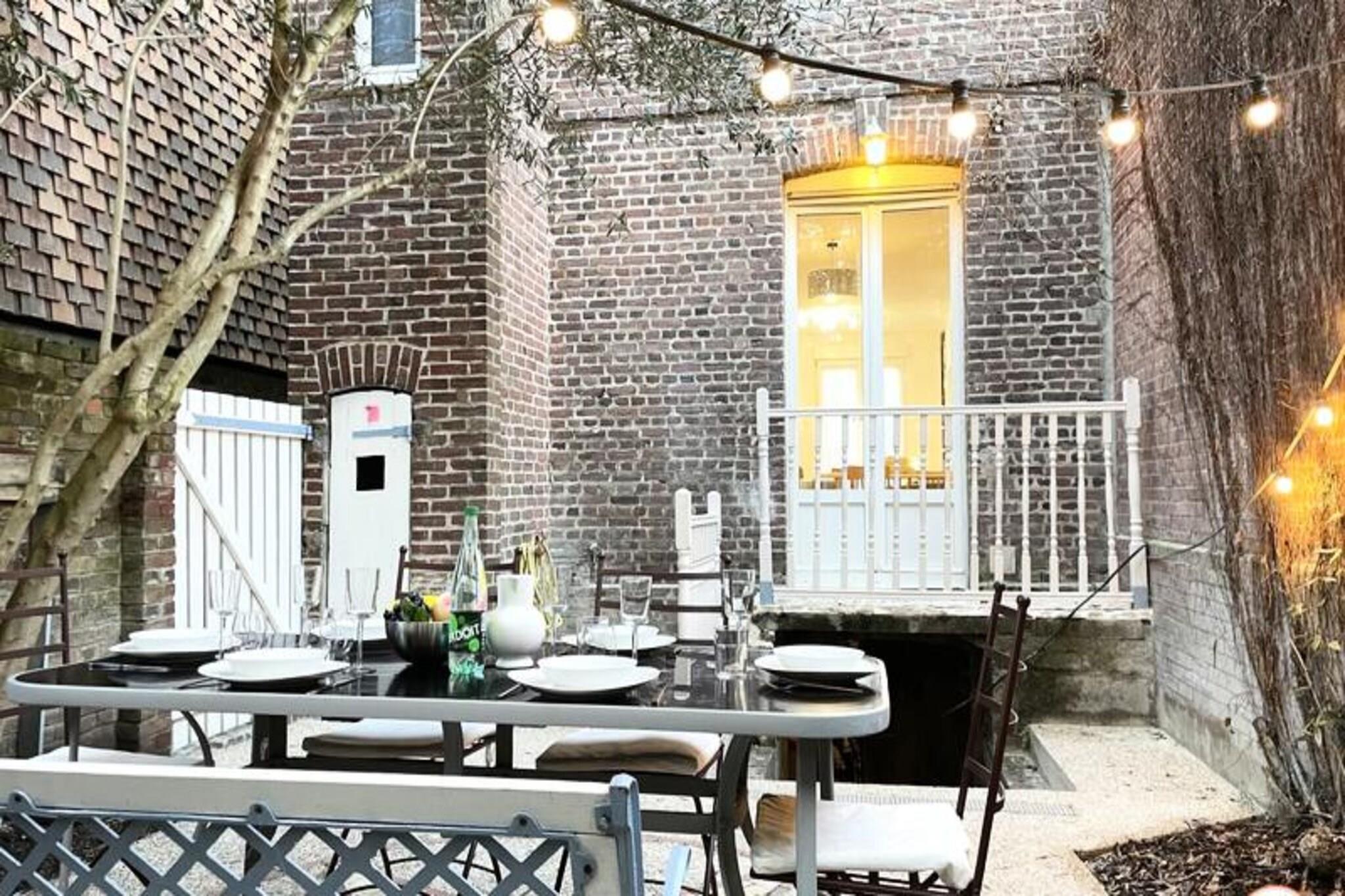 Dette charmerende byhus tilbyder et fredeligt tilflugtssted for op til 6 g?ster med privat terrasse og have. Huset har et master sovev?relse med dobbeltseng og to ekstra sovev?relser med komfortable 140x200 cm senge. En rummelig stue med komfur og fuldt udstyret k?kken, herunder ovn, k?leskab, opvaskemaskine og Nespresso kaffemaskine, sikrer et bekvemt og behageligt ophold. Huset er k?ledyrsvenligt, og en rejseseng er tilg?ngelig efter anmodning. Huset er ideelt beliggende i et roligt omr?de, kun 10 minutters gang fra togstationen og 15 minutters gang fra stranden. Butikker og restauranter er i n?rheden, hvilket g?r det nemt at udforske det pulserende lokalomr?de. Nyd den fredelige atmosf?re i nabolaget, mens du har hurtig adgang til Trouvilles attraktioner. Huset tilbyder moderne bekvemmeligheder p? tv?rs af tre niveauer, med en bruser i italiensk stil, et badekar og et ekstra brusebad. Et dedikeret arbejdsomr?de p? ?verste etage er perfekt til fjernarbejde eller for b?rn at lege. G?sterne kan ogs? nyde gratis Wi-Fi, te og kaffe, med nemme parkeringsmuligheder tilg?ngelige i n?rheden.