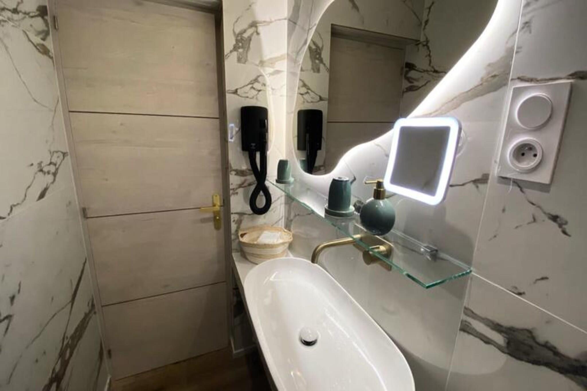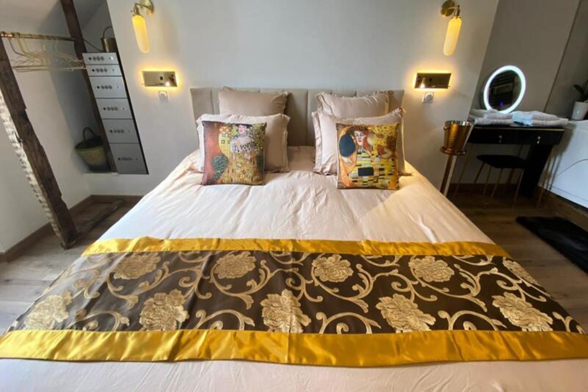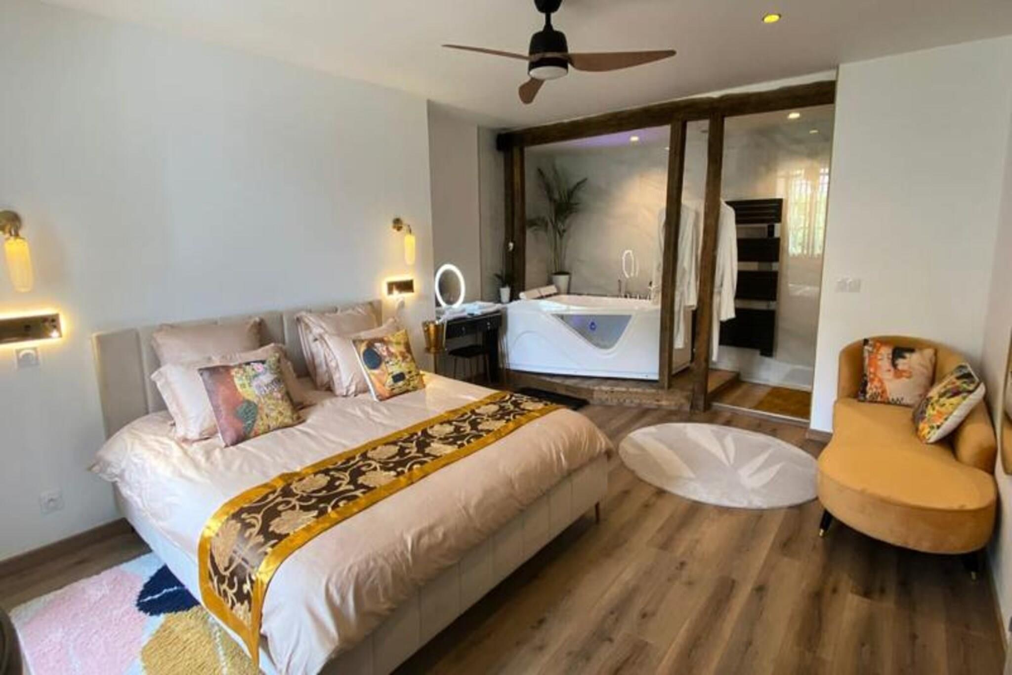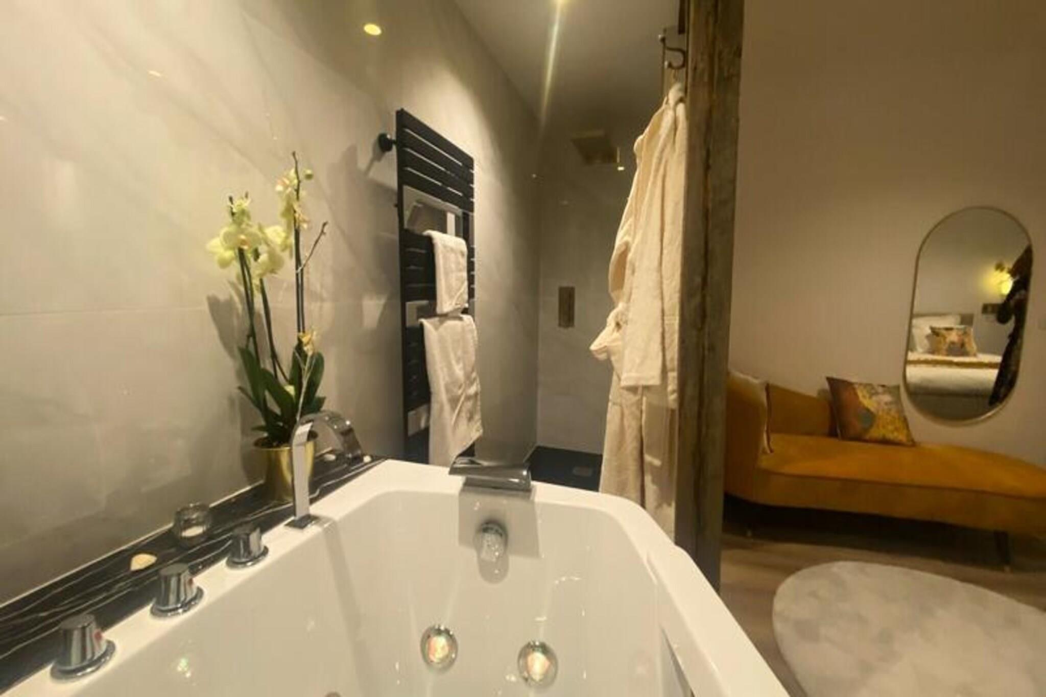 Denne romantiske lejlighed er det perfekte tilflugtssted for par, der ?nsker at slappe af og skabe varige minder. Den har en king-size seng (180x200 cm) med et luksuri?st moderne design, et stort fladsk?rms-tv og et avanceret lydsystem for en fordybende oplevelse. Det private badev?relse har et rummeligt badekar med dyser, ideelt til et afslappende boblebad for to. Ejendommen er fri for k?ledyr og tilbyder et fredeligt milj? til at nyde et roligt ophold. Lejligheden ligger i et charmerende og malerisk kvarter langs bredden af ??Corr?ze-floden og tilbyder en fantastisk udsigt over vandet og fredelige vandrestier. Det er kun en kort g?tur fra hjertet af Tulle, med lokale caf?er, bagerier og butikker at udforske. Omr?det er hjemsted for flere parker til udend?rs afslapning og afslappede g?ture. Ikke langt fra den ber?mte Notre-Dame-katedral og Klostermuseet giver denne beliggenhed en fredfyldt atmosf?re, mens den forbliver t?t p? byens attraktioner. Lejligheden har et fuldt udstyret k?kken og en hyggelig spiseplads til at spise i. Med sin moderne og romantiske indretning tilbyder den et behageligt sted at slappe af. Badev?relset med boblebad er perfekt til afslapning. Du har ogs? adgang til en gratis overd?kket parkeringsplads uden for ejendommen.