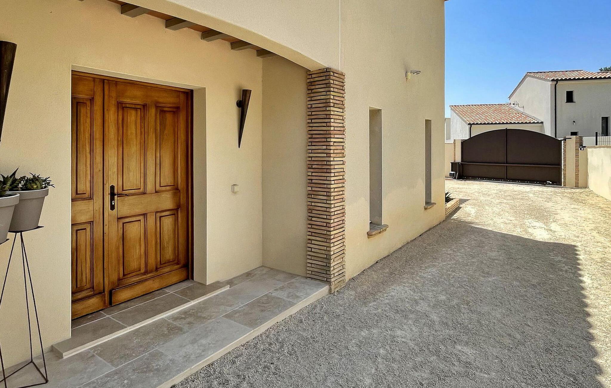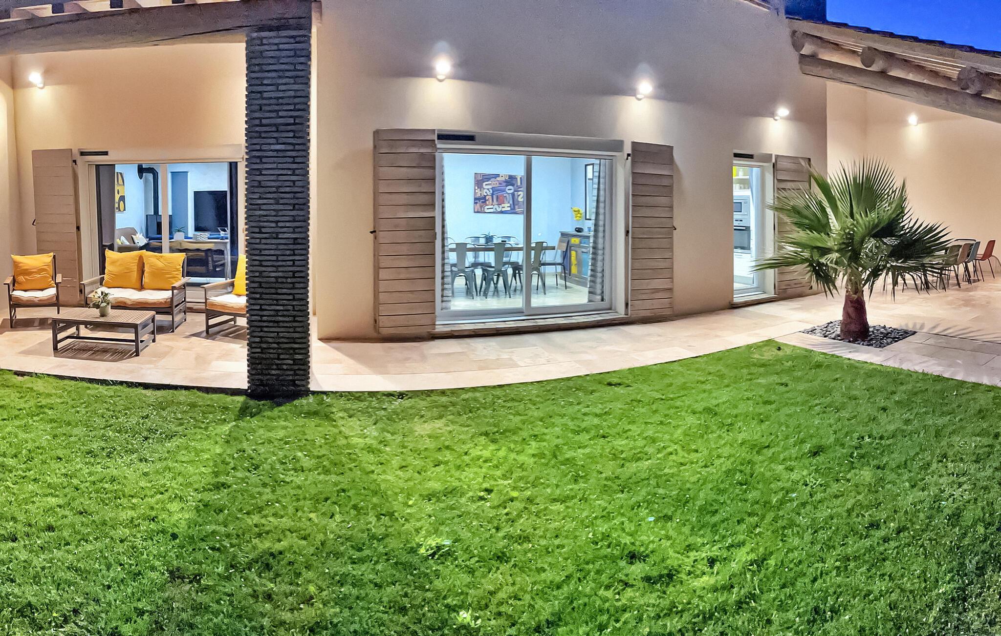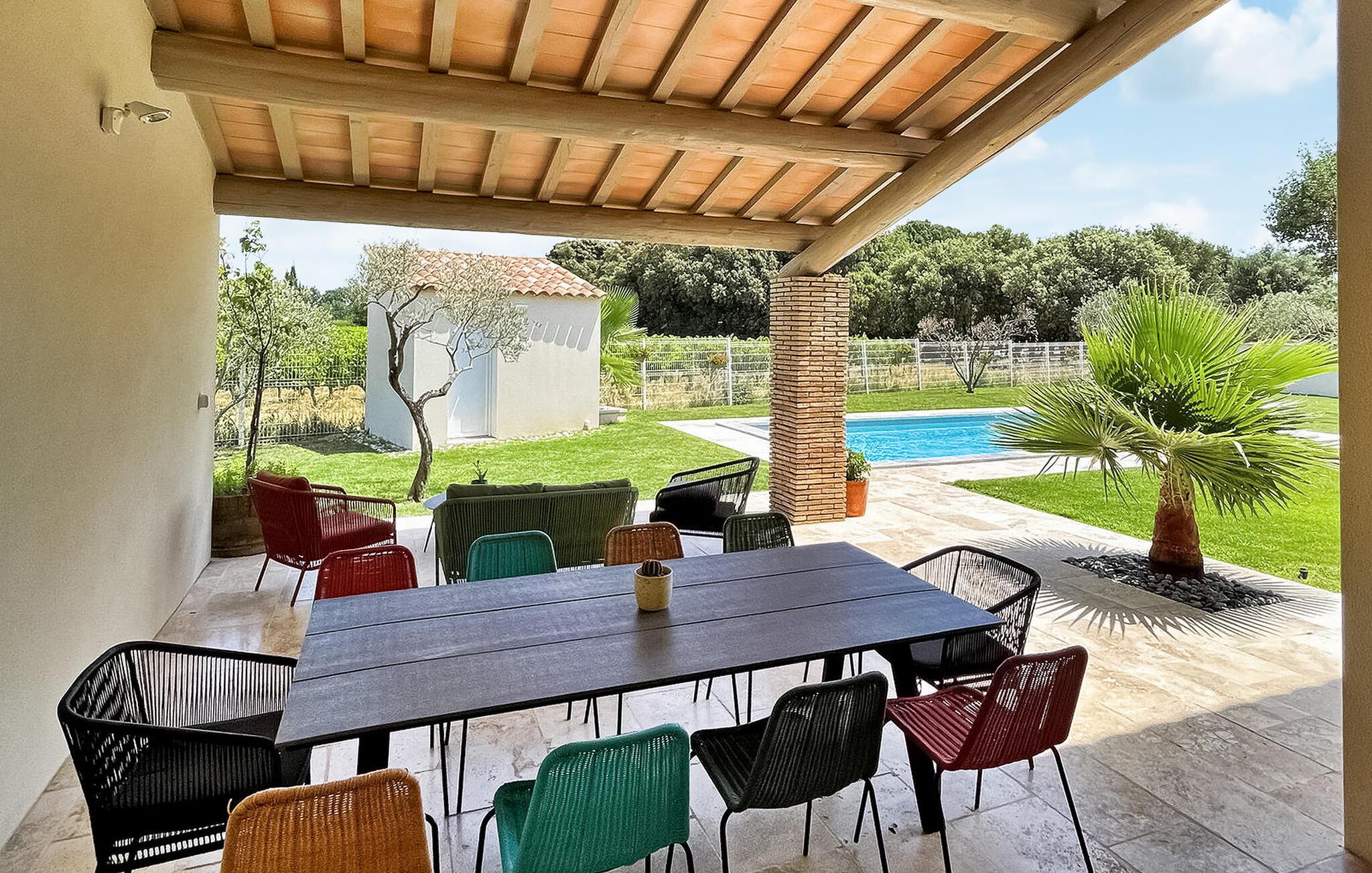 Denne ferievilla i Uchaux, beliggende mellem Vaucluse og Drôme Provençale, tilbyder en rolig flugt. Det har en privat pool og aircondition i alle soveværelser og opholdsområder. Gæsterne kan nyde den maleriske udsigt over Mont Ventoux og de omkringliggende vinmarker. I stueetagen finder du et køkken udstyret med de nødvendige faciliteter samt en Nespresso-kaffemaskine. Den tilstødende d spisestue åbner gennem et stort karnapvindue til terrassen og haven, med udsigt over poolen. Stuen har komfortable siddepladser og et tv, der også åbner ud til terrassen. Der er også et ensuite soveværelse på denne etage. Ovenpå er der yderligere to soveværelser med fælles badeværelse. Udenfor har den lukkede jord en have prydet med palmer og oliventræer med naturskøn udsigt over Mont Ventoux. Villaen har to terrasser - den ene giver en dejlig udsigt over Mont Ventoux, og den anden med udsigt over haven og poolen. Den private pool, der måler 8m x 4m med en dybde på 1,50m, er udstyret med liggestole, liggestole og en parasol til afslapning. En barneseng og høj stol er til rådighed til brug. Villaen er beliggende i udkanten af den lille landsby Uchaux (2 km) og landsbyen Piolenc (3,5 km), hvor du finder butikkerne: købmand, bageri, restauranter. Uchaux strækker sig over et stort område af bakker og dale bevokset med skove og vinmarker, på grænsen mellem Drôme Provençale og Vaucluse. Ideelt område til mountainbike- og vandreture i Uchaux-massivet. I nærheden kan du besøge "Côtes du Rhône"-vinmarkerne: Cairanne, Gigondas, Vacqueyras, Châteauneuf du Pape. Byen Orange, dets gamle teater og dets Chorégies (8 km).