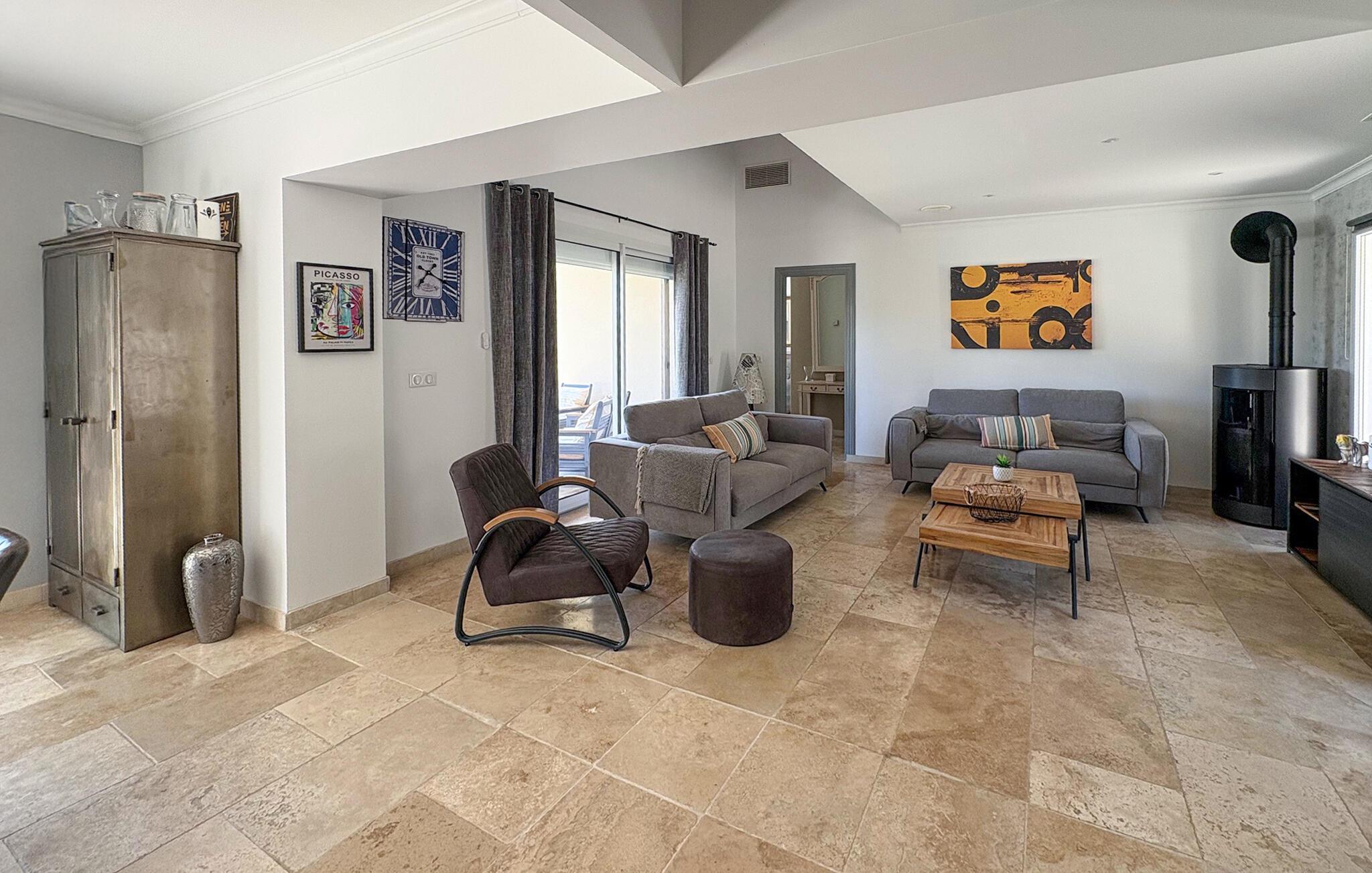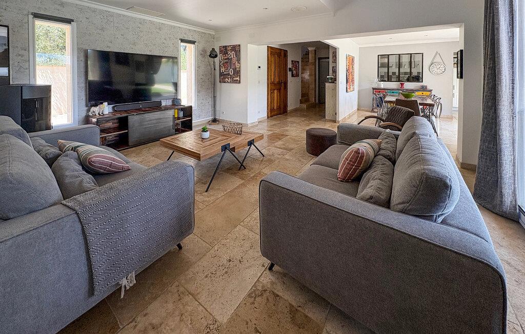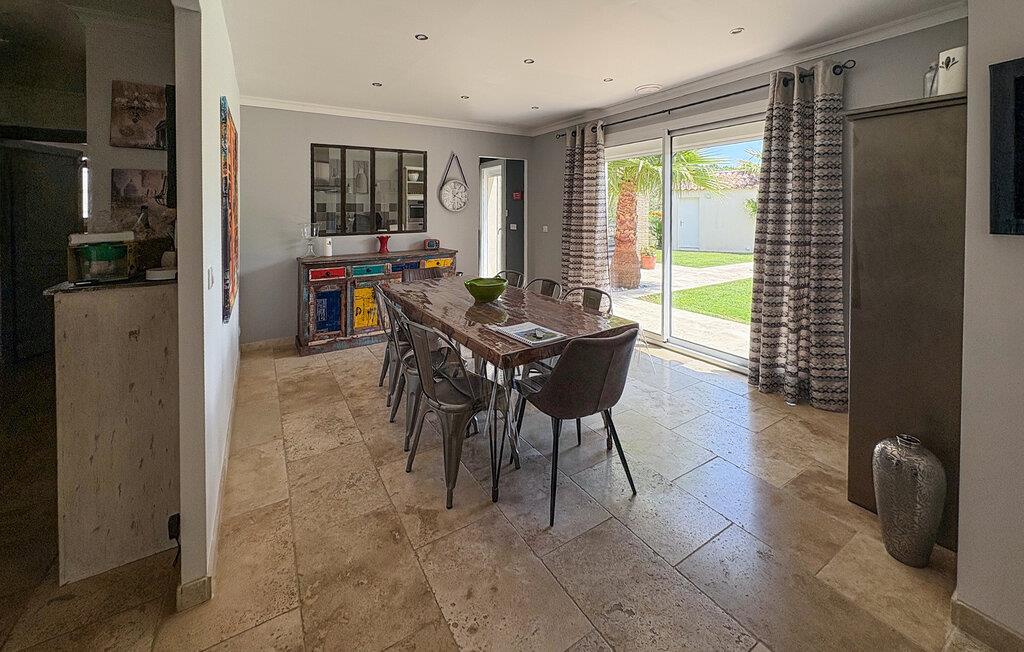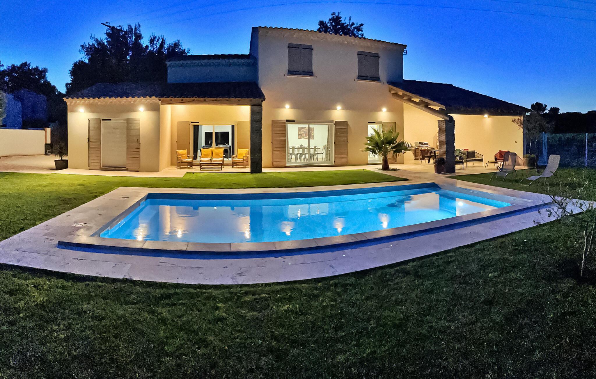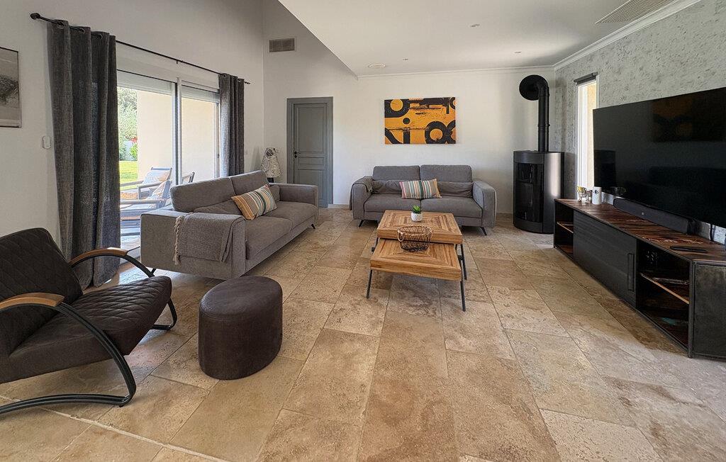 Denne ferievilla i Uchaux, beliggende mellem Vaucluse og Drôme Provençale, tilbyder en rolig flugt. Det har en privat pool og aircondition i alle soveværelser og opholdsområder. Gæsterne kan nyde den maleriske udsigt over Mont Ventoux og de omkringliggende vinmarker. I stueetagen finder du et køkken udstyret med de nødvendige faciliteter samt en Nespresso-kaffemaskine. Den tilstødende d spisestue åbner gennem et stort karnapvindue til terrassen og haven, med udsigt over poolen. Stuen har komfortable siddepladser og et tv, der også åbner ud til terrassen. Der er også et ensuite soveværelse på denne etage. Ovenpå er der yderligere to soveværelser med fælles badeværelse. Udenfor har den lukkede jord en have prydet med palmer og oliventræer med naturskøn udsigt over Mont Ventoux. Villaen har to terrasser - den ene giver en dejlig udsigt over Mont Ventoux, og den anden med udsigt over haven og poolen. Den private pool, der måler 8m x 4m med en dybde på 1,50m, er udstyret med liggestole, liggestole og en parasol til afslapning. En barneseng og høj stol er til rådighed til brug. Villaen er beliggende i udkanten af den lille landsby Uchaux (2 km) og landsbyen Piolenc (3,5 km), hvor du finder butikkerne: købmand, bageri, restauranter. Uchaux strækker sig over et stort område af bakker og dale bevokset med skove og vinmarker, på grænsen mellem Drôme Provençale og Vaucluse. Ideelt område til mountainbike- og vandreture i Uchaux-massivet. I nærheden kan du besøge "Côtes du Rhône"-vinmarkerne: Cairanne, Gigondas, Vacqueyras, Châteauneuf du Pape. Byen Orange, dets gamle teater og dets Chorégies (8 km).
