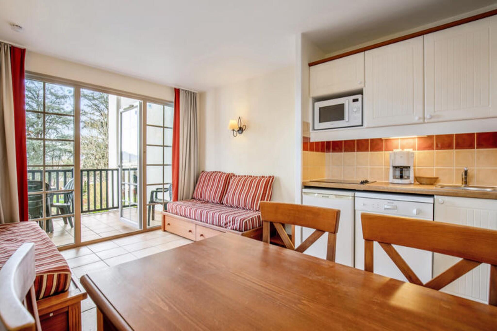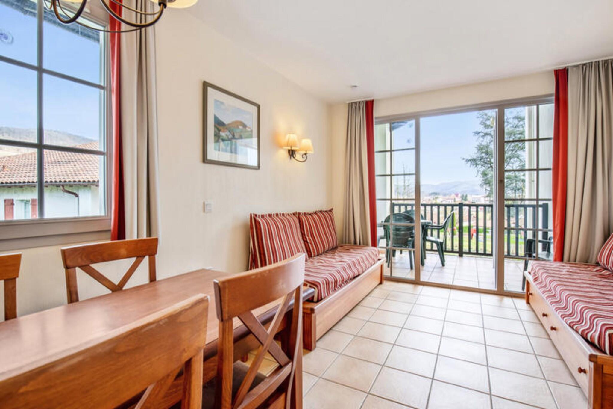 Beliggende i den maleriske by Saint-Jean-Pied-de-Port, tilbyder Le Parc d'Arradoy-residensen moderne, fuldt udstyrede lejligheder i en smuk ejendom fra det 19. århundrede. Omgivet af en stor skovklædt park, er det det perfekte sted for familier, der søger en afslappende ferie. Boligen kan prale af en udendørs swimmingpool, en legeplads og et badmintonområde, hvilket sikrer, at der er noget for enhver smag. For naturelskere giver Pyrenæernes bjerge fremragende muligheder for vandreture og ridning. Under dit ophold kan du deltage i de livlige baskiske traditioner med lokale festivaler, herunder baskisk pelota, tyrefægtning og charmerende landsbyfester, der finder sted i løbet af sommermånederne. Boligens beliggenhed giver nem adgang til både natur og kultur, så du kan fordybe dig i lokalmiljøet og livsstilen. Din ferieudlejning er en hyggelig 32 m² lejlighed på første sal, med en stue med to enkeltsovesofaer og en udtræksseng, et separat soveværelse med en dobbeltseng, et køkken, et badeværelse med badekar og et separat toilet. Derudover indeholder lejligheden altan og adgang til fælles udendørs parkering. Kæledyr er tilladt, og yderligere tjenester såsom sengelinned, håndklæder og internetadgang er tilgængelige efter anmodning mod et ekstra gebyr.