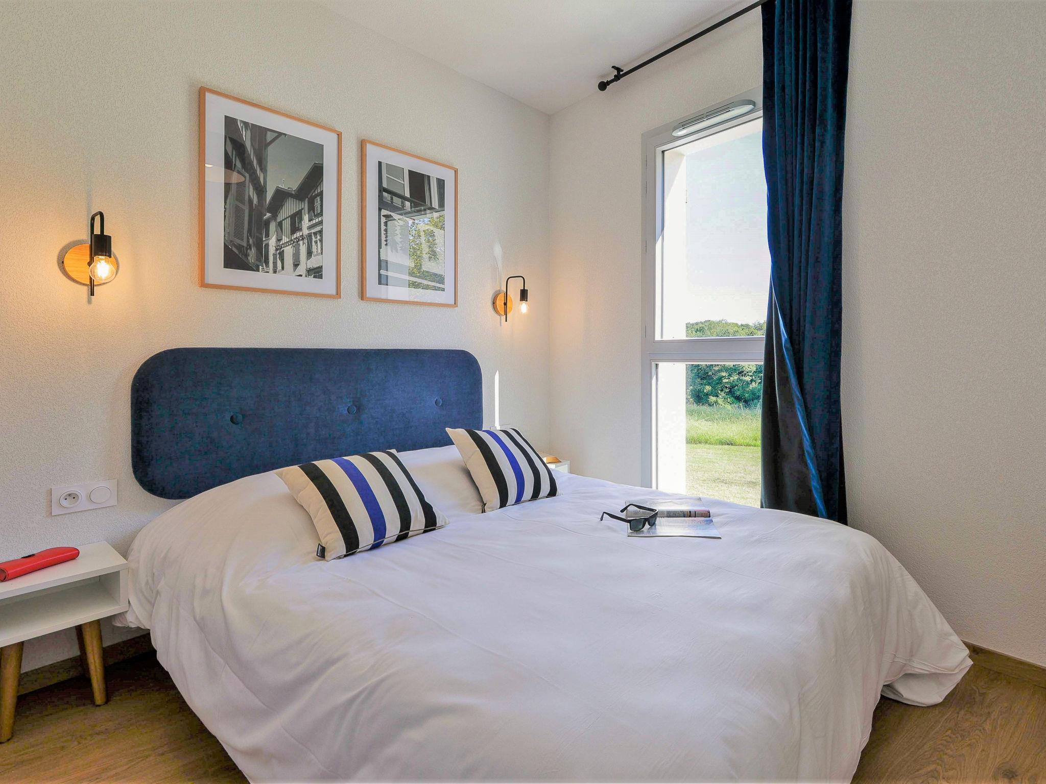 Residence "Le Domaine d'Uhaina", built in 2021. 94 apartments in the residence. 7 km from the centre of Urrugne, 8 km from the centre of Saint Jean de Luz, 25 km from the centre of Biarritz, 1 km from the sea, 5 km from the beach, in a cul-de-sac. For shared use: property 4 ha (fenced), swimming pool, indoor pool heated, fenced (9 x 3 m, depth 150 cm, seasonal availability: 01.Jan. - 31.Dec.). Shower/WC in the pool area, boccia, terrace, garden furniture. In the complex: reception, WiFi, sauna, fitness room, hamam table tennis, sun terrace, washing machine, tumble dryer (for shared use, extra). Breakfast on request (extra). Parking (limited number of spaces) on the premises. Shop 5 km, supermarket 8 km, sandy beach "Hendaye" 5 km. Golf course (18 hole) 29 km. Nearby attractions: Hendaye 5 km, Saint Jean de Luz 8 km, Guéthary 16 km, La Rhune 19 km, Biarritz 23 km, Espagne 8 km. Please note: the photograph shows a typical example. The holiday properties may differ in living space, floorplan, equipment and furnishing.