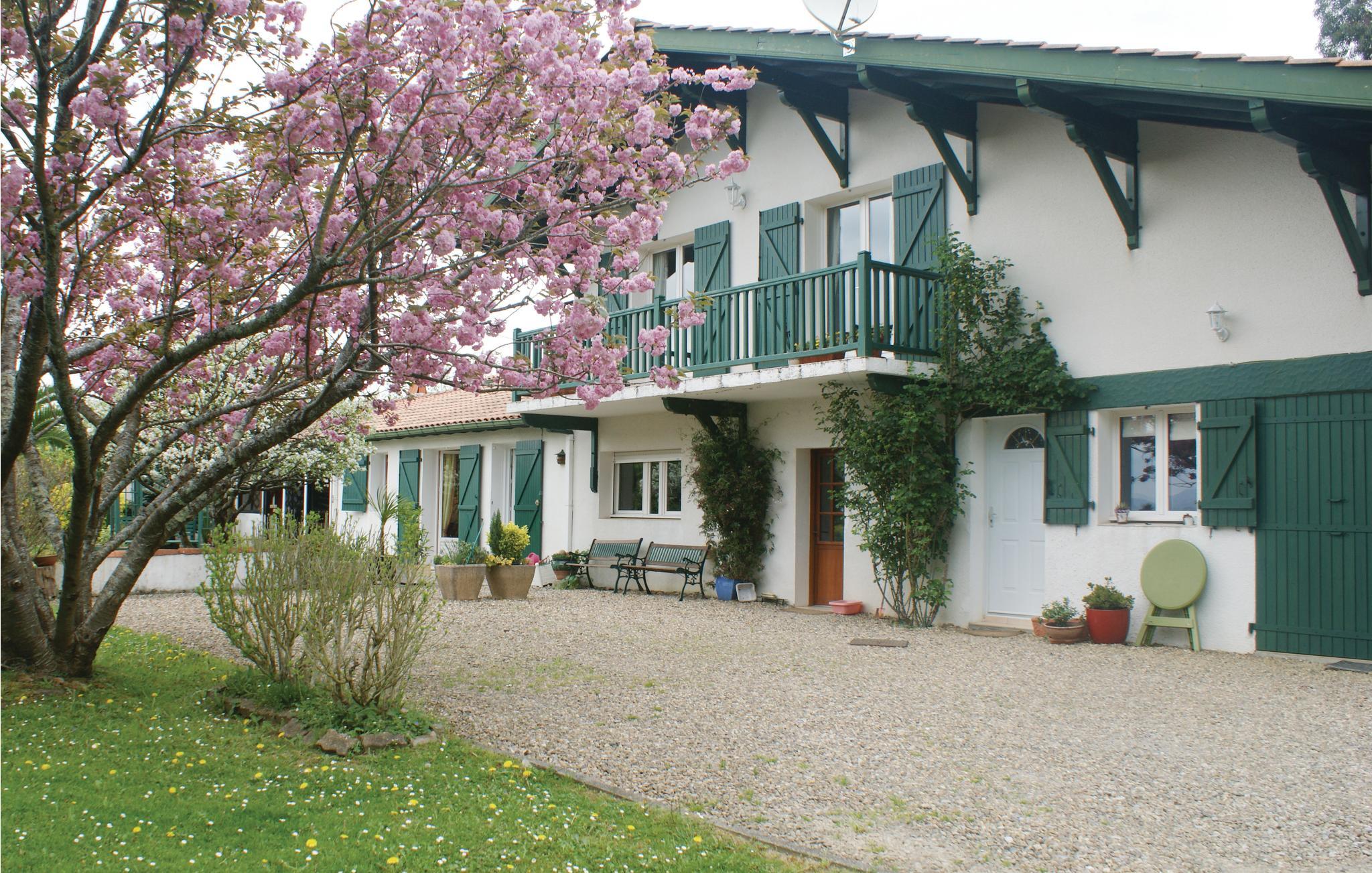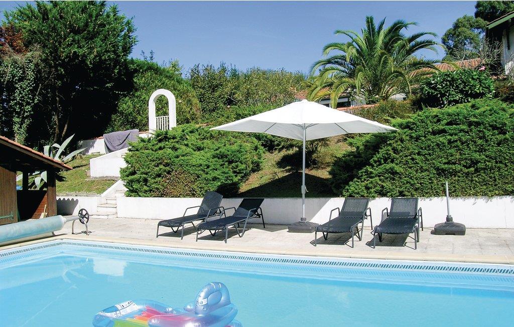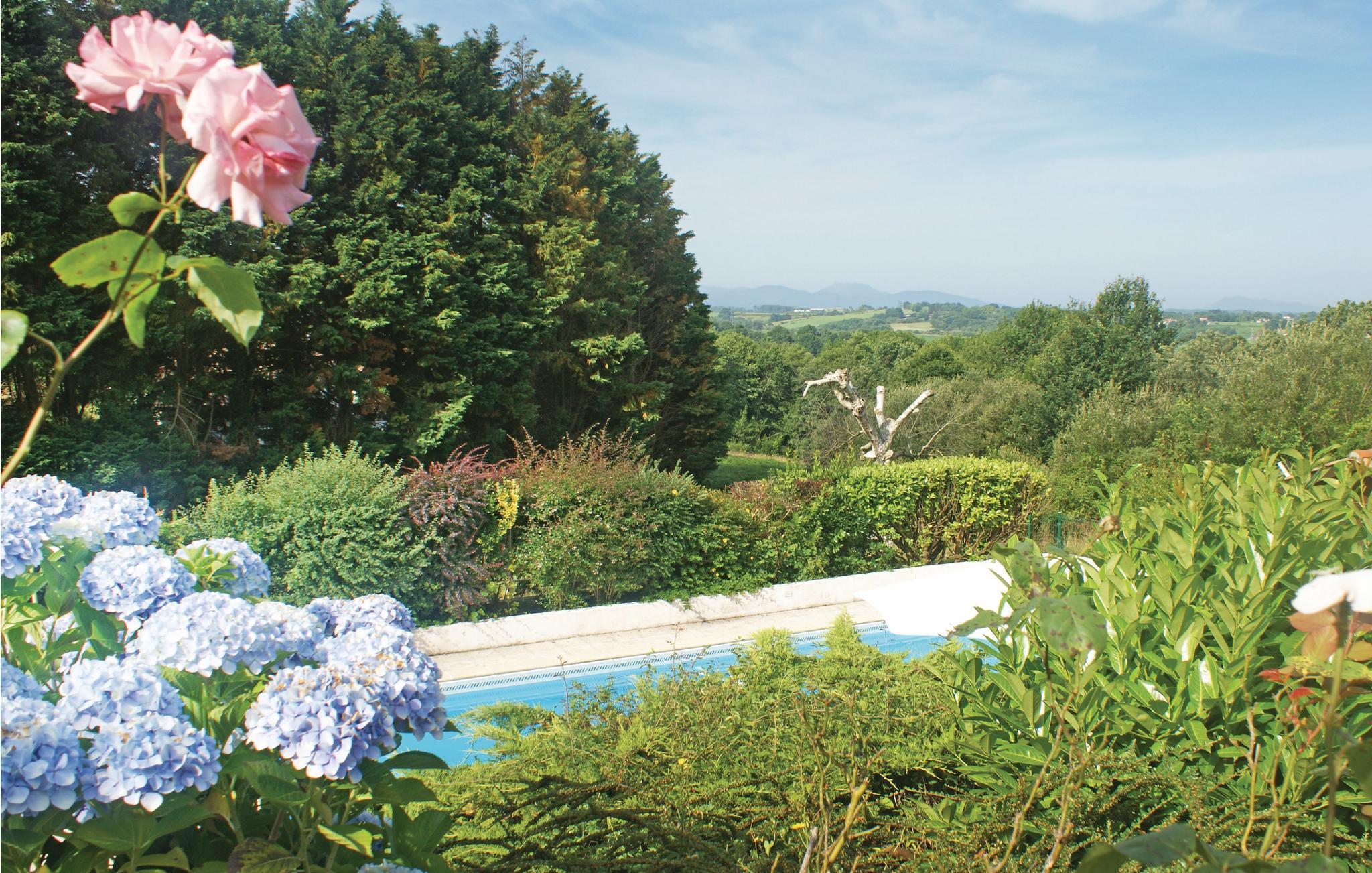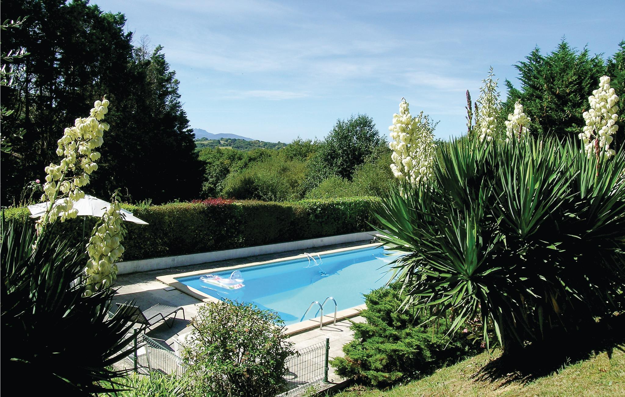 Denne feriebolig med veranda og grillterrasse er del af en vidunderlig ejendom ved landsbyen Arcangues, kun 10 minutter i bil fra den elegante badeby Biarritz og 20 km fra den spanske grænse. På gæsterne venter den stort anlagte have med udsigt til Pyrenæerne. Der er få trin ned i den private pool, der opvarmes med solaranlæg. Udover verandaen er der også en hyggelig terrasse foran huset, ideel til grillaftener. Golfvenner kan dyrke deres passion på mange internationalt anerkendte golfbaner i nærheden som Golf de Chantaco, Golf de Biarritz og Golf d’Arcangues. Der er dejlige vandringsruter igennem omgivelserne og Pyrenæerne, og hvis I skal bruge et særligt rus er der mulighed for rafting i Nives slugter. Kør til Biarritz og oplev det baskiske køkken i en af byens restauranter, og gå bagefter en tur langs havet. I den charmerende havneby Saint-Jean-de-Luz, hvor der er traditionelle festligheder året rundt, er der en bred vifte af barer til aftenunderholdningen. Den venlige ejer, der bor i en sidebygning, hjælper jer gerne med gode råd til udflugter i omgivelserne. Mulighed for parkering på grunden.
