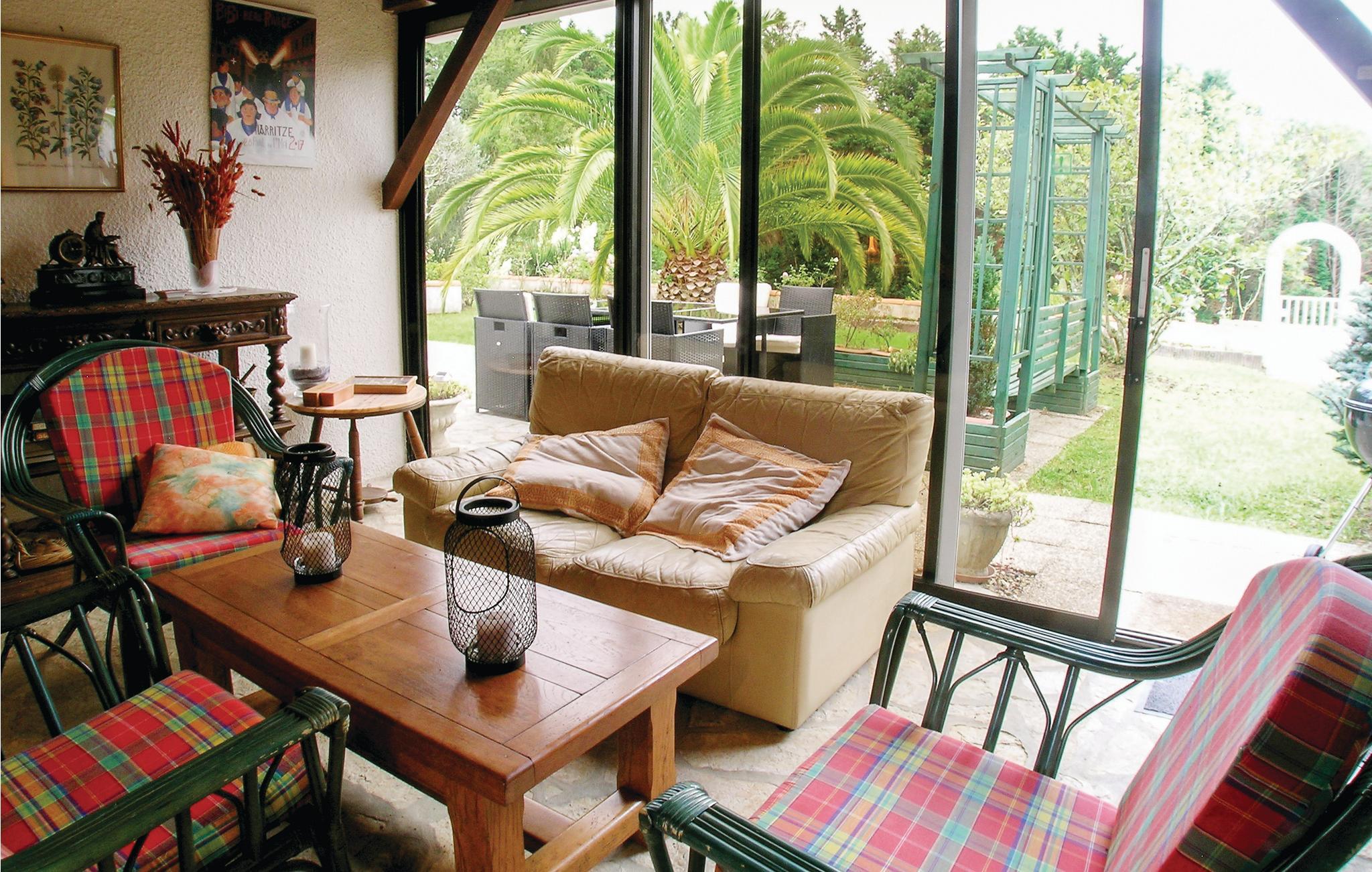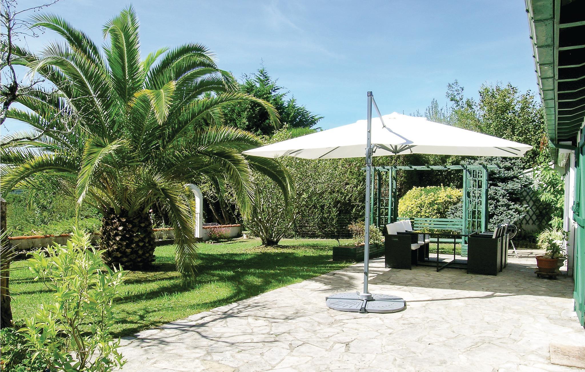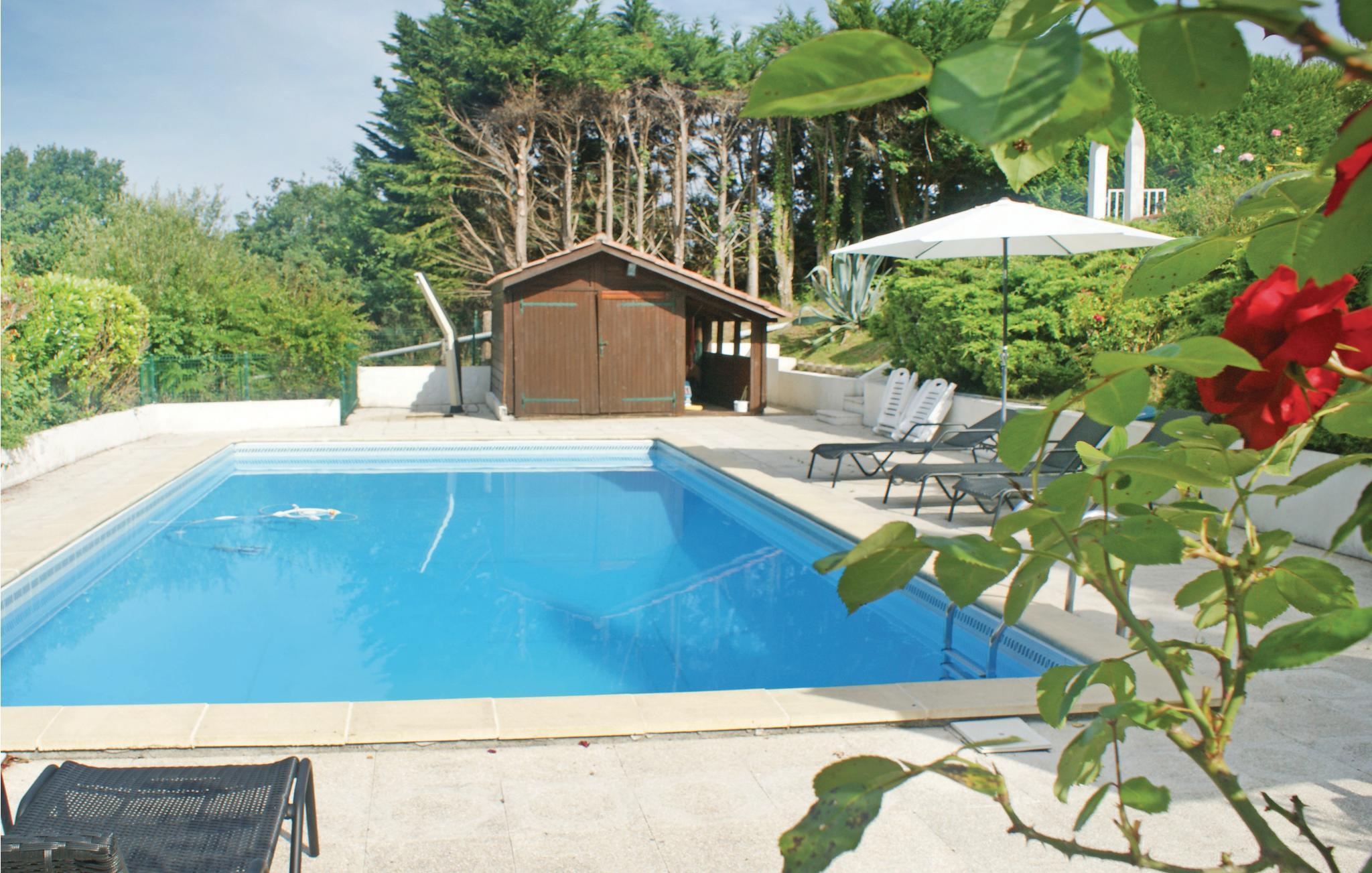 Denne feriebolig med veranda og grillterrasse er del af en vidunderlig ejendom ved landsbyen Arcangues, kun 10 minutter i bil fra den elegante badeby Biarritz og 20 km fra den spanske grænse. På gæsterne venter den stort anlagte have med udsigt til Pyrenæerne. Der er få trin ned i den private pool, der opvarmes med solaranlæg. Udover verandaen er der også en hyggelig terrasse foran huset, ideel til grillaftener. Golfvenner kan dyrke deres passion på mange internationalt anerkendte golfbaner i nærheden som Golf de Chantaco, Golf de Biarritz og Golf d’Arcangues. Der er dejlige vandringsruter igennem omgivelserne og Pyrenæerne, og hvis I skal bruge et særligt rus er der mulighed for rafting i Nives slugter. Kør til Biarritz og oplev det baskiske køkken i en af byens restauranter, og gå bagefter en tur langs havet. I den charmerende havneby Saint-Jean-de-Luz, hvor der er traditionelle festligheder året rundt, er der en bred vifte af barer til aftenunderholdningen. Den venlige ejer, der bor i en sidebygning, hjælper jer gerne med gode råd til udflugter i omgivelserne. Mulighed for parkering på grunden.