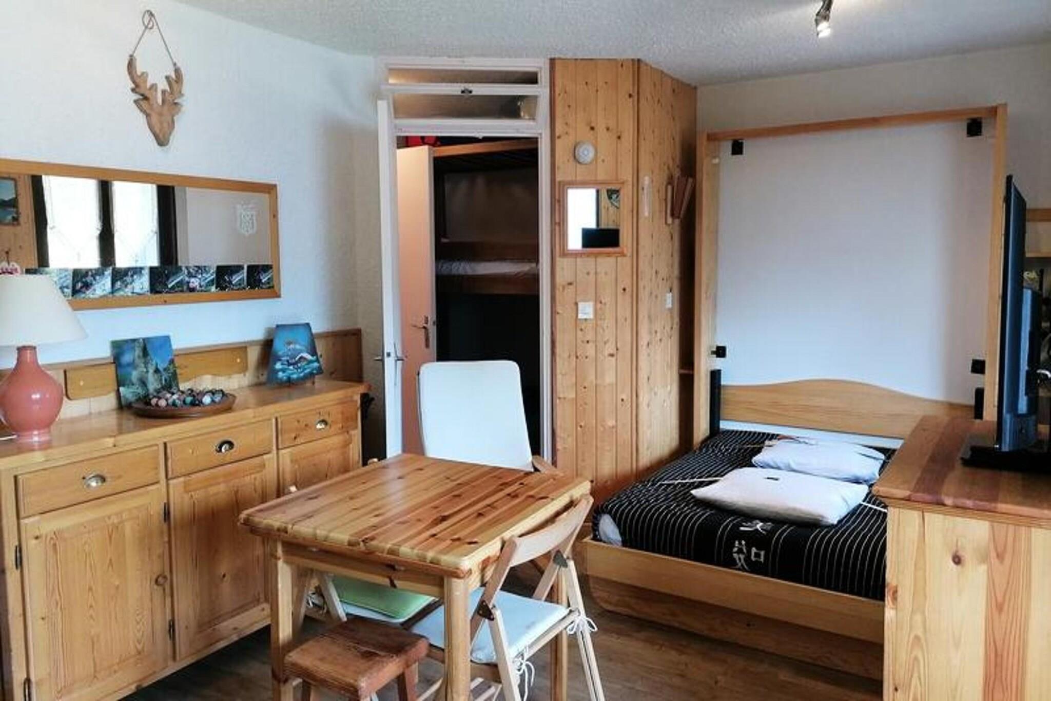 This cozy studio apartment for 4 to 5 people offers a comfortable stay with a south-east facing balcony and panoramic mountain views. The living room features a convertible sofa, a foldaway bed, and an HD TV, ensuring ample space for relaxation. The studio also includes a mountain corner with two bunk beds and storage for your belongings. This non-smoking apartment is pet-free and provides a pleasant environment with parquet flooring, double glazing, and wooden shutters to maintain a peaceful atmosphere. The property is ideally located just 200 meters from the Molanès cable car and 40 meters from a free shuttle stop, making it easy to access skiing and other mountain activities. A short distance away, you'll find local cafes and shops, perfect for grabbing a warm drink or snacks. Explore nearby markets for local goods and enjoy the beauty of the surrounding mountainous landscape. The apartment is equipped with a functional kitchen area, including a refrigerator, four ceramic hobs, an oven, microwave, and coffee maker. For added convenience, a raclette grill, toaster, and kettle are also available. The bathroom has a shower and washing machine, while the independent WC ensures privacy. A dedicated ski box is provided for your winter gear, ensuring a hassle-free experience during your stay.