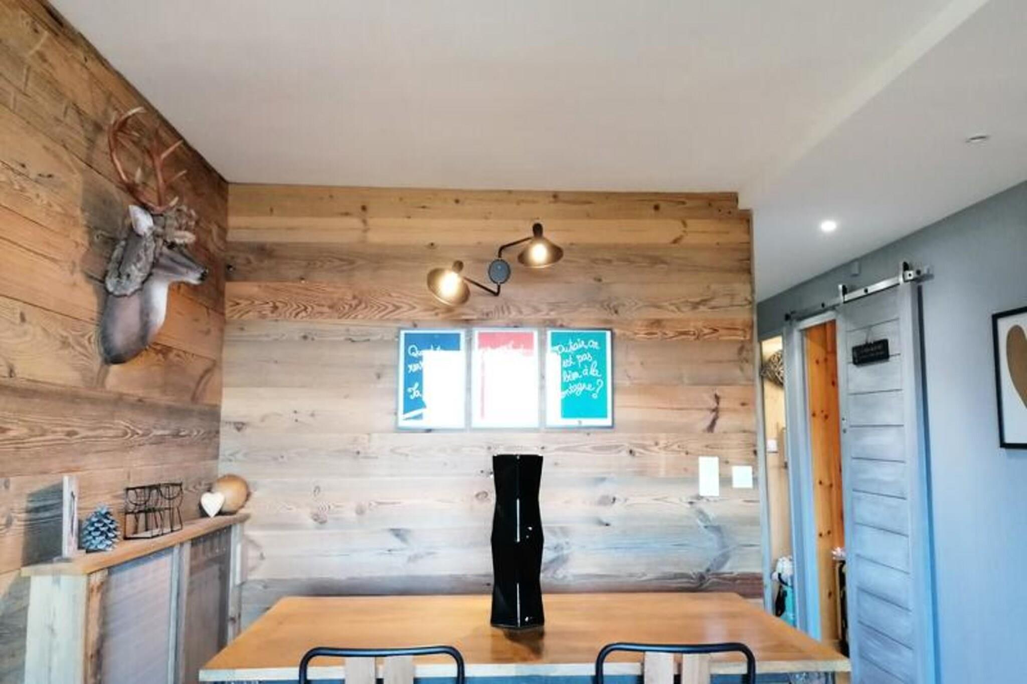 Denne smukt renoverede lejlighed tilbyder et komfortabelt tilflugtssted for op til fire gæster, der kombinerer moderne stil med hyggelig alpin charme. Indkvarteringen omfatter en rummelig stue med en hjørnesofa, spiseplads og adgang til en balkon med en fantastisk udsigt over pisterne og resortets centrum. De to soveværelser giver afslappende muligheder: et master soveværelse med en 160x200 dobbeltseng og adgang til balkon, og et andet soveværelse med to enkeltsenge (80x190). For ekstra bekvemmelighed forbyder denne røgfri ejendom strengt kæledyr, hvilket sikrer et roligt og allergifrit miljø. Perfekt beliggende kun 20 meter fra pisterne og 50 meter fra indkøbscenteret, tilbyder denne lejlighed nem adgang til al spændingen på feriestedet. Uanset om du er ivrig efter at køre på pisterne, udforske lokale caféer eller gennemse butikker i nærheden, finder du alt kun få skridt væk. Den syd/østvendte balkon er det perfekte sted at slappe af og nyde de maleriske omgivelser efter en dag med eventyr. Lejligheden har et fuldt udstyret åbent køkken med moderne apparater, herunder induktionskomfur, køleskab/fryser, opvaskemaskine, mikroovn, Nespresso kaffemaskine og specialkøkkengrej som en raclettemaskine, fonduesæt og pierrade. Badeværelset har et badekar og en vaskemaskine, mens et separat toilet tilføjer bekvemmelighed. Med parketgulve, elegant indretning, et privat skiskab og adgang til udendørs parkering er denne lejlighed et ideelt valg til en stilfuld og problemfri bjergferie.