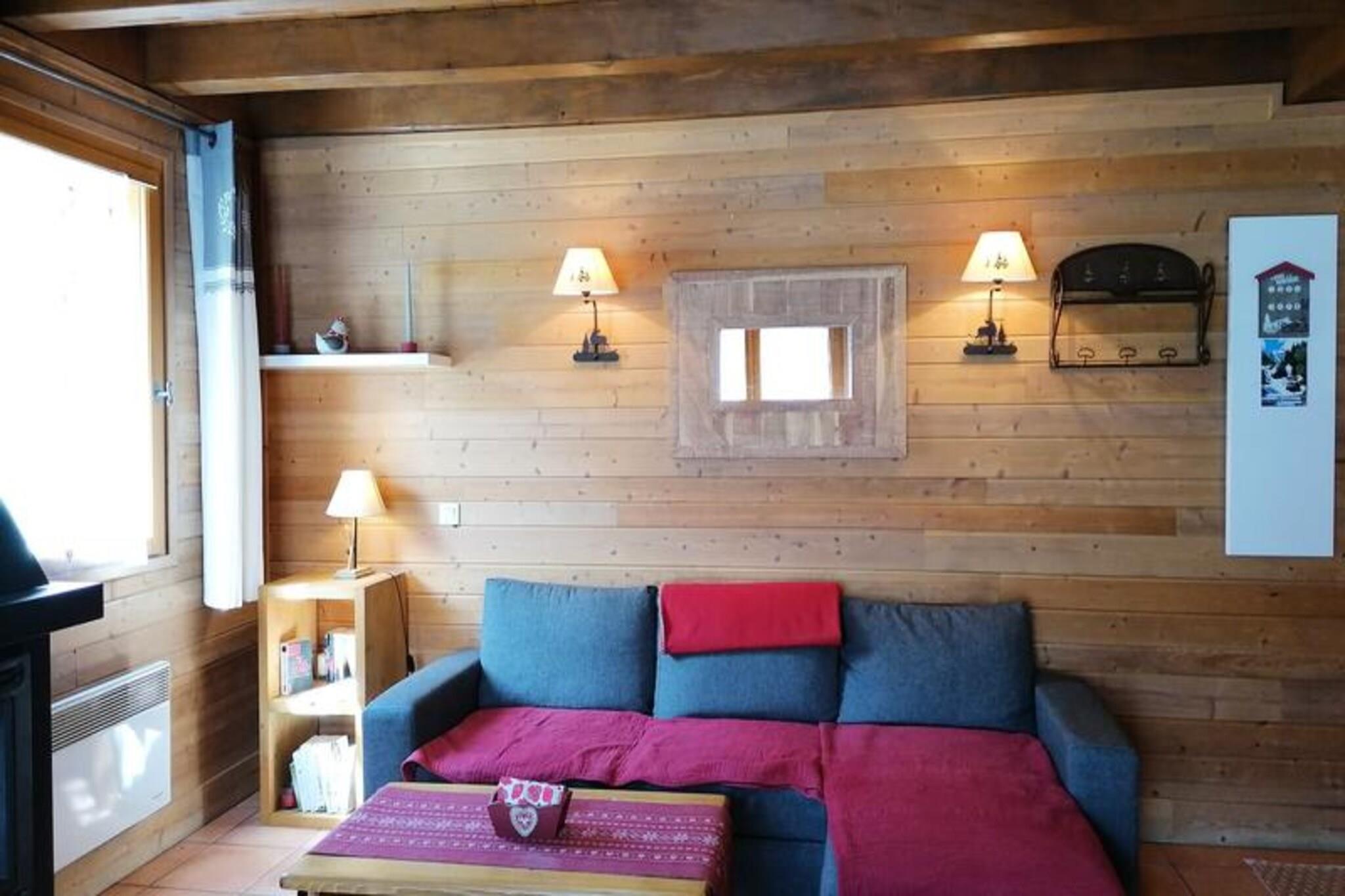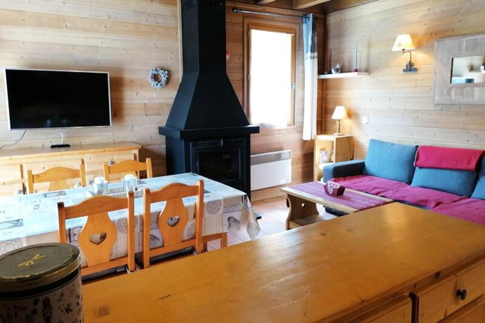 This charming 3-room chalet, ideal for 4-6 people, spans approximately 49m² and is located in a peaceful, nature-filled setting. The chalet features two cozy bedrooms, each with a double bed and ample storage space. The living room is equipped with a convertible corner sofa that sleeps two, an HD TV, and a beautiful insert fireplace, perfect for relaxing after a day outdoors. The property is pet-free and non-smoking, ensuring a fresh and clean environment. A deposit is required upon check-in. Located in a serene area, this chalet offers a quiet escape while being close to local attractions. The surrounding mountains provide the perfect backdrop for outdoor activities, from hiking to skiing, depending on the season. Nearby cafes and markets offer local products, giving you a chance to explore the regional cuisine and culture. The area is ideal for those seeking both tranquility and adventure. The chalet comes fully equipped with a kitchen area, featuring a ceramic hob, oven, fridge/freezer, dishwasher, washing machine, microwave, and coffee makers (both Nespresso and filter). The bathroom includes a bathtub and sink, with an independent WC for added convenience. The south-facing terrace is an excellent spot for outdoor relaxation, and the chalet includes free Wi-Fi and an Orange TV Box to keep you entertained.