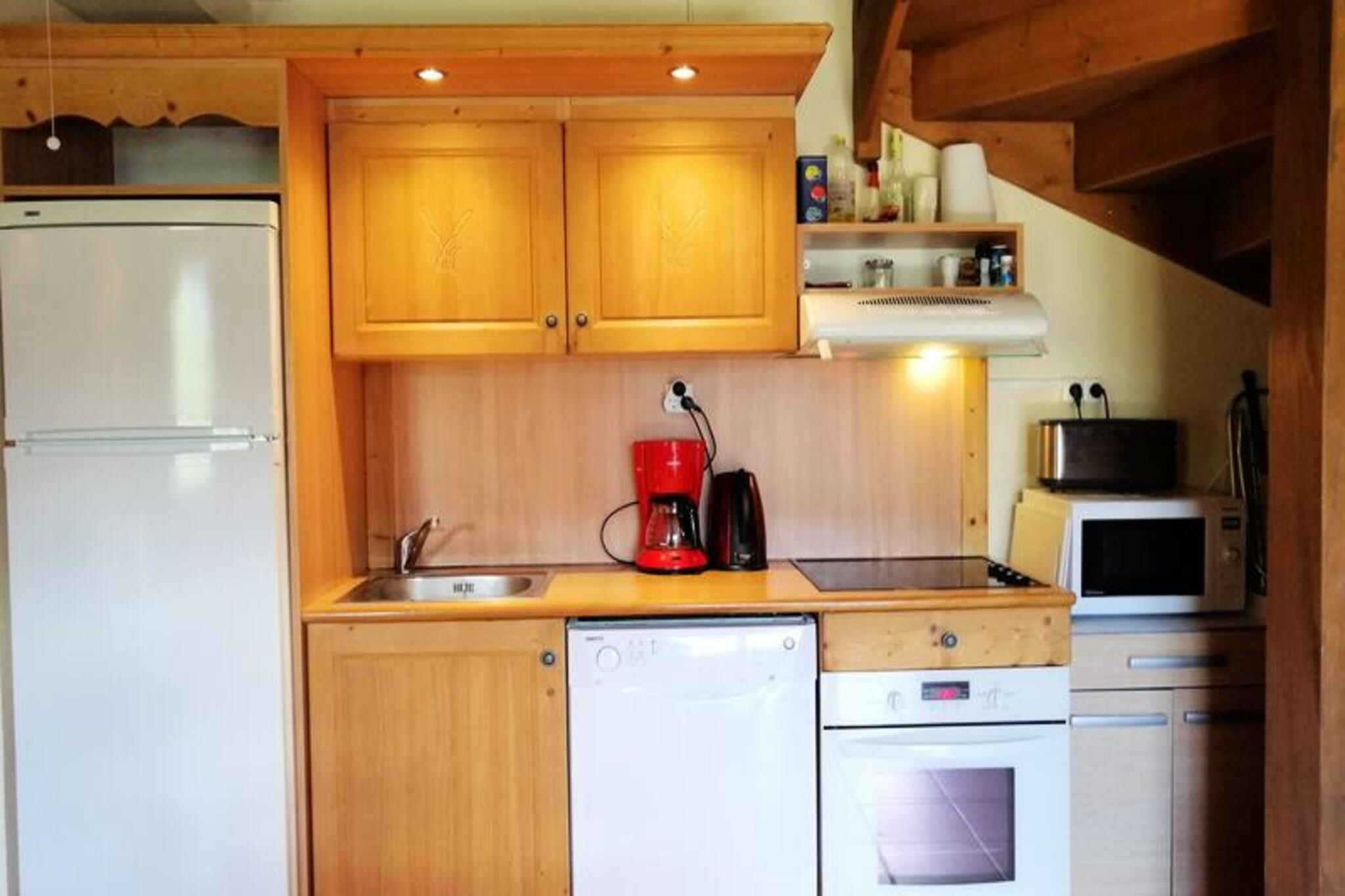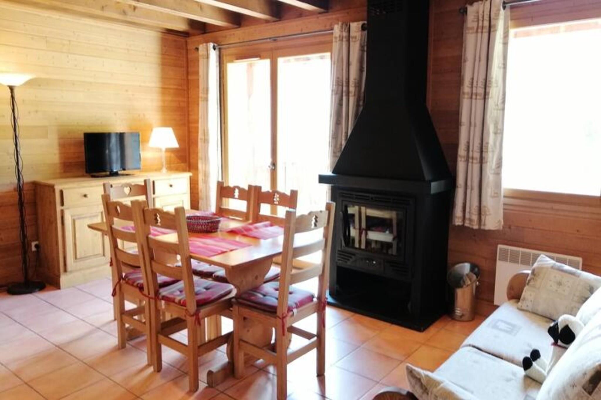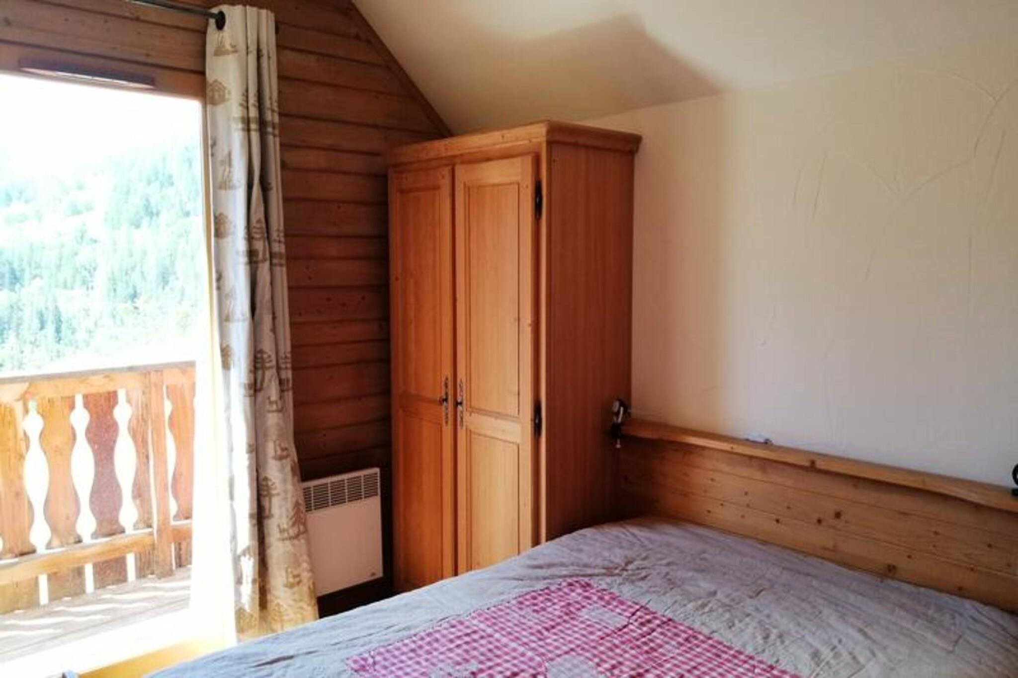 Denne charmerende halv-chalet, der strækker sig over cirka 49 m² på to niveauer, rummer komfortabelt 4-6 gæster. Sovearrangementer inkluderer en dobbelt konvertibel "rapido" sovesofa i stuen og en dobbeltseng i hvert af de to soveværelser. Kæledyr er strengt forbudt, og hytten er ikke-ryger. Hytten nyder godt af en øst/syd eksponering og tilbyder en terrasse og balkon med smuk udsigt over bjergene. Dette feriehus ligger i Pra-Loup 1500 og byder på rolige og naturfyldte omgivelser. Mens specifikke detaljer om nærliggende butikker, caféer og markeder ikke er angivet, antyder dens placering i et bjergresort, at faciliteter er inden for rimelig afstand. Hyttens nærhed til bjergene gør den ideel til vandreture, skiløb og andre udendørs aktiviteter. Denne veludstyrede chalet har opholdsstue med HD-tv, indsat pejs og attraktive træmøbler. Køkkenområdet omfatter en keramisk kogeplade, ovn, køleskab/fryser, opvaskemaskine, mikroovn, filterkaffemaskine, opbevaringsskabe og en raclettegrill. På øverste etage er der to soveværelser med hver en dobbeltseng og opbevaringsskabe samt udgang til altan. Der er også badeværelse med badekar og håndvask samt separat toilet. Varme er inkluderet. Der kræves et depositum.