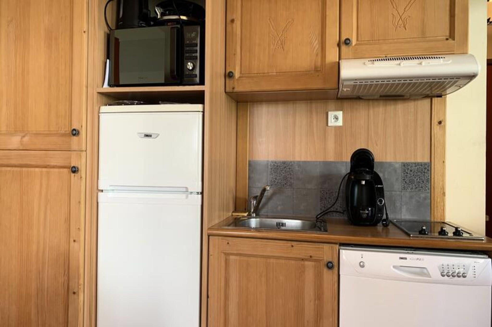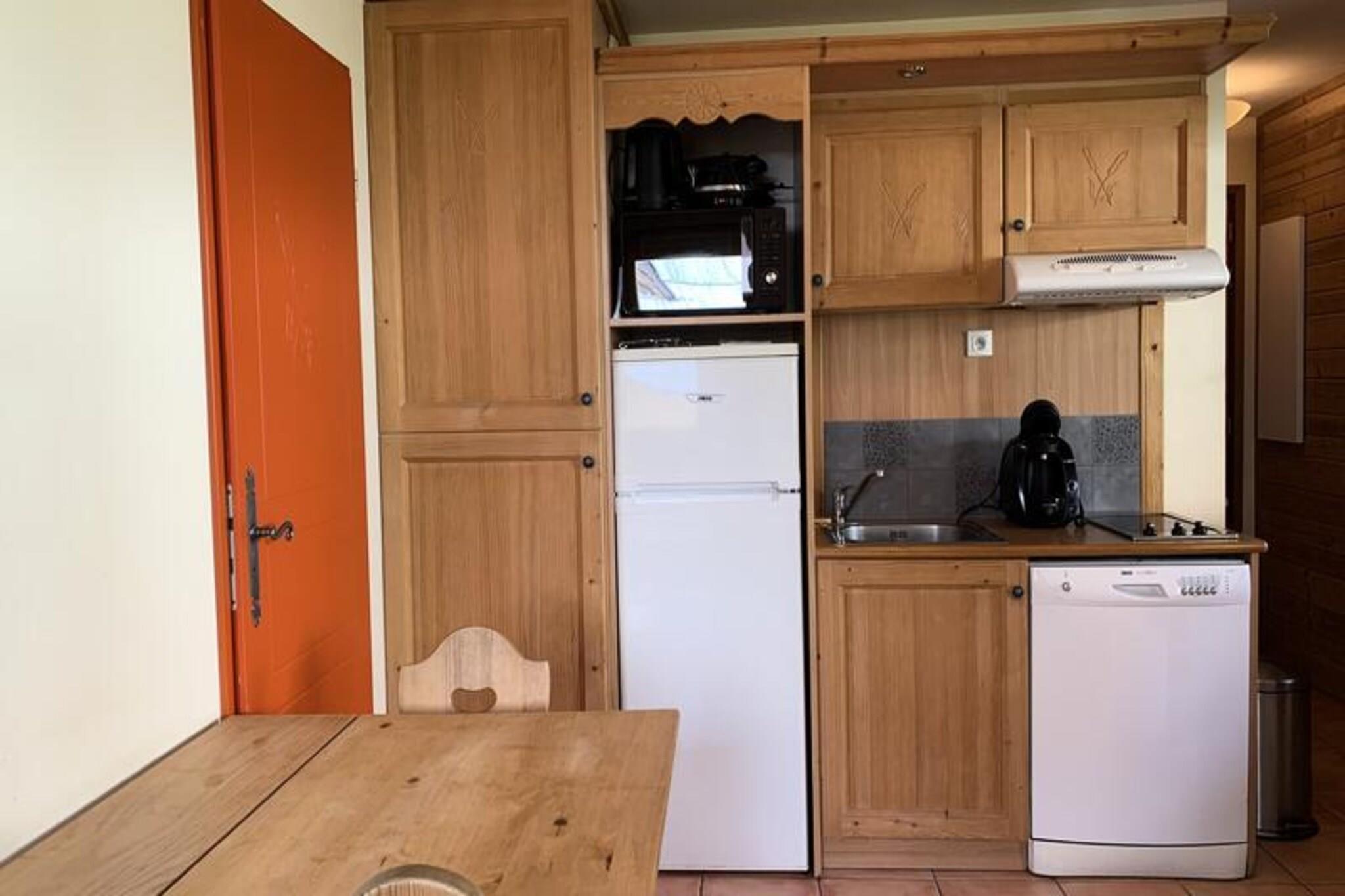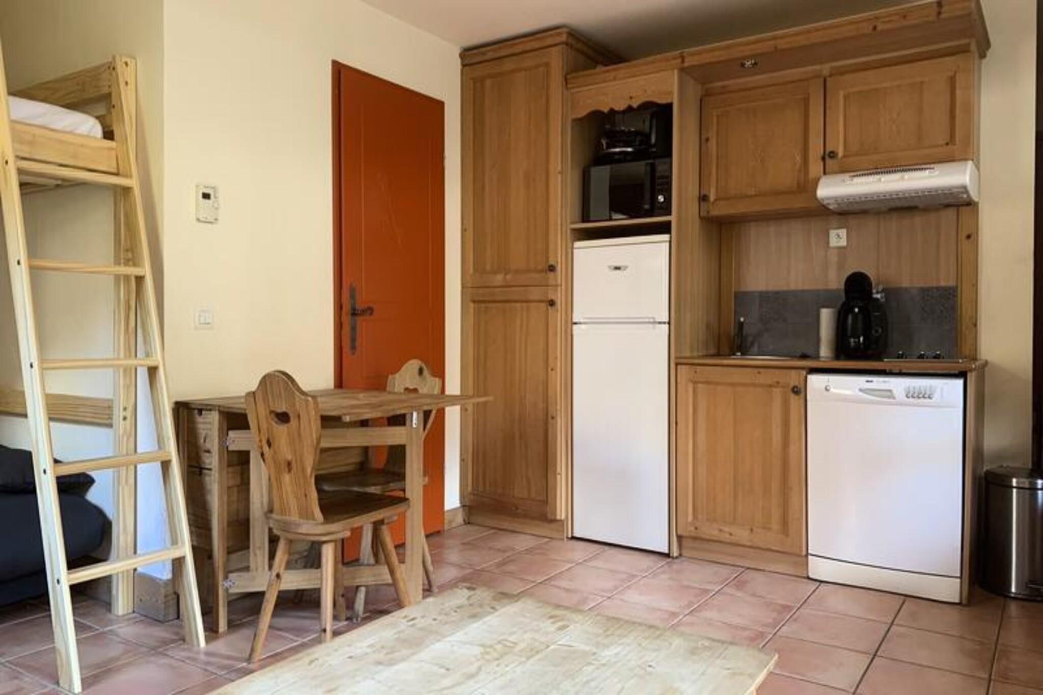 This charming studio apartment, located on the 1st floor, offers a comfortable space for 2 to 4 guests. With a west-facing exposure and a private balcony, guests can enjoy beautiful views of the surrounding mountains and nature. The living area features a pull-out sofa bed and a mezzanine bed, providing ample sleeping arrangements, as well as an additional sofa bed for extra comfort. The studio is equipped with a flat-screen HD TV and a dining area, ensuring a cozy space for relaxation and meals. This property is non-smoking and pet-free, ensuring a clean and comfortable environment for all guests. The studio's prime location makes it an excellent base for exploring the beauty of the mountains. Situated in a peaceful area, guests can enjoy the quiet surroundings, perfect for outdoor activities such as hiking, skiing, and nature walks. A short distance away, guests will find a range of local cafes, markets, and shops, offering delicious food and beverages as well as essential services. Whether you’re looking to relax or explore, the nearby attractions provide something for everyone. The studio is fully equipped for a convenient and comfortable stay. The kitchen area includes a ceramic hob, a combi oven/microwave, a fridge/freezer, a dishwasher, and a coffee maker, perfect for preparing meals. The bathroom features a bathtub and a WC for added comfort. Additionally, an individual ski box is provided for storing your ski gear. With heating available, guests can enjoy a warm and pleasant atmosphere throughout their stay.
