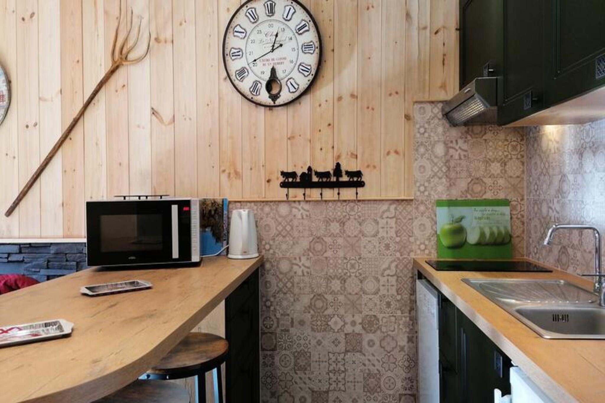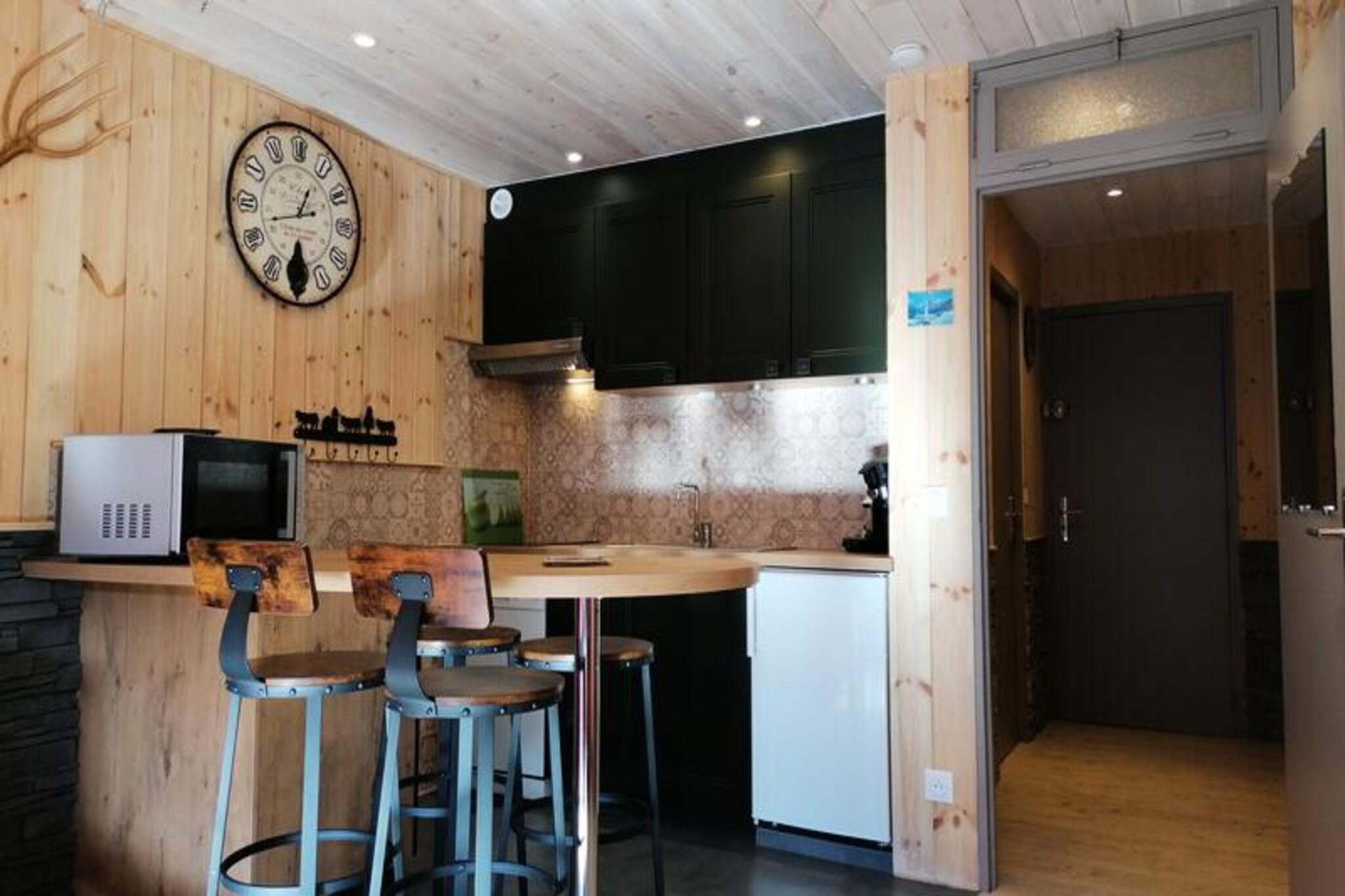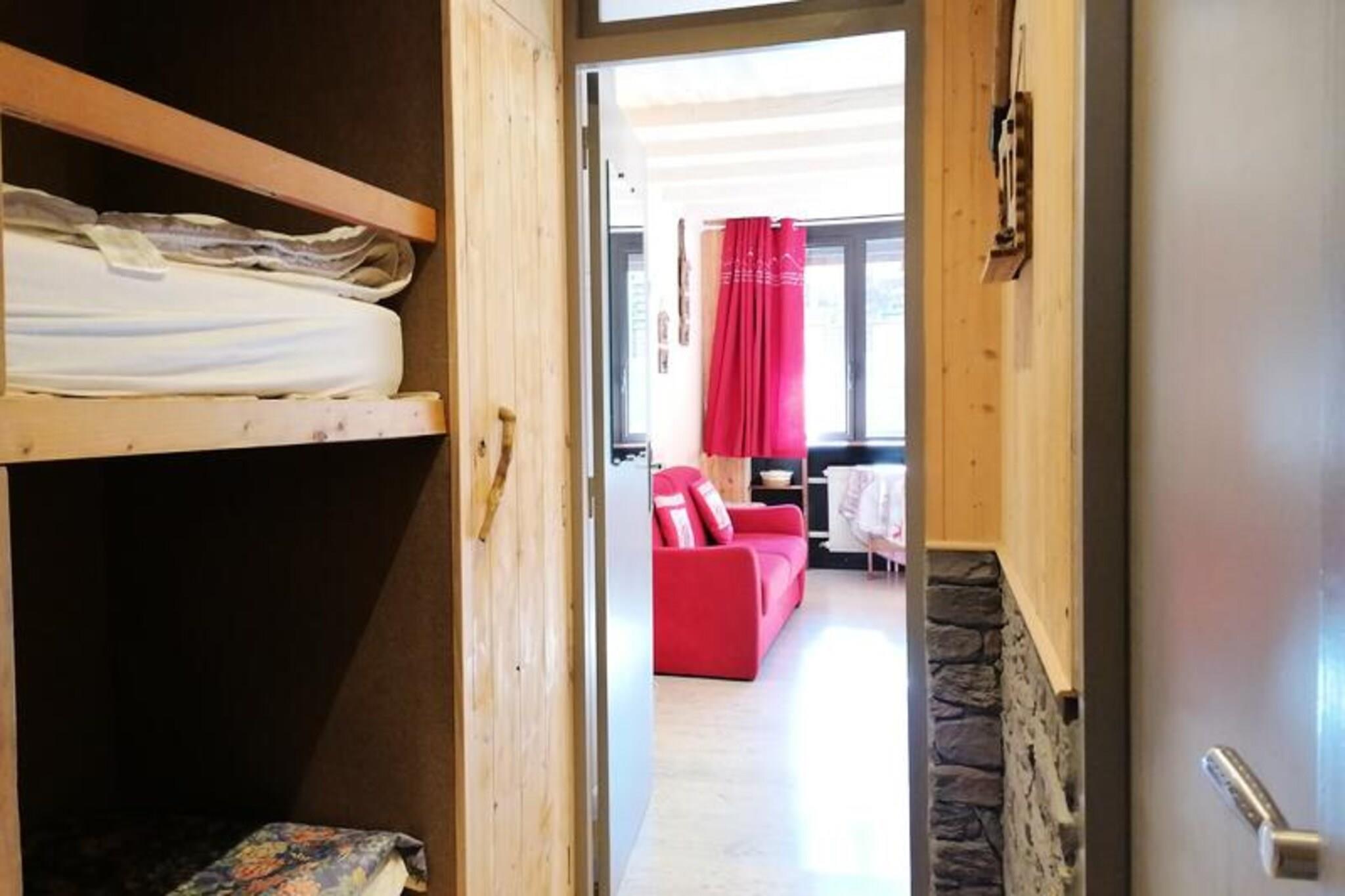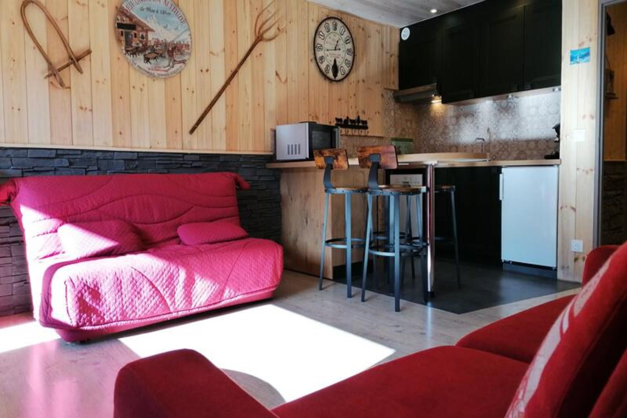 Dette rummelige og smukt indrettede studie kan rumme 4 til 5 personer. Lejligheden har et soveområde med 2 køjesenge og en stue med to 2-personers sovesofaer, der giver rigelig plads til afslapning. En sydvendt altan byder på en behagelig udsigt, mens lejligheden er røgfri og husdyr ikke er tilladt, hvilket sikrer et rent og fredeligt miljø. Gæsterne har også adgang til individuel skiopbevaring og parkering i nærheden. Perfekt beliggende kun 20 meter fra pisterne og 80 meter fra indkøbscenteret, er denne studio ideel for dem, der ønsker nem adgang til både skiløb og lokale faciliteter. Det nærliggende område byder på et udvalg af caféer, butikker og restauranter, så gæsterne kan udforske den lokale kultur og nyde måltider efter en dag på pisterne. Det er en fantastisk beliggenhed for både vintersportsentusiaster og dem, der ønsker at slappe af i pulserende omgivelser. Lejligheden indeholder et fuldt udstyret køkken med køleskab, 2 elektriske kogeplader, en kombiovn-mikroovn, en emhætte, en kedel, en opvaskemaskine og en Senseo kaffemaskine, hvilket gør det nemt at tilberede måltider under dit ophold. Det renoverede badeværelse har badekar, toilet og vaskemaskine for ekstra bekvemmelighed. Med parketgulve overalt og fremragende adgang til lokale faciliteter sikrer denne lejlighed et behageligt og veludstyret ophold.