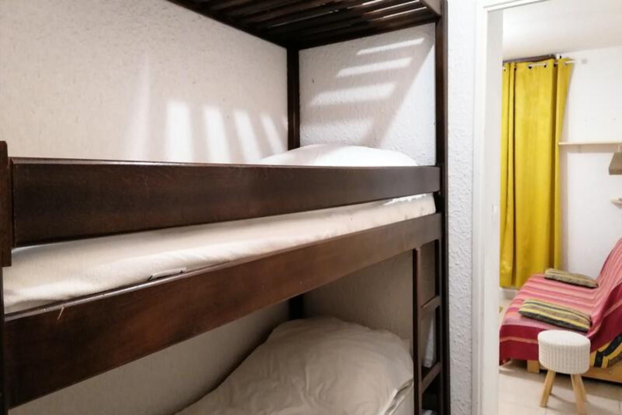 This cozy studio apartment, located on the 2nd floor with elevator access, is perfect for up to 4 guests. The property features a mountain corner entrance with two bunk beds and a living room with a 2-seater sofa bed, HD TV, and DVD player, providing ample space for relaxation. The apartment is non-smoking and offers a sunny, south-east facing balcony with beautiful mountain views. The studio is not pet-friendly, ensuring a clean and quiet environment for all guests. Conveniently situated just 30 meters from the Molanes chairlift, this studio provides direct access to skiing and snowboarding activities. The main station of the Molanès gondola is easily accessible by stairs, making it an ideal location for winter sports enthusiasts. Nearby, you'll find a selection of cafes and shops where you can enjoy a warm drink or browse for souvenirs. The area is perfect for those looking to explore the natural beauty of the mountains or enjoy the lively atmosphere of a ski resort. The studio is well-equipped for a comfortable stay, featuring a kitchen area with a fridge/freezer, a combination of gas and electric burners, an oven, and a hood. The shower room has been recently renovated and includes a cabin shower, WC, and a hairdryer. Additionally, a ski box is provided to store your gear. The apartment is fitted with a tiled floor and heating for a warm, inviting atmosphere throughout your stay.