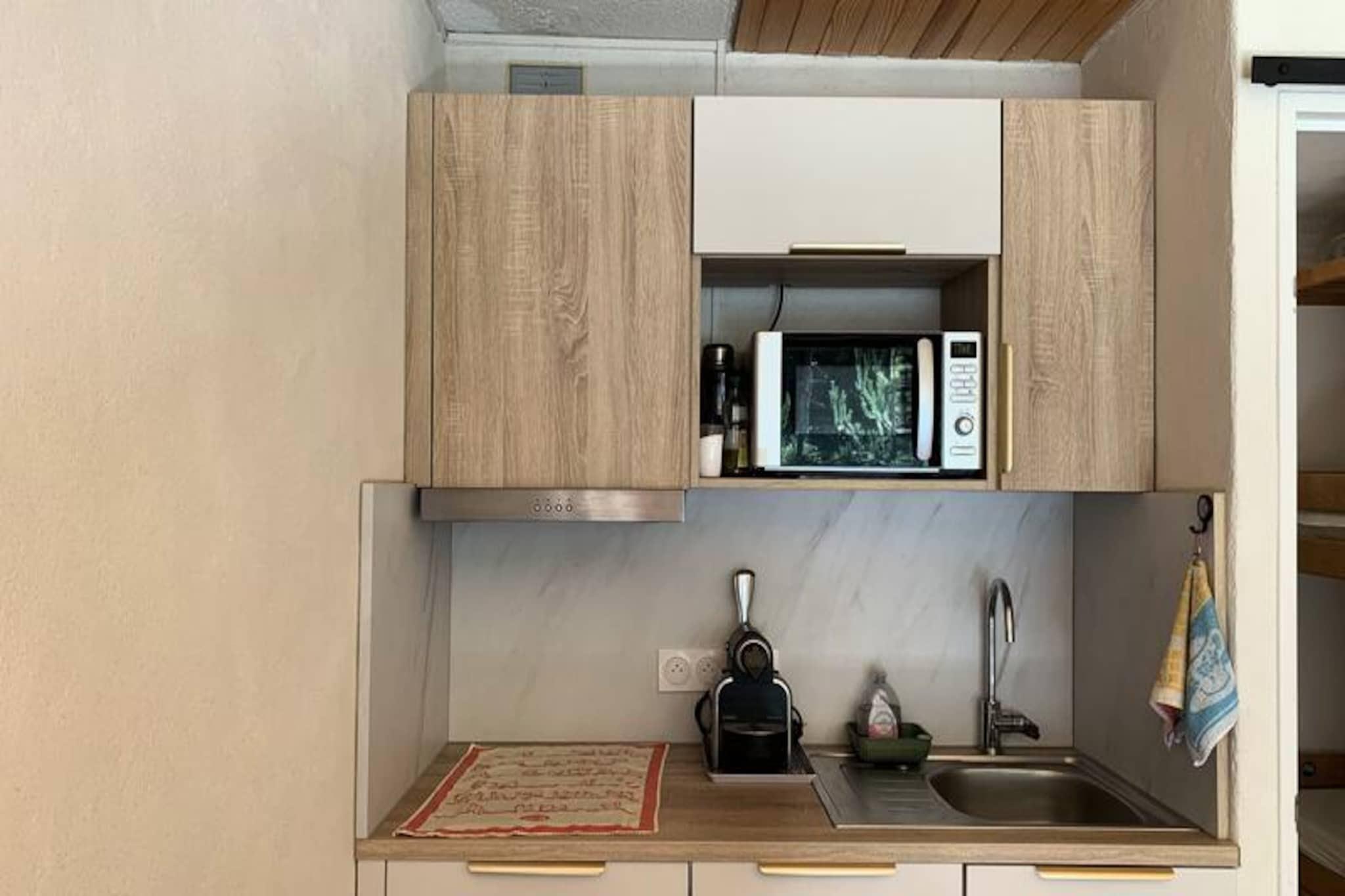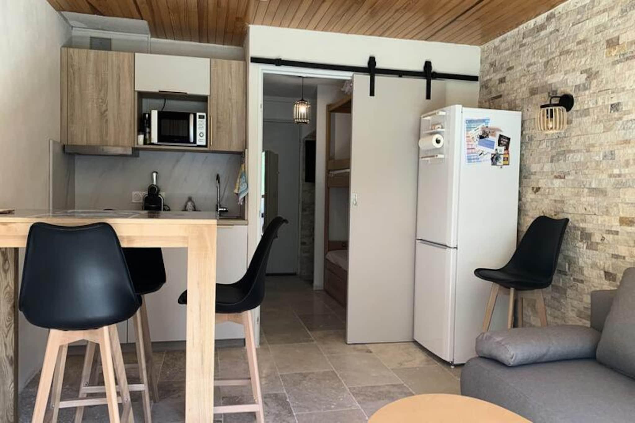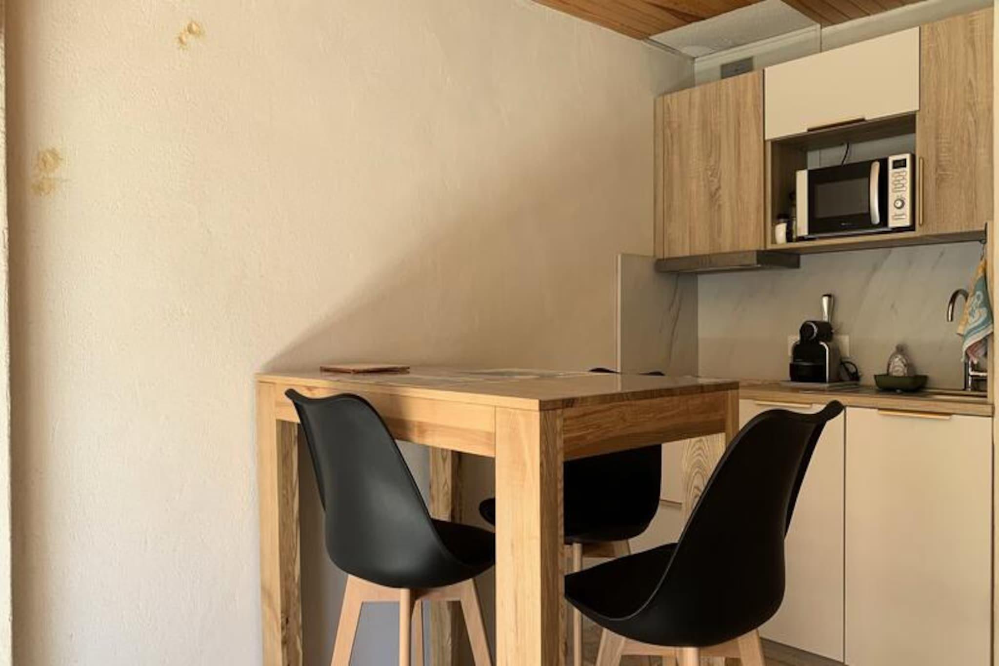 Beliggende højt i det fredfyldte Pra-Loup 1500 tilbyder denne smukt renoverede studiolejlighed et roligt tilflugtssted med betagende udsigt over den omkringliggende skov og de majestætiske bjerge. Forestil dig at nippe til din morgenkaffe på den sydvestvendte balkon, mens solen bader landskabet i gyldent lys, mens den friske alpine luft forfrisker dine sanser. Dette charmerende gemmested er perfekt til par eller små familier, der søger en hyggelig, men stilfuld base for deres bjergeventyr. Indenfor er studiolejligheden omhyggeligt designet til at maksimere komfort og funktionalitet. Sovelkoven har to enkeltsenge, ideel til børn eller venner, mens stuen kan prale af en komfortabel sovesofa, en spiseplads og adgang til balkonen. Moderne faciliteter inkluderer et fuldt udstyret tekøkken med køleskab/fryser, keramisk kogeplade, opvaskemaskine, mikrobølgeovn og endda en raclettegrill til autentiske alpine spiseoplevelser. Badeværelset, komplet med badekar og separat toilet, gør dit ophold mere bekvemt. Elektriske skodder og smagfuld indretning forbedrer den overordnede atmosfære og skaber en varm og indbydende atmosfære. Denne ejendom, der ligger kun 80 meter fra Molanes-stoleliften, tilbyder uovertruffen adgang til pisterne, hvilket gør den til en drømmedestination for skientusiaster. Om sommeren forvandles området til et paradis for vandrere og naturelskere med stier, der snor sig gennem frodige skove og enge. I nærheden finder du charmerende alpelandsbyer, lokale markeder og traditionelle restauranter, der serverer lækre regionale specialiteter. Uanset om du er her for at slentre gennem pudrede pister eller udforske de franske alpers skønhed, lover denne studiolejlighed uforglemmelige øjeblikke og en sand flugt ud i naturen.