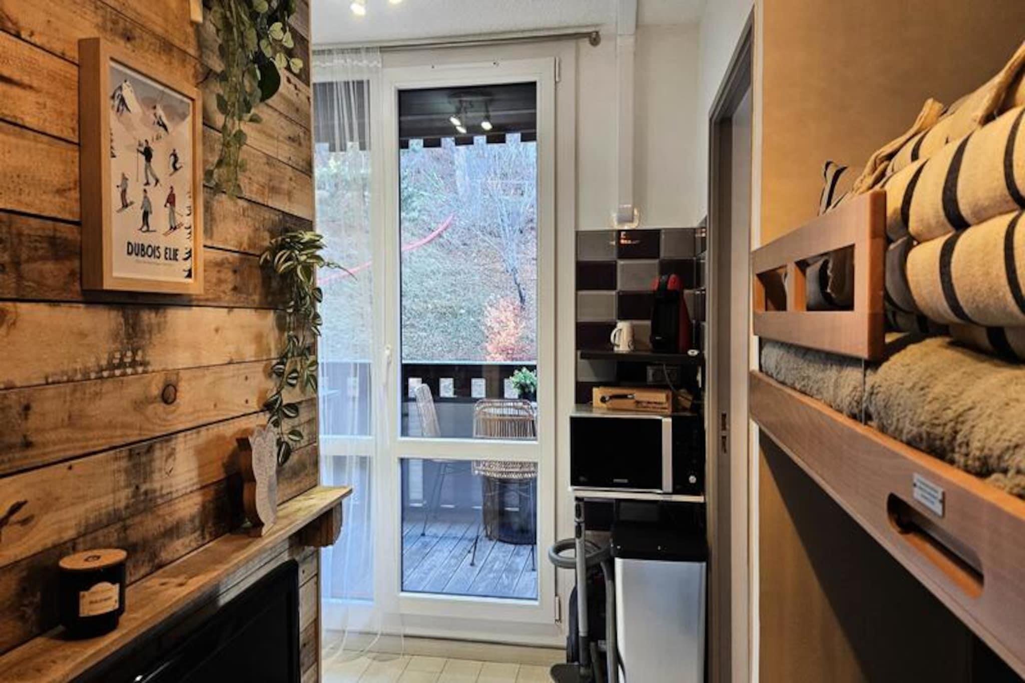 Omgivet af de franske alpers fredfyldte skønhed tilbyder dette charmerende studie i Pra-Loup 1500 et idyllisk tilflugtssted for par eller små grupper, der søger en bjergferie. Beliggende kun 200 meter fra Molanes-stoleliften, giver det problemfri adgang til pisterne, hvilket gør det til en perfekt base for skientusiaster. Den vestvendte balkon inviterer dig til at slappe af med en fantastisk udsigt over skoven og den friske alpeluft, hvilket skaber en rolig atmosfære for din ferie. Indenfor er studiet blevet omhyggeligt renoveret for at maksimere komfort og funktionalitet. Indgangen har hyggelige trækøjesenge med dyner og puder, mens opholdsstuen kan prale af en blød sovesofa med en Blutex-madras af høj kvalitet, der sikrer afslappende nætter. Et storskærms-tv og Wi-Fi-forbindelse tilføjer moderne bekvemmeligheder, og tekøkkenet er fuldt udstyret med køleskab, induktionskogeplader, mikrobølgeovn, Dolce Gusto-kaffemaskine, elkedel og endda en raclette og pierrade-grill til autentiske alpine spiseoplevelser. Badeværelset har bruser og toilet, hvilket fuldender det veludstyrede rum. Beliggenheden er ideel til at udforske regionen, med en shuttlebusstoppested kun 50 meter væk, hvilket giver nem adgang til Molanes-svævebanen og nærliggende attraktioner. Uanset om du er på pisterne om vinteren eller nyder naturskønne vandreture om sommeren, placerer denne studiolejlighed dig i hjertet af begivenhederne. Den store balkon, komplet med en stegeplade, er perfekt til afslappende aftener efter en dag med eventyr. Med sin blanding af komfort, bekvemmelighed og betagende omgivelser er denne ikke-ryger, kæledyrsfri lejlighed et dejligt valg til din alpine ferie. Lad charmen ved Pra-Loup 1500 og de franske alpers tiltrækningskraft skabe minder, du vil værdsætte for evigt.