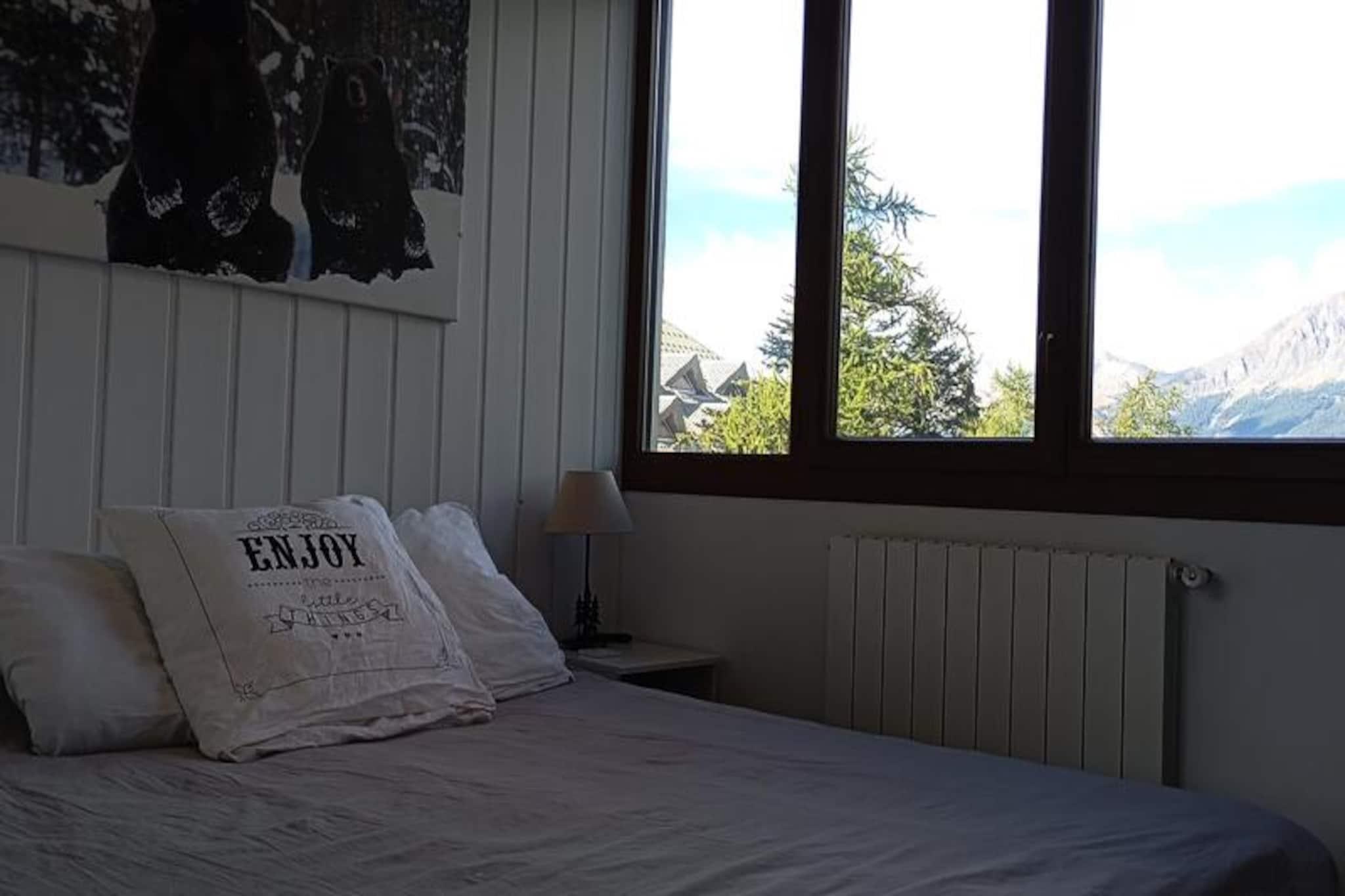 Højt over det fredfyldte Pra-Loup 1600 tilbyder denne smukt renoverede lejlighed med 3 soveværelser en perfekt blanding af alpin charme og moderne komfort. Forestil dig at vågne op til panoramaudsigt over pisterne og den livlige skøjtebane, med bekvemmeligheden af ??at være kun 80 meter fra skilifterne og i hjertet af den travle shoppingarkade. Uanset om du er her for spændingen ved skiløb eller roen i bjergene, inviterer dette sydvendte tilflugtssted dig til at opleve det hele. Træd indenfor og oplev et rummeligt, lyst interiør designet til afslapning og samvær. Det åbne køkken, komplet med en central køkkenø og spiseplads, er fuldt udstyret med alt fra keramisk kogeplade til raclette- og fonduesæt, perfekt til hyggelige aftener derhjemme. Stuen har en komfortabel hjørnesofa, HD-tv og direkte adgang til balkonen, hvor du kan nyde det fantastiske alpine landskab. Med en kingsize-seng i soveværelset, en queensize-seng i det andet soveværelse og en charmerende alkove med køjesenge, kan denne lejlighed komfortabelt rumme op til seks gæster. To moderne badeværelser med bruser og en vaskemaskine bidrager til bekvemmeligheden. Beliggende i det pulserende hjerte af Pra-Loup 1600, finder du butikker, restauranter og afterski-muligheder kun få skridt væk. Det individuelle skirum sikrer problemfri opbevaring, mens elektriske skodder i hvert soveværelse giver privatliv og komfort. Uanset om du udforsker pisterne eller nyder den livlige atmosfære på feriestedet, er denne lejlighed din indgang til en uforglemmelig alpin flugt. Denne ejendom er ikke-ryger og kæledyrsfri og er ideel til familier eller grupper, der søger et stilfuldt og velbeliggende bjergtilflugtssted. Skab minder for livet i dette exceptionelle hjem væk fra hjemmet.