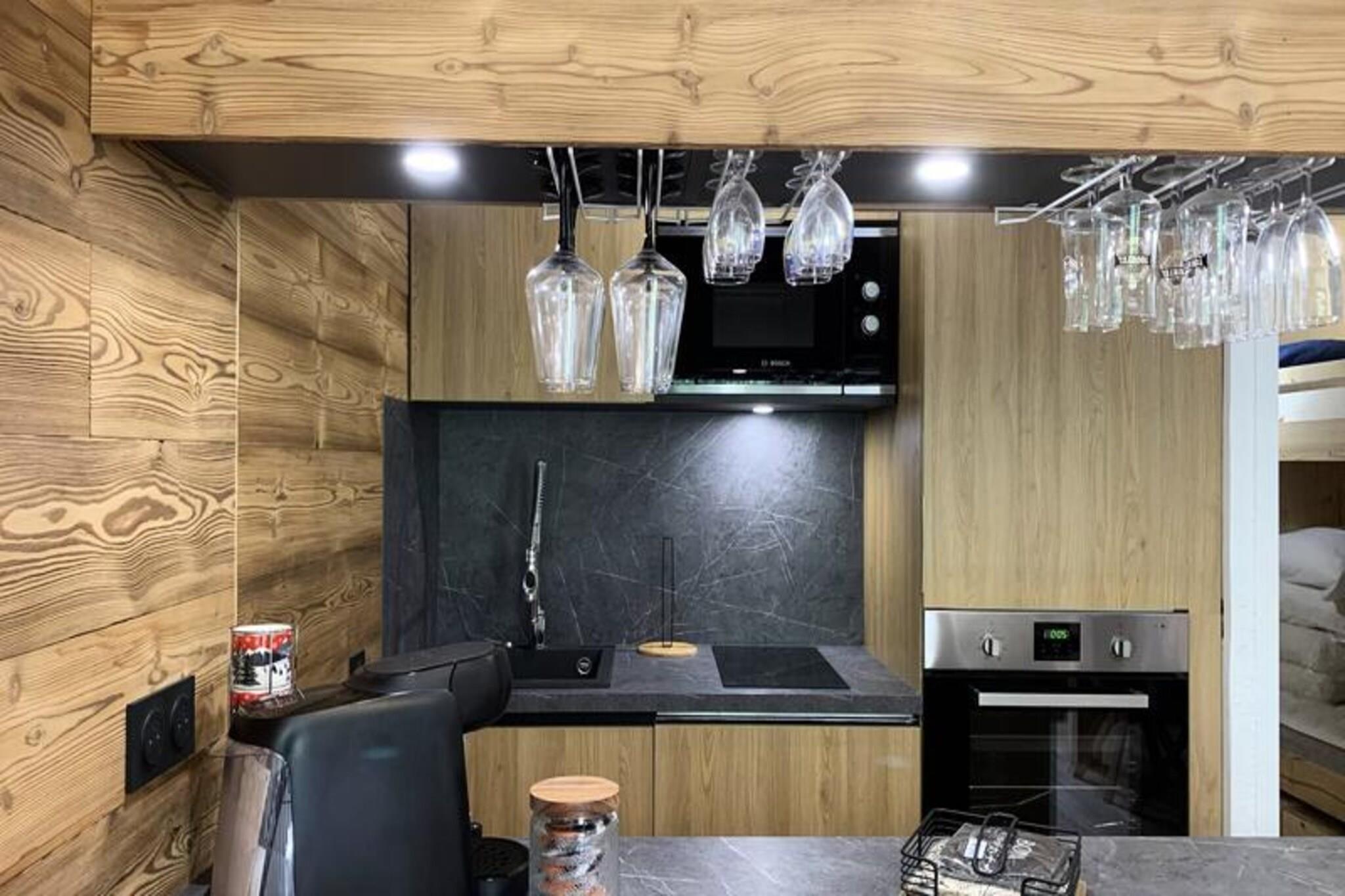 Denne charmerende studiolejlighed, beliggende på 4. etage i en bygning med elevator på skråningen, kan komfortabelt rumme op til 4 personer. Lejligheden har to køjesenge i entréen og en Rapido sovesofa i stuen. Det er ikke-ryger og kæledyr er strengt forbudt. Gæsterne kan nyde det smukke parketgulv og moderne bekvemmeligheder for et behageligt ophold i bjergene. Ideelt beliggende kun 100 meter fra et indkøbscenter tilbyder denne ejendom nem adgang til alle de vigtigste ting, herunder caféer, restauranter og markeder. Pisterne er lige uden for døren, hvilket gør den perfekt til skiløbere og udendørsentusiaster. Området byder på en fantastisk udsigt over bjergene og masser af muligheder for at nyde den friske alpeluft. Lejligheden er udstyret med et åbent køkken med keramiske kogeplader, en opvaskemaskine, køleskab/fryser, mikroovn, elektrisk ovn og en Tassimo kaffemaskine. Badeværelset har badekar og vaskemaskine, mens der også er separat toilet. For nemheds skyld har gæsterne adgang til en individuel skiboks ved indgangen til boligen, perfekt til opbevaring af skiudstyr.
