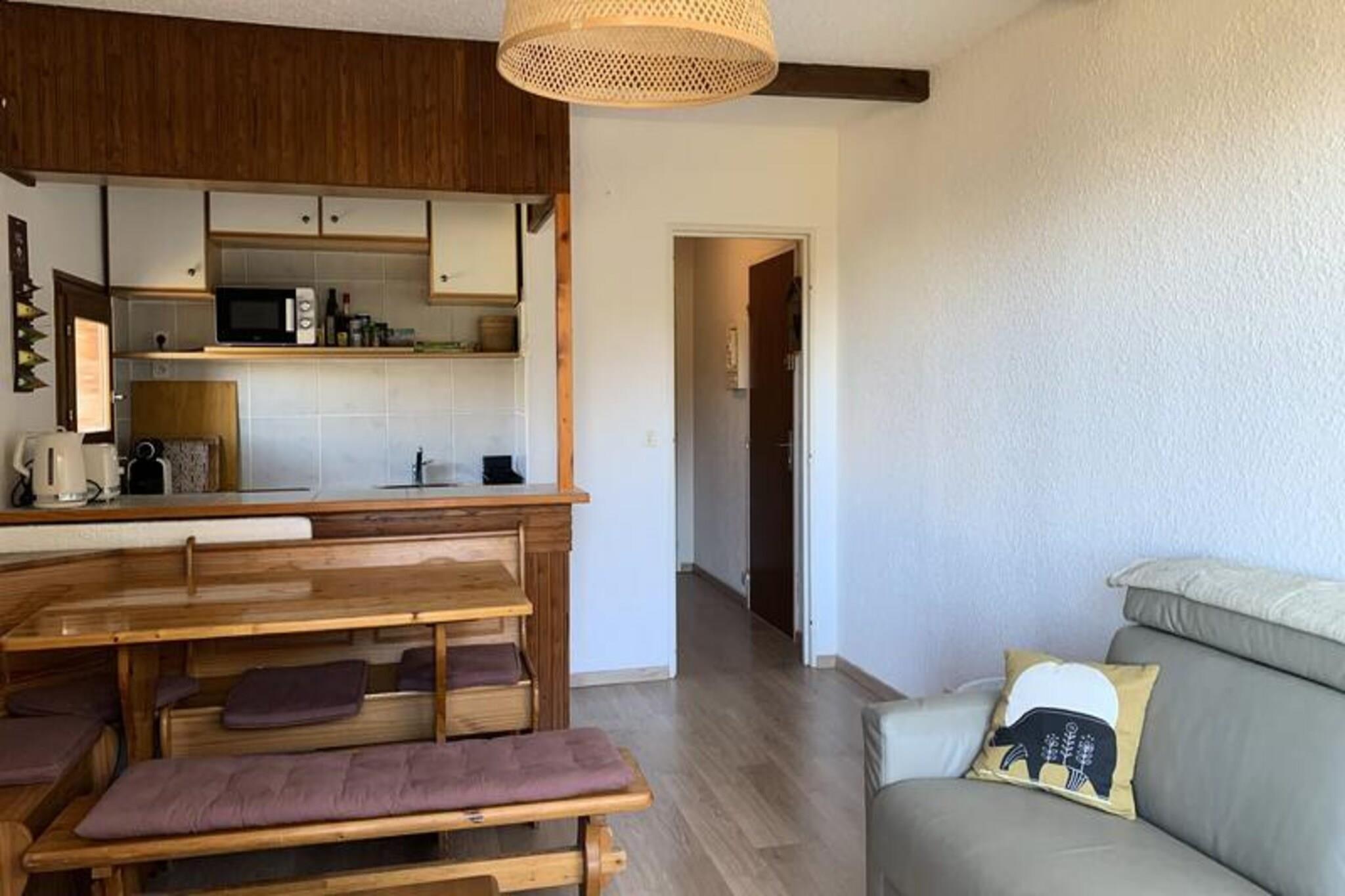 Denne hyggelige 2-v?relses lejlighed, beliggende p? 7. sal i en bygning med elevator, kan rumme op til 5 personer p? cirka 35 m². I stuen er der en 140 cm sovesofa, HD-tv og udgang til en altan med uhindret udsigt over dalen og pisterne. Sovev?relset byder p? en 140 cm dobbeltseng og en 90 cm enkelt mezzaninseng, med rigelig opbevaring. Lejligheden er strengt r?gfri og tillader ikke k?ledyr. Der kr?ves et depositum ved indtjekning. Denne lejlighed er perfekt beliggende p? pisterne, kun 100 meter fra et indk?bscenter, hvilket giver g?sterne let adgang til n?rliggende caf?er, butikker og restauranter. Beliggenheden er ideel for skientusiaster, med direkte adgang til pisterne. Det omkringliggende omr?de byder p? en spektakul?r udsigt over bjergene, hvilket g?r det til et fremragende valg for b?de vintersport og afslapning i hjertet af naturen. Lejligheden er udstyret med et ?bent k?kken med k?leskab, opvaskemaskine, mikrob?lgeovn, keramiske kogeplader, kaffemaskine, elkedel og en raclettegrill. Badev?relset har badekar, og der er separat toilet. Yderligere faciliteter inkluderer et skiskab i stueetagen til praktisk opbevaring af dit udstyr.