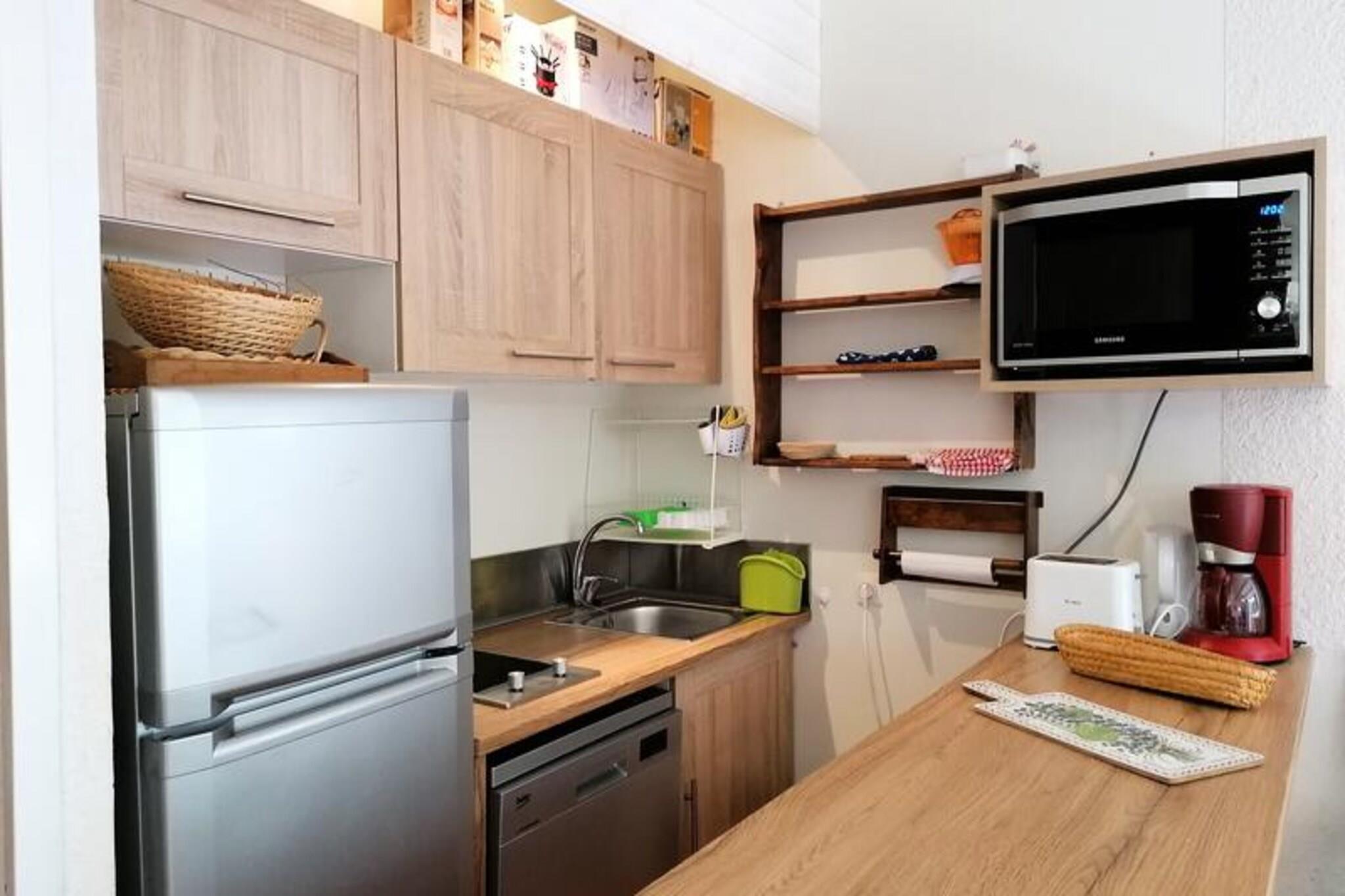 Dette charmerende studie, beliggende på 4. sal i en bygning med elevator, tilbyder et behageligt ophold for op til 4 gæster. Det har et soveværelse med 2 køjesenge, en stue med en Rapido-sovesofa, et fladskærms-tv og en spiseplads. Studiet er ikke-ryger, og kæledyr er strengt forbudt. Den sydvendte altan giver et dejligt uderum til at slappe af, mens lejlighedens hyggelige design og parketgulve skaber en varm atmosfære. Der kræves et depositum ved ankomsten, og gæsterne har adgang til en skiboks, der er placeret ved indgangen til boligen, til praktisk opbevaring. Ejendommen er ideelt beliggende i PRA-LOUP 1600, kun 100 meter fra et indkøbscenter og i umiddelbar nærhed af pisterne. Gæster kan nemt få adgang til lokale caféer, restauranter og markeder, hvilket gør det til den perfekte base for at nyde alt, hvad regionen har at tilbyde. Uanset om du står på ski, vandrer eller udforsker området, vil du finde masser af udendørs aktiviteter og lokale attraktioner inden for rækkevidde, hvilket sikrer et mindeværdigt ophold. Inde i lejligheden finder du et åbent køkkenområde udstyret med 2 keramiske kogeplader, et køleskab/fryser, en mikroovn, en opvaskemaskine, en elektrisk kaffemaskine, elkedel og endda et fonduesæt, perfekt til at tilberede hyggelige måltider. Badeværelset er velindrettet med badekar og vaskemaskine. Et separat toilet tilføjer ekstra bekvemmelighed. For ekstra komfort er en Wi-Fi-forbindelse tilgængelig for et mindre gebyr, hvilket sikrer, at du forbliver forbundet under dit ophold.
