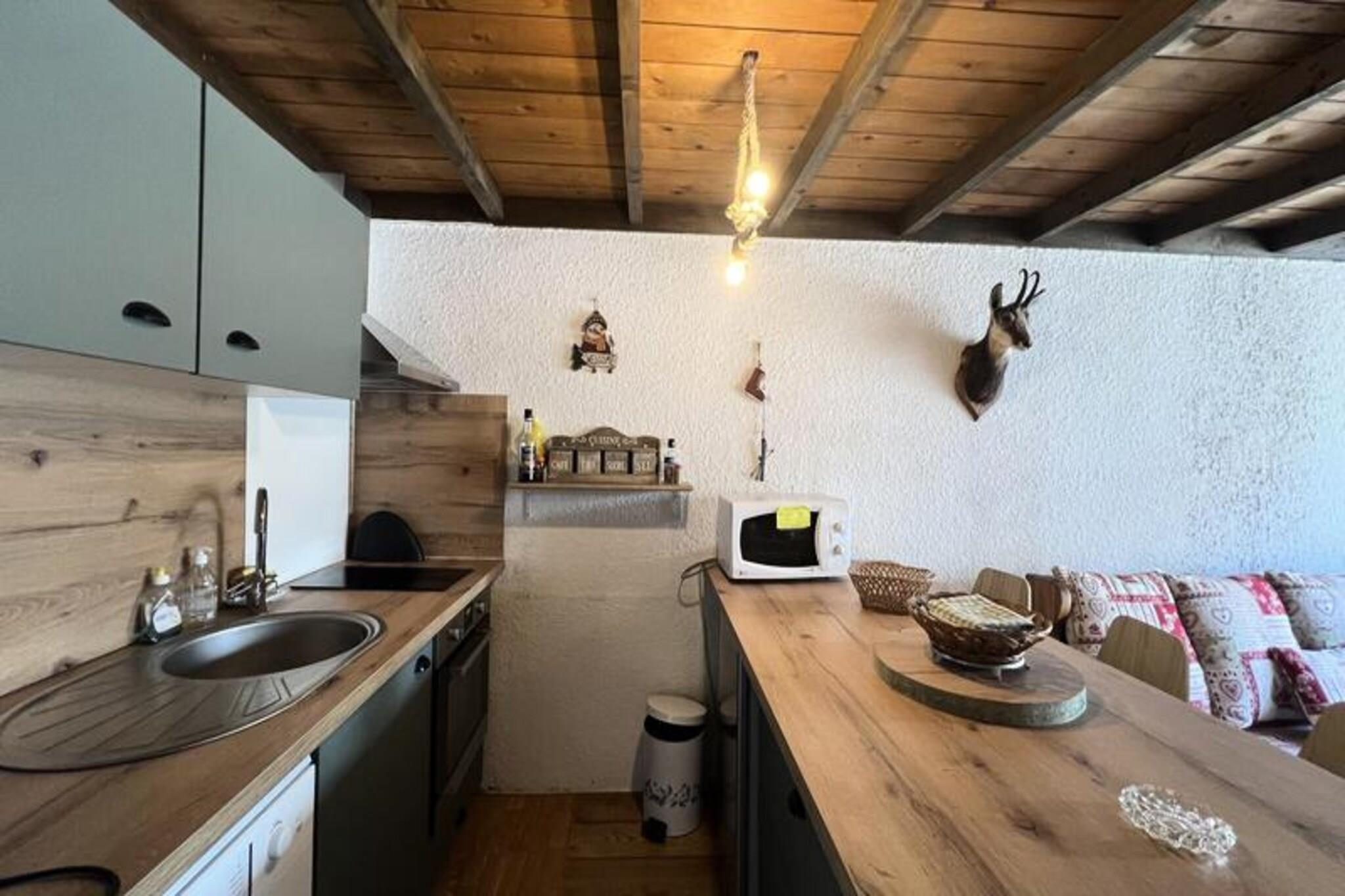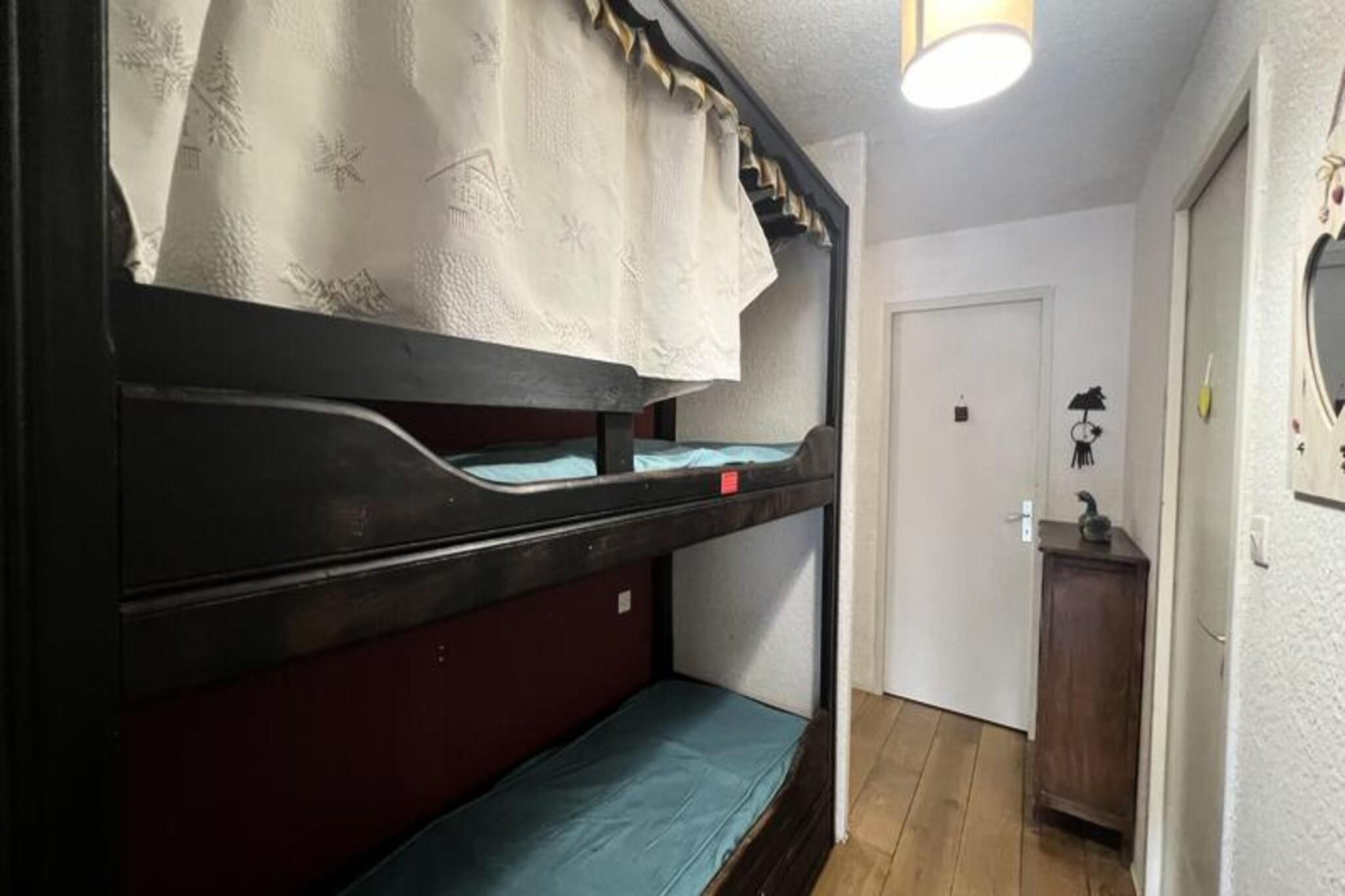Denne rummelige 3-værelses lejlighed, beliggende på 5. sal, kan rumme op til 8 personer med 2 soveværelser og ekstra soveplads på gangen. Det første soveværelse har en dobbeltseng, mens det andet byder på en dobbeltseng og 2 køjesenge. Stuen har en ikke-ombyggelig sofa og en lænestol, perfekt til at slappe af efter en dag på pisterne. Denne lejlighed er absolut ikke-ryger, og kæledyr er ikke tilladt. Der kræves et depositum på EURO460 ved indtjekning. Denne lejlighed ligger kun 150 meter fra pisterne og tilbyder nem adgang til skiløb og vinteraktiviteter. Det ligger også 50 m fra indkøbscentret, hvor gæsterne kan udforske lokale butikker, caféer og restauranter. Placeringen giver en god balance mellem bekvemmelighed og udsigt over bjergene, hvilket gør det ideelt for familier og grupper, der ønsker at nyde både udendørs eventyr og lokale faciliteter. Lejligheden er fuldt udstyret med køkken med køleskab, ovn, mikroovn, opvaskemaskine og Nespresso-kaffemaskine. To badeværelser giver ekstra komfort, hvoraf det ene har bruser, håndvask og vaskemaskine. Et ekstra uafhængigt toilet er også tilgængeligt. En skiboks i en nærliggende bygning sikrer, at gæsterne har rigelig plads til opbevaring af skiudstyr.
