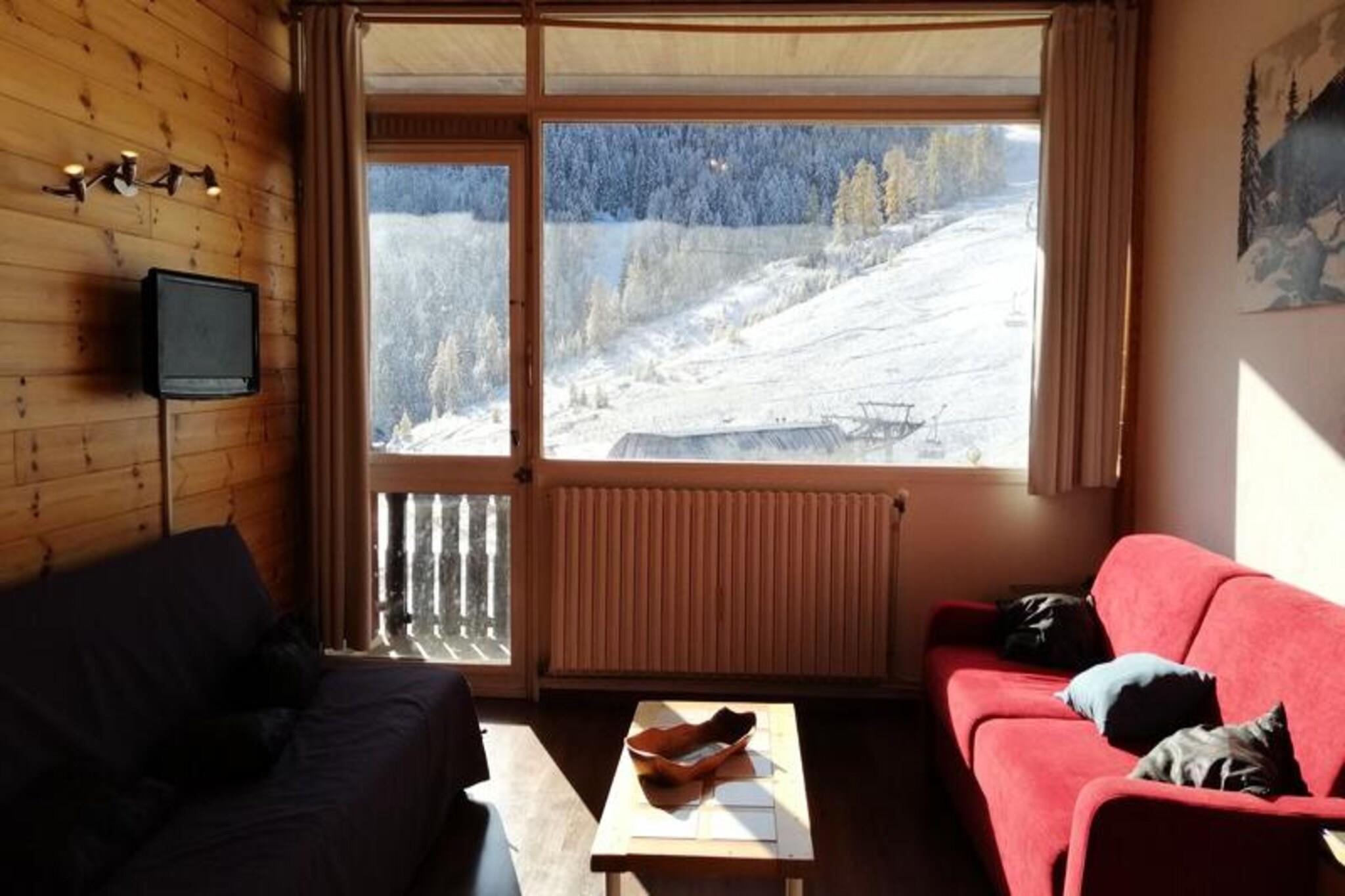Denne charmerende 42m² 2-værelses lejlighed kan rumme op til 6 personer og er perfekt til både vinter- og sommerophold. Beliggende på 3. sal i en bygning direkte på pisterne byder lejligheden på et hyggeligt, renoveret interiør med en sydvendt altan med udsigt over pisterne og Pain de Sucre. Opholdsområdet omfatter en 2-personers sovesofa, et HD-tv, en spiseplads og adgang til balkonen. En trægang fører til soveværelset med to enkeltsenge, der danner en stor dobbeltseng og rigelig opbevaringsplads. Lejligheden er ideelt beliggende til udendørs aktiviteter, kun 70 meter fra indkøbscenteret. Om vinteren er det placeret lige foran skiskolens mødested, hvilket giver nem adgang til pisterne. Om sommeren kan du nyde direkte adgang til vandrestier. Området byder også på forskellige lokale caféer, butikker og restauranter inden for gåafstand. Det fuldt udstyrede køkken indeholder køleskab/fryser, induktionskomfur, kombineret mikrobølgeovn, opvaskemaskine, elektrisk kaffemaskine og Tassimo-kaffemaskine, så du nemt kan tilberede måltider. Badeværelset har en brusekabine, og der er et separat toilet for ekstra bekvemmelighed. Skiopbevaring er tilgængelig i stueetagen, overfor trappe C, for nem adgang til dit udstyr.
