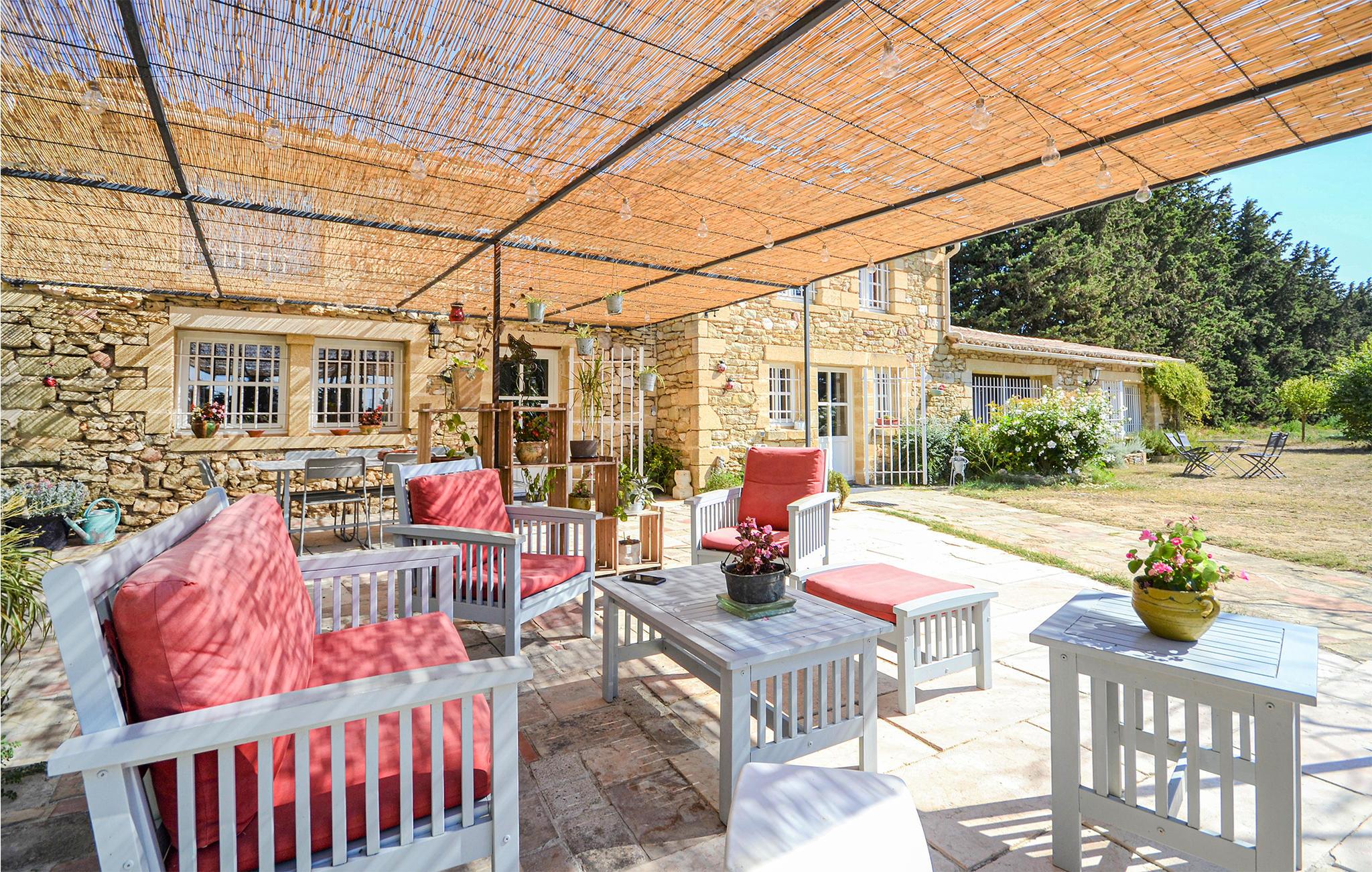 Dette skønne landhus af sten, ligger på en stor grund i skønne omgivelser i Provence. Den store grund er meget ugenert og i haven ligger poolen, som er med til at sikre en vellykket ferie. I huset er der hyggeligt indrettede rum, hvis charme får jer til at føle jer helt hjemme. I bor I udkanten af landsbyen Saint-Quentin-la-Poterie og kun godt fire km fra den unikke middelalderby Uzès. Navnet på turistbyen giver jer en ide om hvad det handler om: I Saint-Quentin-la-Poterie er der mange pottemagere, som I kan se arbejde og hvis potter I kan få lov at købe. Lige så interessant for store og små er den store bambushave i Anduze, ligesom Nîmes og Avignon er værd at besøge. Vi kan også anbefale en tur i kano på Gardon. Et af soveværelserne har eget bad en suite.