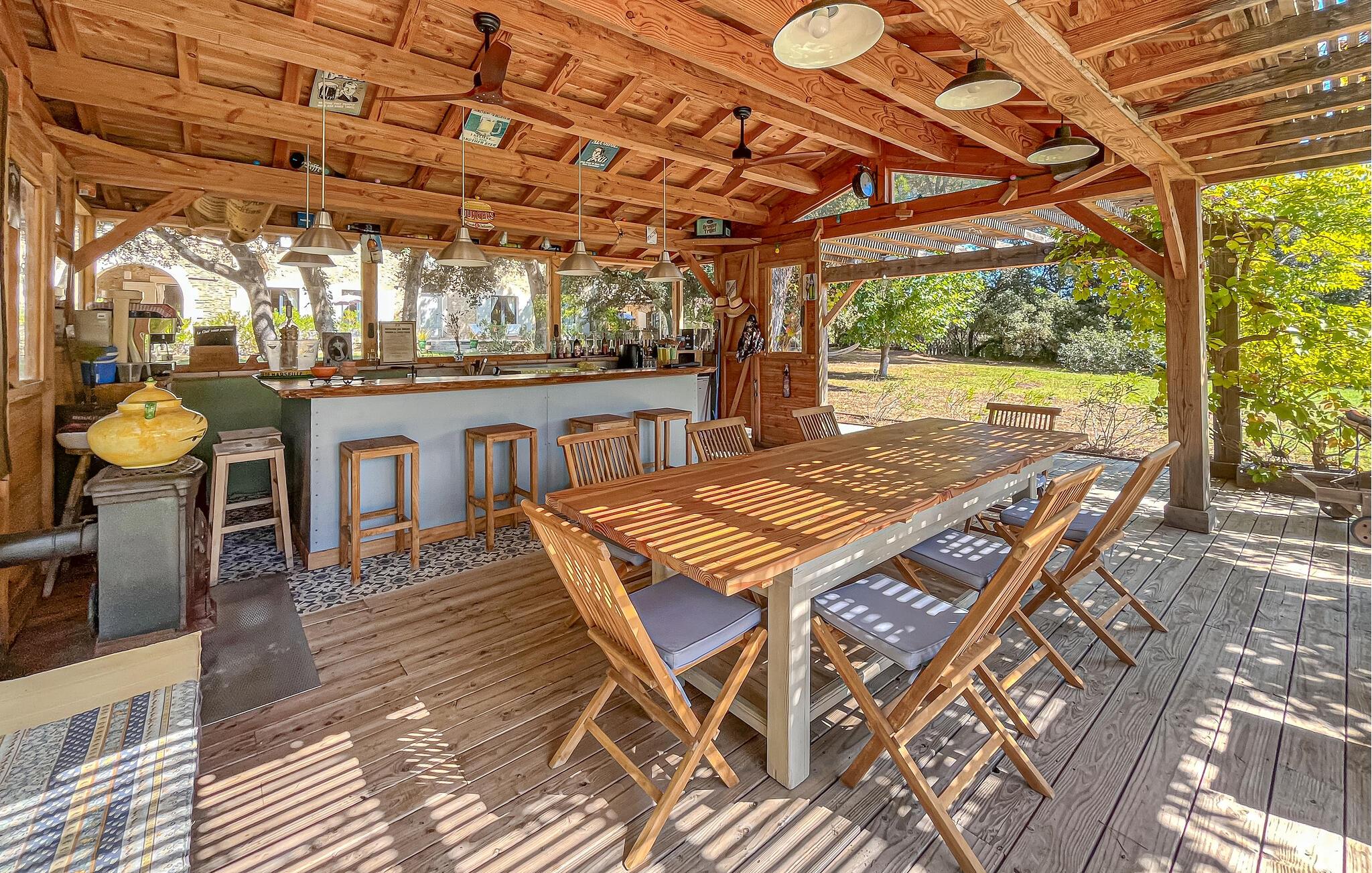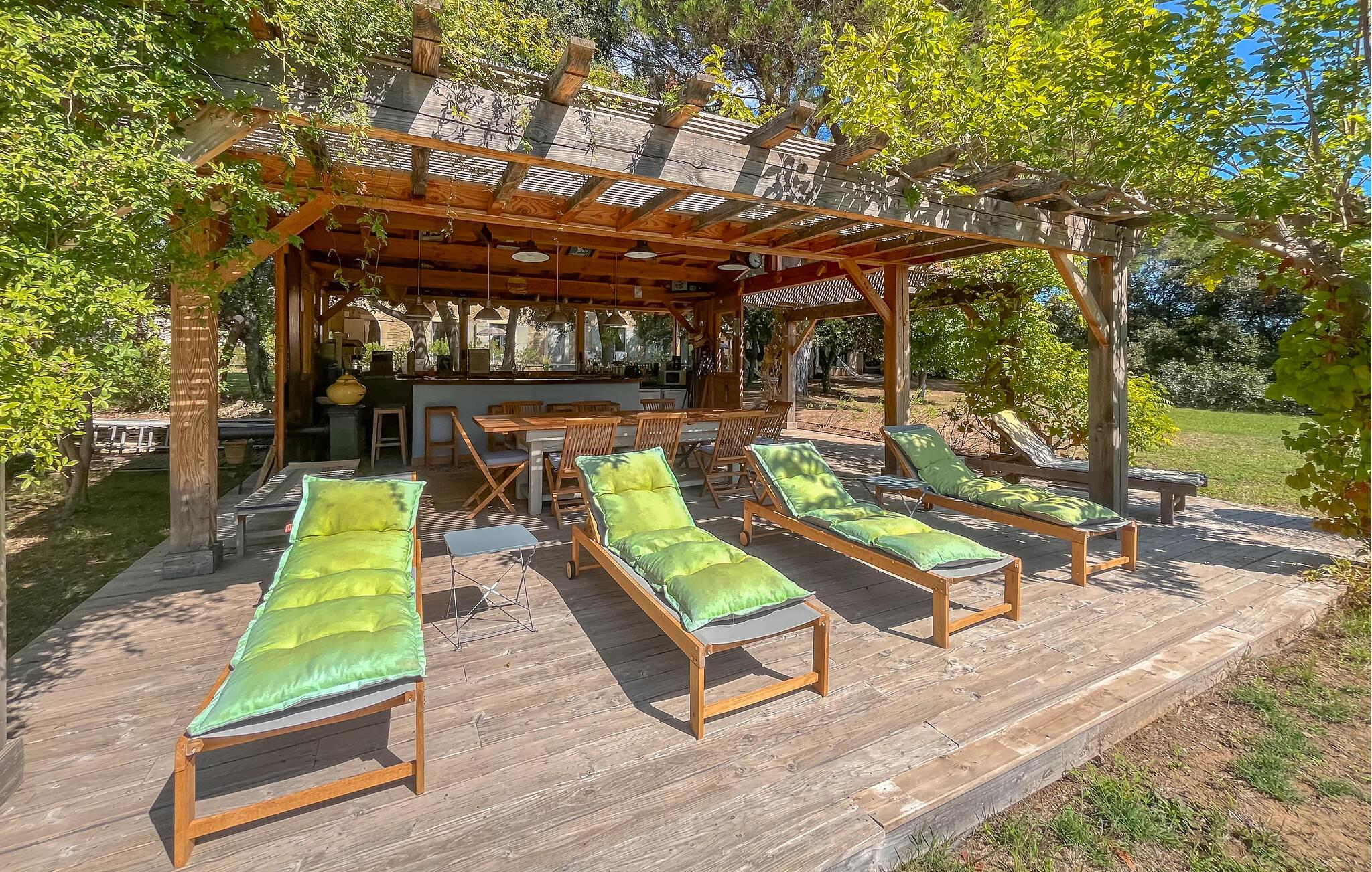 Om morgenen kan I svømme i poolen og nyde morgenmaden udendørs, mens I nyder den fredelige atmosfære, mens børnene nyder en picnic i skyggen eller legesyg udforske naturen. Brug udekøkkenet til at tilberede lækre tilbehør til grillmad og snakke over et glas vin til langt ud på natten.