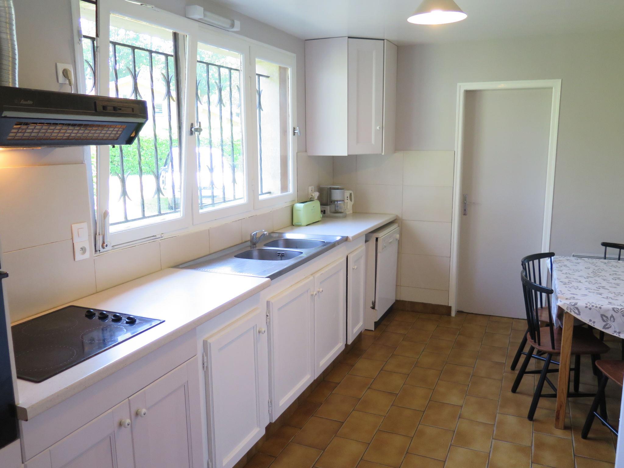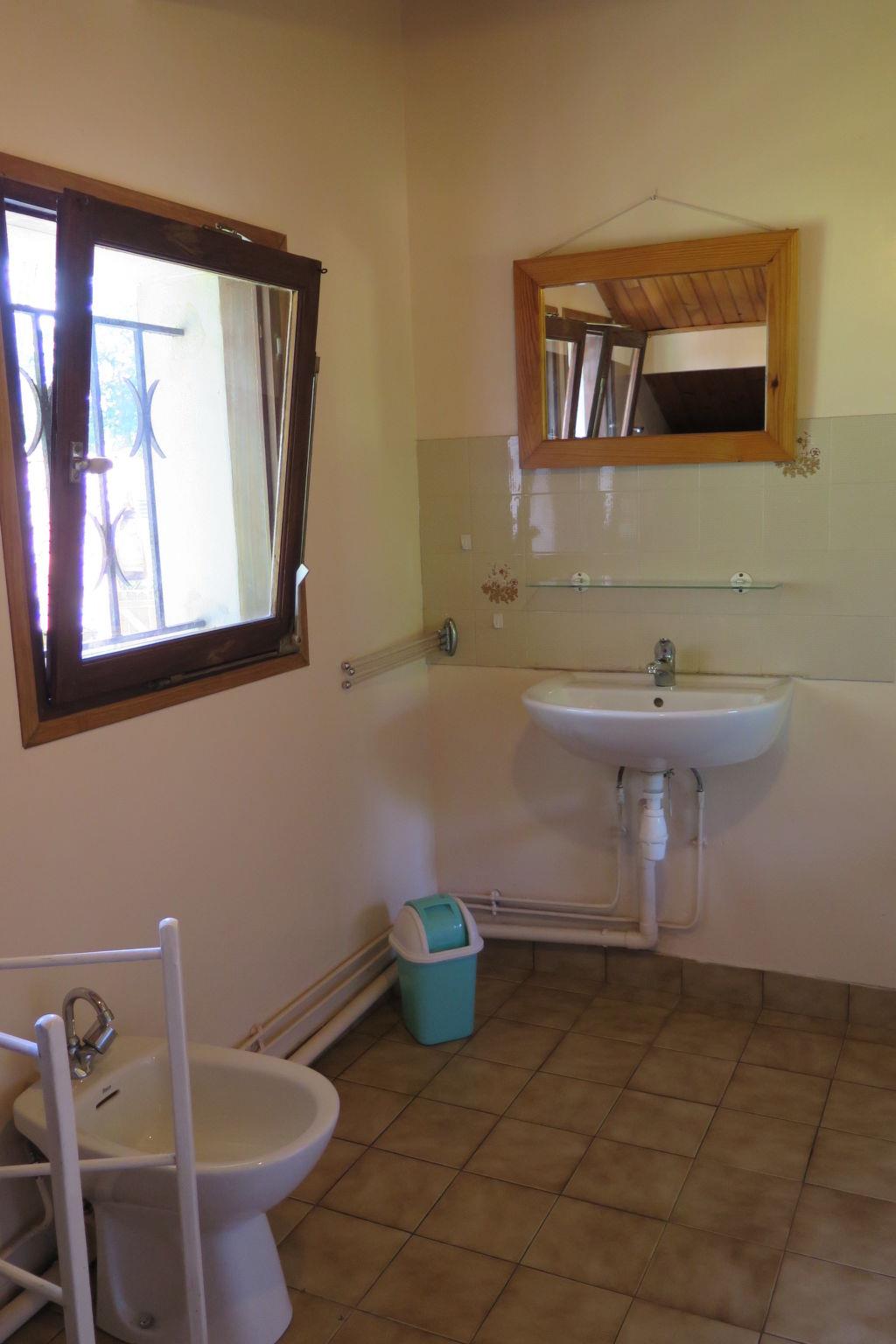 "Cherte", 6-room house 140 m2 on 2 levels. Practical and rustic furnishings: living/dining room with open-hearth fireplace, dining table and satellite TV (flat screen), hi-fi system and DVD. Exit to the terrace, to the veranda. 1 room with 2 beds (90 cm, length 190 cm). 2 rooms, each room with 1 french bed (140 cm, length 190 cm). Kitchen (oven, dishwasher, 4 ceramic glass hob hotplates, toaster, kettle, microwave, freezer, electric coffee machine) with small dining table. Bathroom, sep. WC. Upper floor: 1 room with sloping ceilings with 1 french bed (140 cm, length 190 cm). 1 room with sloping ceilings with 3 beds (90 cm, length 190 cm). Exit to the balcony. Shower/WC. Electric heating. Wooden floors. Balcony, terrace roofed. Terrace furniture, barbecue (portable), deck chairs, box-room. Facilities: washing machine, children's high chair, baby cot. Internet (WiFi, free). Please note: non-smoking house. Maximum 2 pets/ dogs allowed. Smoke alarm. Bed layout is flexible. There are more sleeping options available than the maximum number of people allowed which may, however, not be exceeded. FR3473.601.1
