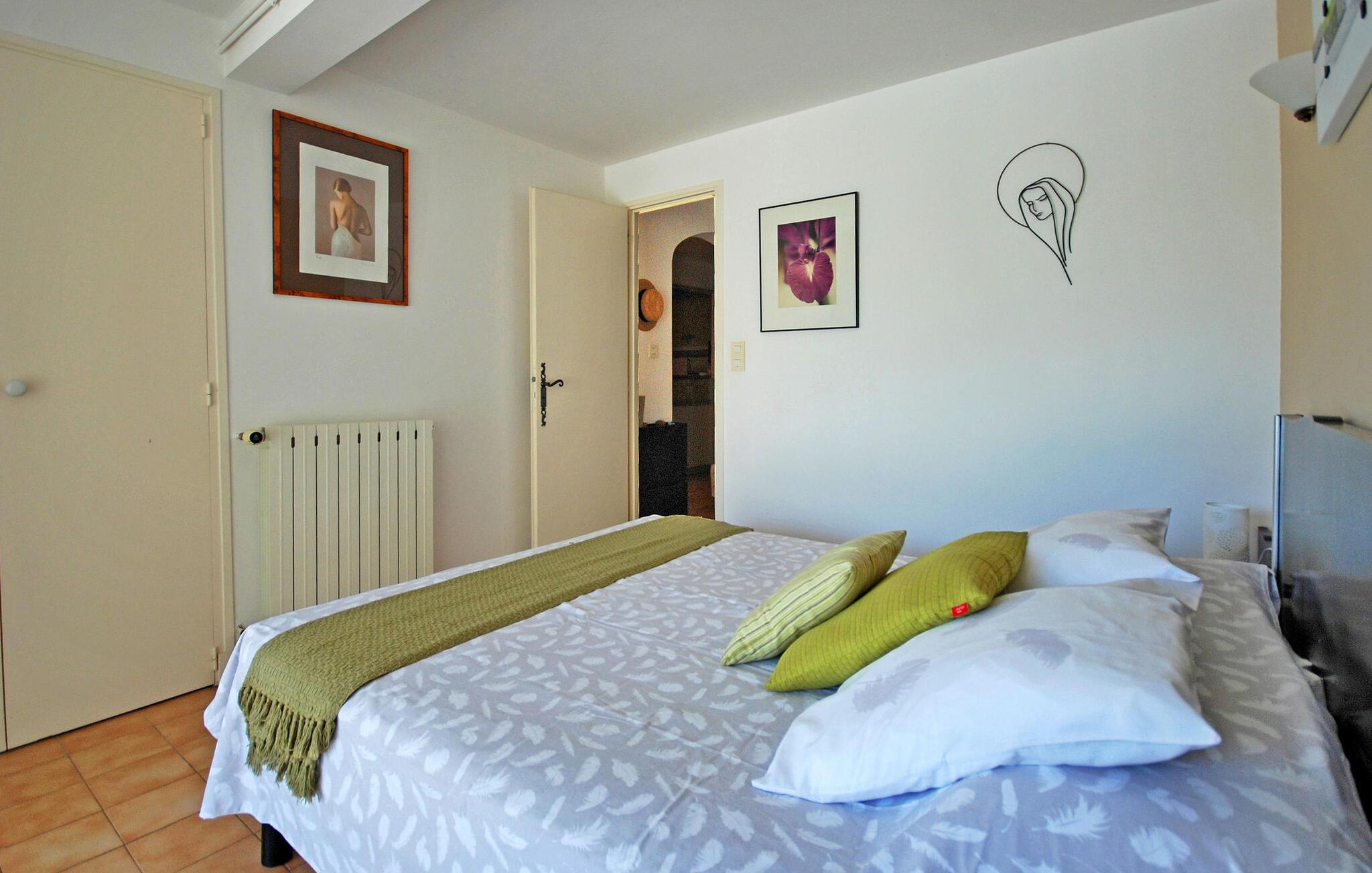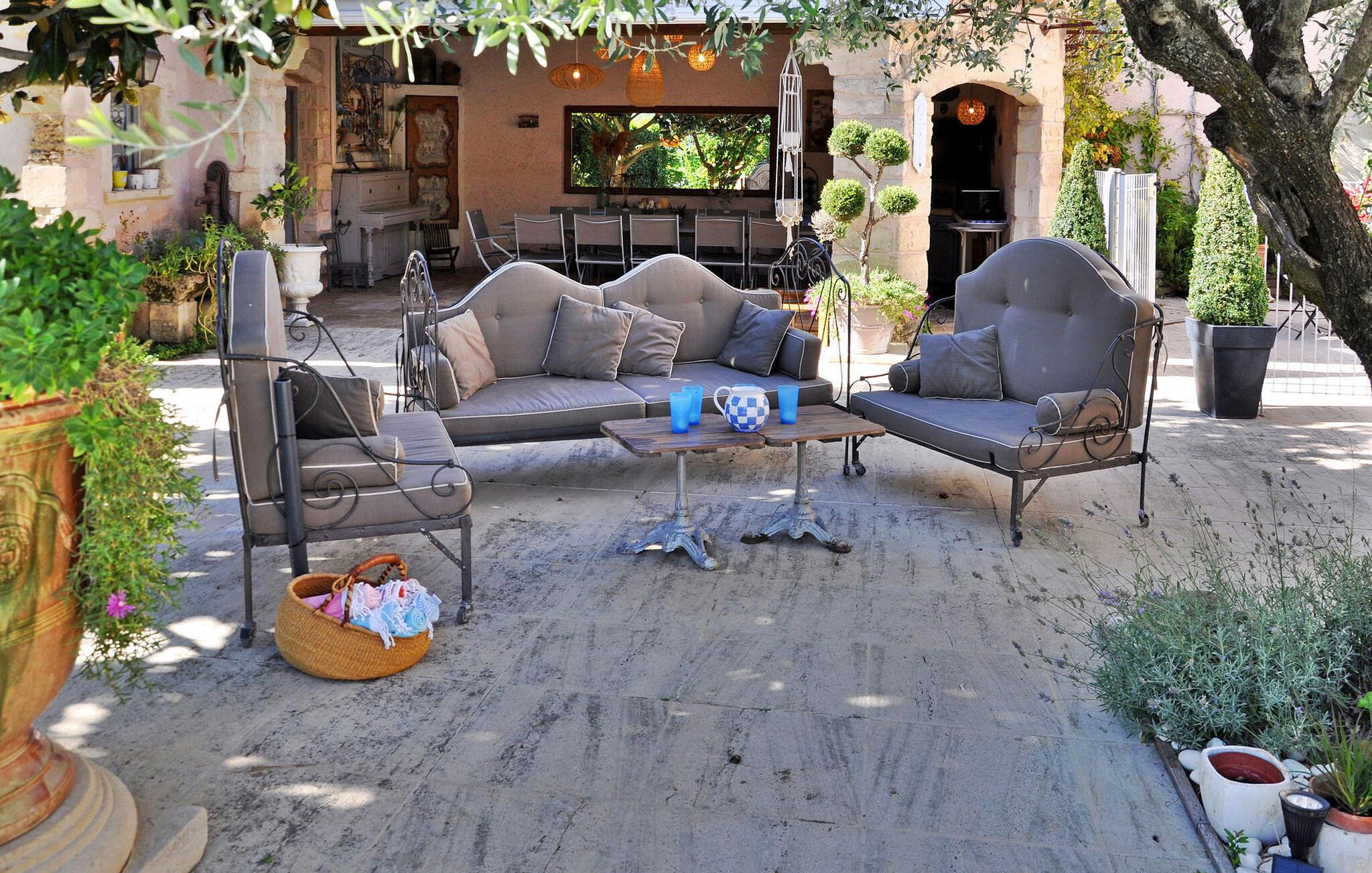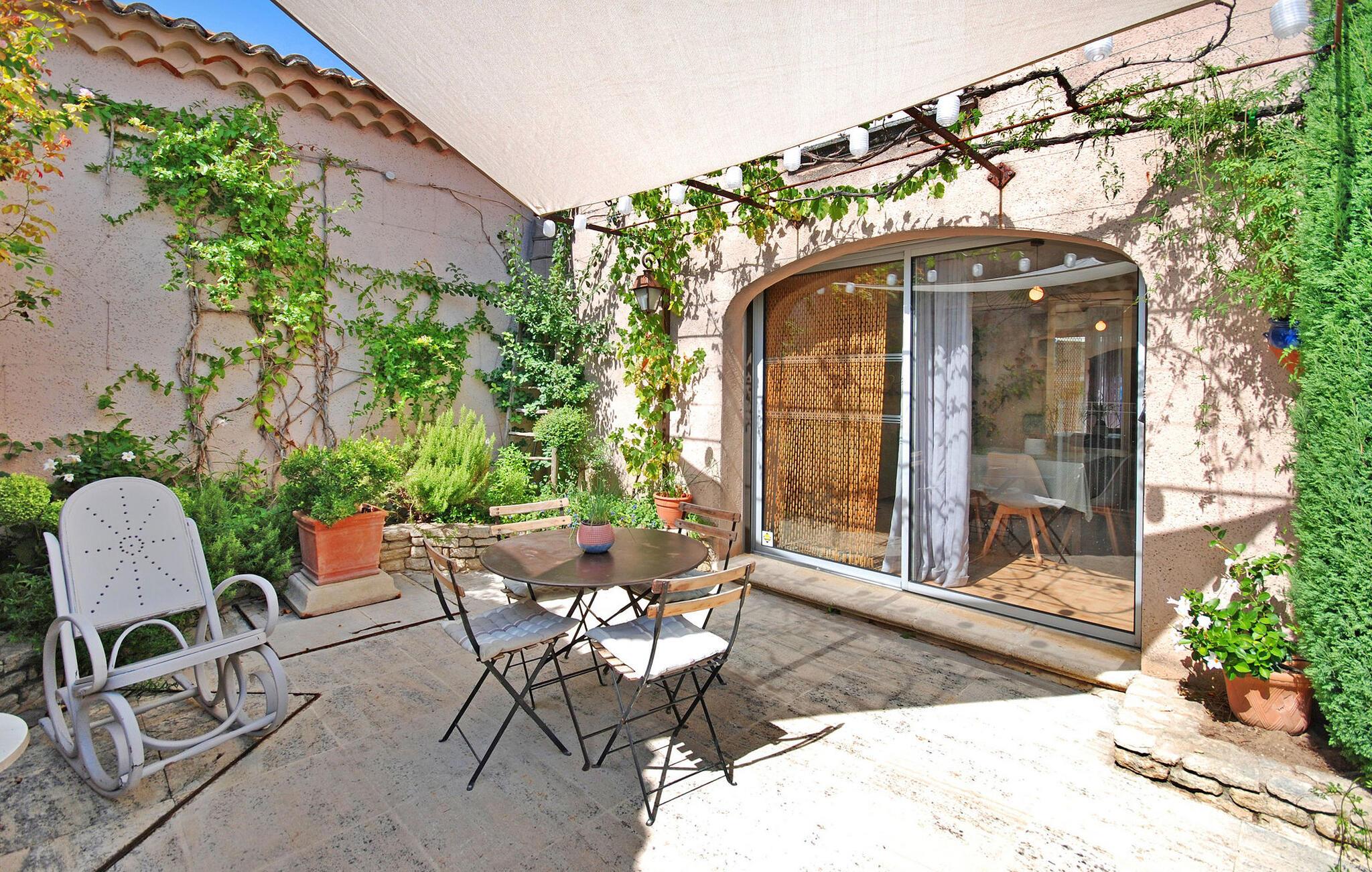 Oplev en nyligt renoveret ferielejlighed i den maleriske landsby Roaix, nær Vaison la Romaine. Dette charmerende tilflugtssted er beliggende i det historiske centrum i stueetagen af ??et landsbyhus med en stor have og en opvarmet privat pool. Indenfor er ejendommen hyggelig og charmerende og tilbyder komfortabel indkvartering til dit ophold. Terrassedøre fører ud til en privat terrasse med gated adgang til den store 10m x 5m private opvarmede swimmingpool. Der er også et imponerende overdækket udendørs køkken med grill, stort spisebord og ekstra badeværelse, hvilket gør det til det perfekte sted at nyde lange aftener udendørs med en flaske lokal vin. Ejendommen er beliggende i hjertet af Roaix' historiske centrum. Lokale butikker og faciliteter kan findes inden for 300 meter. Roaix er også omgivet af flere kendte vinlandsbyer såsom Cairanne, Rasteau, Sablet og Séguret. Lad dig fortrylle af denne fortryllende ferielejlighed. Bemærk venligst: Ejerne, et gæstfrit par, bor i en anden del af huset, hvilket sikrer en sikker og behagelig ferieoplevelse i hjertet af Roaix. Automatisk låge med bipper til gæster.