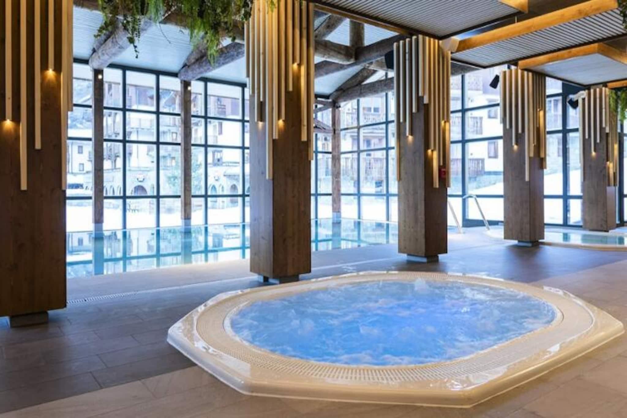 I den fredfyldte omfavnelse af Vanoise Nationalpark tilbyder Les Balcons de Val Cenis Platinium***** et luksuriøst tilflugtssted, hvor de franske alpers skønhed møder uovertruffen komfort. Beliggende i den charmerende landsby Lanslevillard er denne bolig en ideel base for at udforske de majestætiske bjerge, uanset om du kører ned ad sneklædte skråninger om vinteren eller vandrer på naturskønne stier om sommeren. Arkitekturen med stenbeklædning, lærketræspaneler og traditionelle Haute Maurienne-pudsarbejder blander sig harmonisk med det omkringliggende alpine landskab og skaber en atmosfære af elegance og autenticitet. De rummelige lejligheder med plads til mellem 2 og 16 gæster er omhyggeligt designet med avancerede faciliteter for at sikre et mindeværdigt ophold. Hver enhed har et fuldt udstyret køkken, hyggelige opholdsrum og moderne badeværelser, hvilket gør den perfekt til familier, par eller vennegrupper. For dem, der søger afslapning, er det 850 m² store wellness-område et sandt fristed. Slap af i den indendørs pool, boblende spabade eller japanske bade, og foryng dig i saunaer, hammamer eller med en Thalgo-kropsbehandling. Familier vil sætte pris på børnebassinet, mens fitnessentusiaster kan holde sig aktive i konditionstræningsrummet. Val Cenis, det største skisportssted i Haute-Maurienne, kan prale af 133 km pister og et fald på 1.500 meter, hvilket tilbyder en exceptionel skioplevelse. Om sommeren forvandles regionen til et paradis for udendørs eventyr, da dens nærhed til det historiske Mont Cenis-pas og den italienske grænse tilføjer et strejf af kulturel intrige. Ejendommen er bekvemt placeret i nærheden af ??skilifte, vandrestier og landsbyens faciliteter, hvilket sikrer, at alt hvad du behøver er inden for rækkevidde. Uanset om du er her for at stå på ski, vandre eller bare slappe af, lover Les Balcons de Val Cenis Platinium***** en uforglemmelig alpin oplevelse. Lad den betagende udsigt, luksuriøse komfort og rige kulturarv i Haute-Maurienne-dalen skabe minder, der vil vare hele livet.