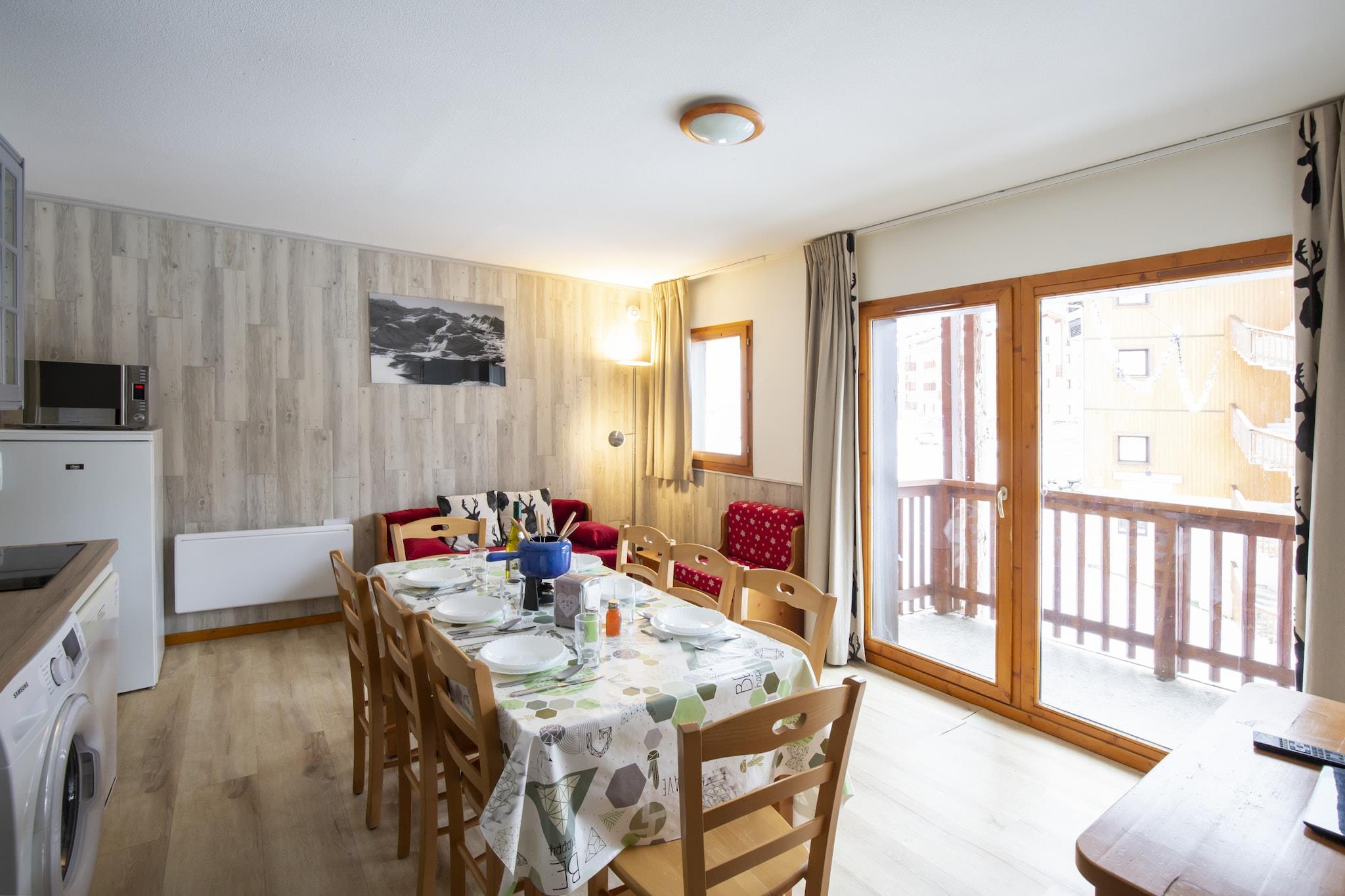 Saml dine kære til en ægte alpeflugt i denne indbydende 3-stjernede lejlighed, designet med familier og vennegrupper i tankerne. Kun 50 meter fra gondolen har du nem adgang til et af verdens største skiområder, hvilket gør det til den perfekte base for både eventyr og afslapning. Det 42 m² store hjem, der ligger på tredje sal, tilbyder en rummelig stue, hvor du kan synke ned i sofaen efter en dag på pisterne, se dine yndlingsprogrammer eller blot træde ud på balkonen for at nyde bjergluften. Det åbne køkken har alt, hvad du behøver for at tilberede behagelige måltider sammen - køleskab, fryser, opvaskemaskine, mikrobølgeovn, kaffemaskine, elkedel og brødrister. Sovepladserne har komfortabel plads til op til otte gæster: en dobbelt sovesofa i stuen, en dobbeltseng i det første soveværelse, to enkeltsenge skubbet sammen i det andet og to sæt køjesenge gemt i entréen - perfekt til børn eller ekstra gæster. To badeværelser, det ene med badekar og separat toilet og det andet med bruser og toilet, gør morgenerne nemme for større grupper. Praktiske faciliteter som skiopbevaring, vaskeri (mod gebyr) og parkering på stedet (afhængigt af tilgængelighed) øger bekvemmeligheden, mens nærliggende butikker (200 m) og restauranter (50 m) holder alt lige ved hånden. Kæledyr er også velkomne, så ingen behøver at blive tilbage. Med muligheden for at tilføje ekstra ydelser som sengelinned, håndklæder og slutrengøring – og særlige partnerrabatter på leje af udstyr og lektioner – vil du nyde et ophold, der er lige så nemt, som det er mindeværdigt. Dette er den slags bjergferie, hvor minder skabes.