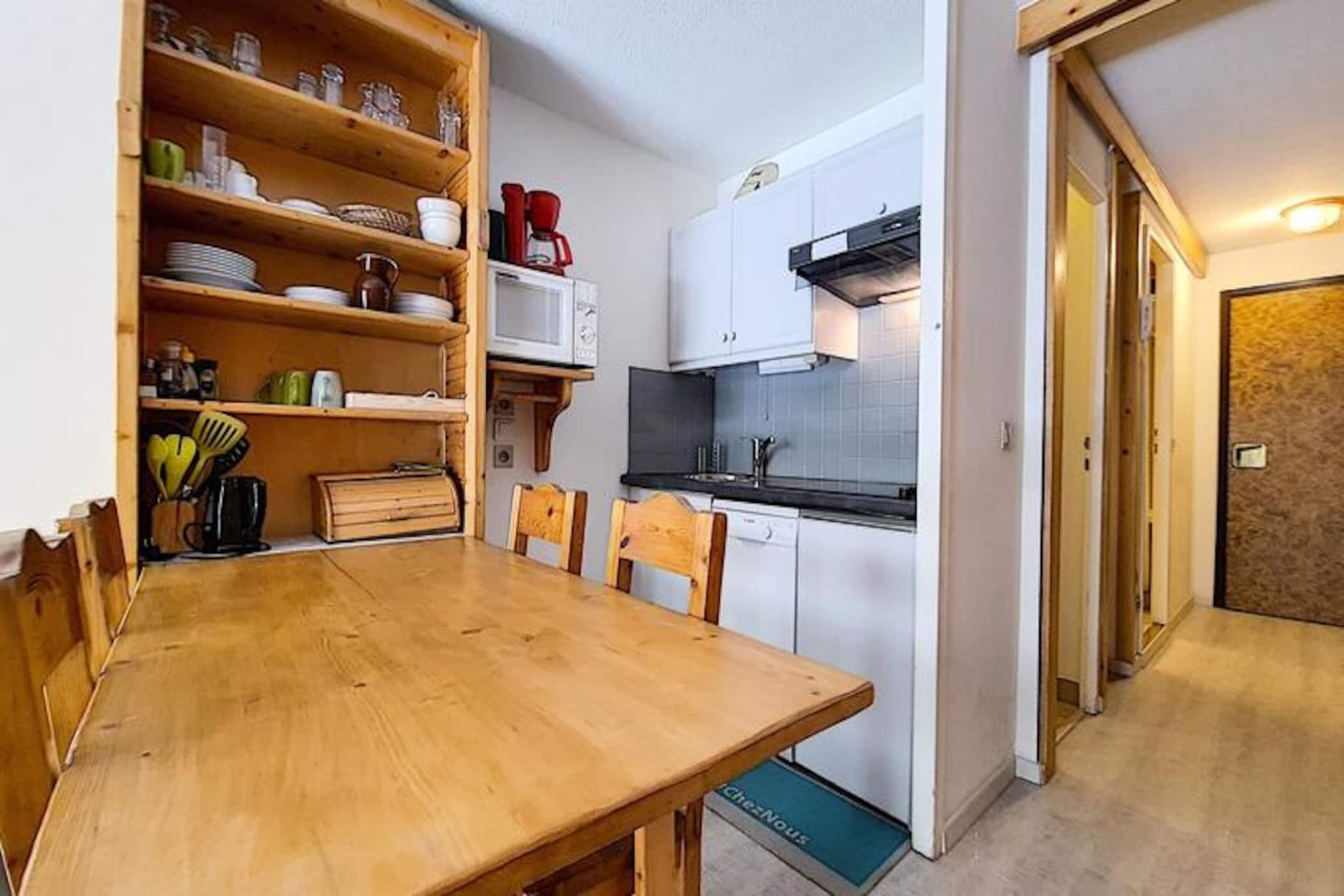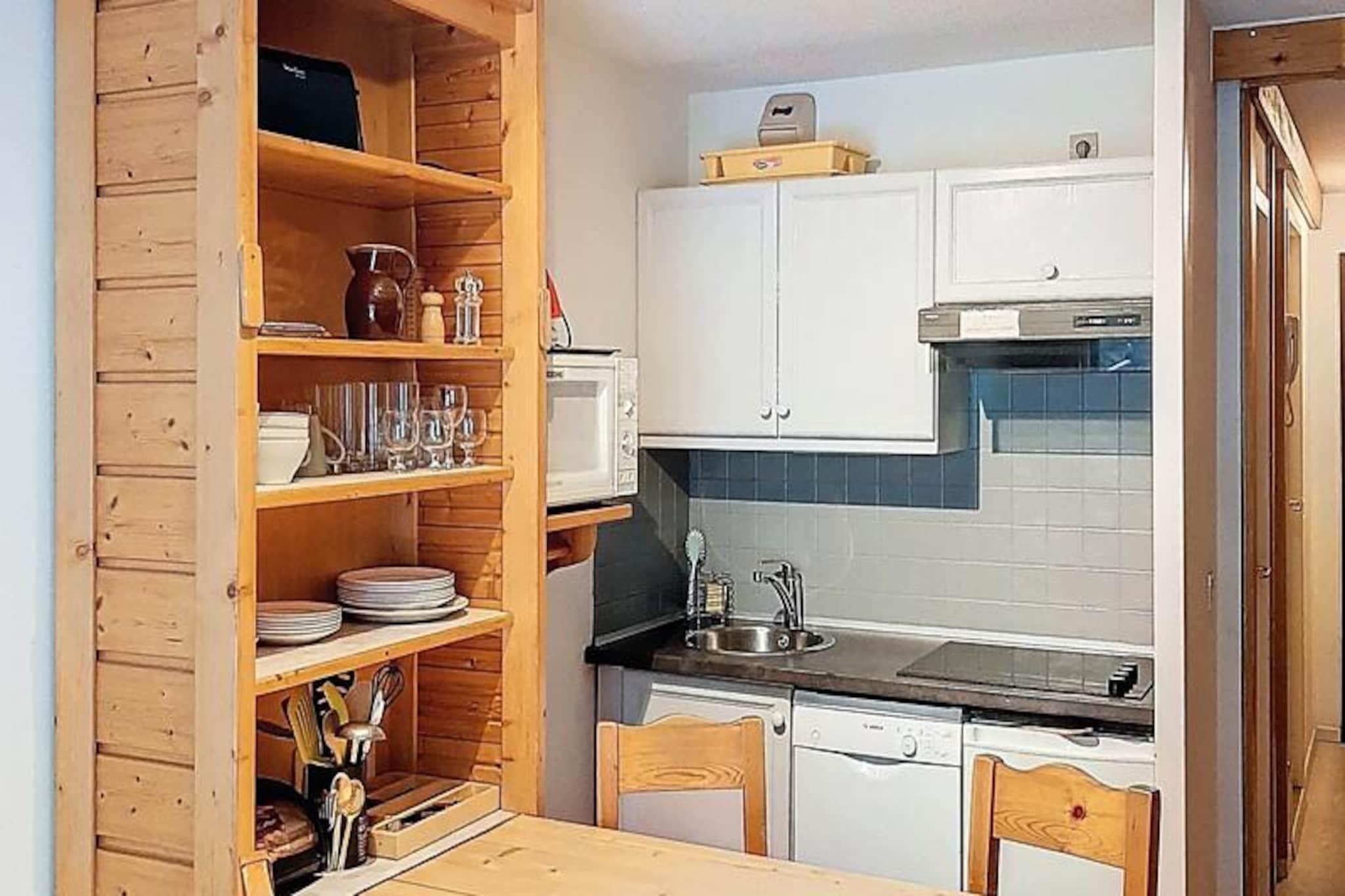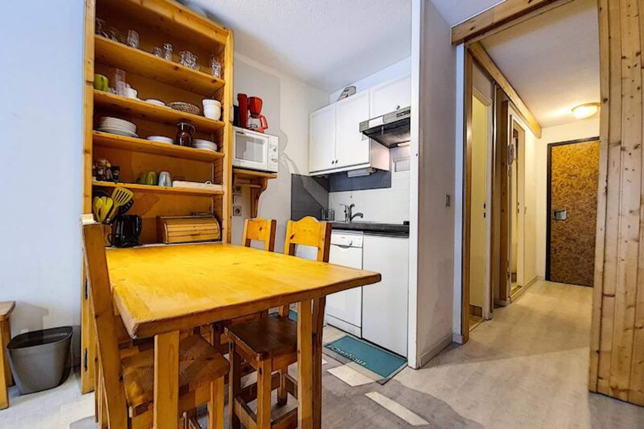 I hjertet af den verdensberømte Val d'Isère tilbyder denne charmerende studiolejlighed en indbydende alpin oase, kun 3 minutters gang fra pisterne. Perfekt beliggende i Le Dôme-residensen kombinerer dette hyggelige tilflugtssted bekvemmelighed med komfort, hvilket gør det til et ideelt valg for par eller små familier, der søger en mindeværdig bjergferie. Den sydvendte terrasse inviterer dig til at nyde den friske bjergluft og solen, mens den centrale beliggenhed sikrer nem adgang til alle feriestedets attraktioner. Indenfor er det 27 m² store studio omhyggeligt designet til at maksimere plads og funktionalitet. Stuen har en komfortabel sovesofa og udtræksseng, hvilket skaber en alsidig soveplads, sammen med en spiseplads og opholdsstue komplet med et fjernsyn. En separat sovealkove med køjesenge giver ekstra privatliv. Det fuldt udstyrede køkken har keramisk kogeplade, opvaskemaskine og mikrobølgeovn, så du kan tilberede solide måltider efter en dag på pisterne. Badeværelset, der er udstyret med en håndklædetørrer, og et separat toilet, bidrager til lejlighedens praktiske faciliteter. Val d'Isères pulserende centrum ligger lige uden for døren og tilbyder et væld af spisesteder, shoppingmuligheder og afterskiing-muligheder. Uanset om du er her for at grave dig gennem uberørt sne eller udforske den livlige landsbyatmosfære, er alt hvad du behøver inden for gåafstand. Derudover kan gæsterne drage fordel af fordelagtige priser på liftkort til Tignes og Val d'Isère, hvilket sikrer problemfri adgang til et af de mest berømte skiområder i verden. Med sin uovertrufne beliggenhed, hyggelige atmosfære og gennemtænkte faciliteter er denne studiolejlighed din indgang til et uforglemmeligt alpint eventyr. Book dit ophold i dag, og oplev magien i Val d'Isère i enhver sæson.