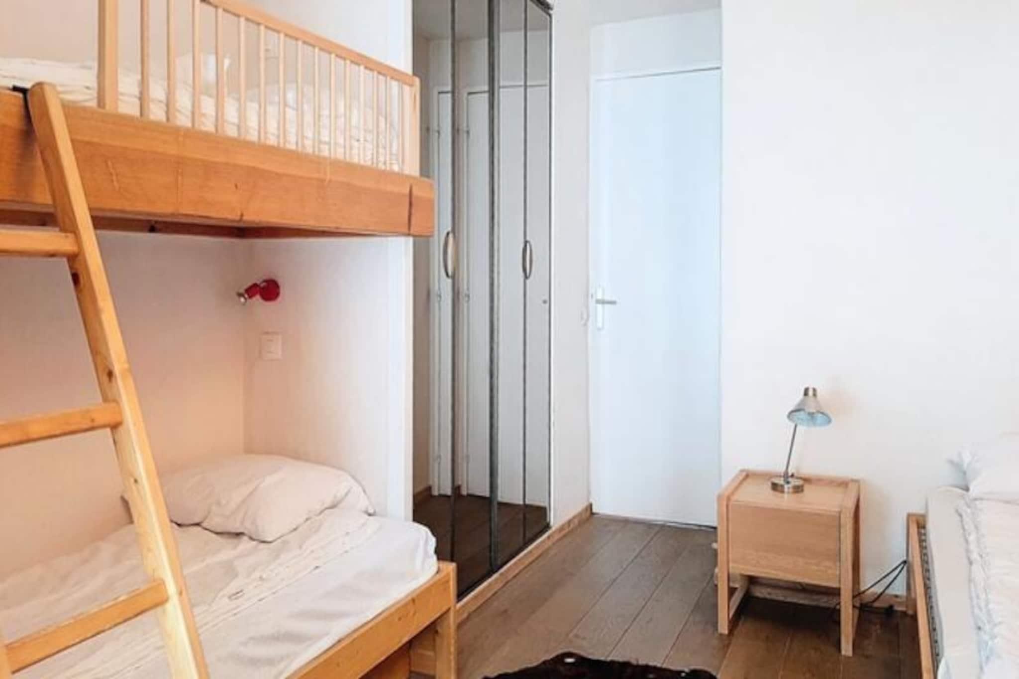 I hjertet af Val d'Isères charmerende La Daille-distrikt tilbyder denne lyse og indbydende lejlighed med 2 soveværelser det perfekte alpine tilflugtssted med ski-in/ski-out-adgang. Forestil dig at vågne op til den friske bjergluft og træde direkte ud på pisterne lige uden for døren. Beliggende i Santel-residensen, kun 1 km fra feriestedets centrum og bekvemt tæt på et indkøbscenter, kombinerer denne ejendom ro med tilgængelighed. Gratis shuttlebusser gør det nemt at udforske den pulserende landsby, mens den sydvendte balkon inviterer dig til at nyde solen og den betagende udsigt efter en dag med eventyr. Denne lejlighed på 50 m² har komfortabel plads til 4-5 gæster, hvilket gør den ideel til familier eller små grupper. Opholdsstuen har en hyggelig spiseplads og stue med tv og Wi-Fi (afhængigt af netværkstilgængelighed). Soveværelset, adskilt af en skydedør, kan prale af en dobbeltseng og eget brusebad, mens det andet soveværelse tilbyder en udtræksseng og en enkeltseng, hvilket giver fleksible sovemuligheder. Det fuldt udstyrede køkken har komfur, ovn, opvaskemaskine og vaskemaskine, hvilket sikrer alle hjemmets bekvemmeligheder. Et separat badeværelse og toilet bidrager til bekvemmeligheden, og sengetøj og håndklæder er omhyggeligt stillet til rådighed under dit ophold. Ud over lejligheden lover Val d'Isère uforglemmelige oplevelser. Fra skiløb i verdensklasse i det berømte Espace Killy-område til afterskiing-oplevelser i feriestedets centrum er hvert øjeblik fyldt med spænding. Det nærliggende indkøbscenter imødekommer dine daglige behov, mens den gratis shuttle-service sikrer problemfri adgang til landsbyens hjerte. Uanset om du er her for at grave dig gennem uberørt sne eller udforske sommerstierne, er denne lejlighed din port til det bedste af de franske alper. Book nu og skab varige minder i dette exceptionelle alpeparadis.