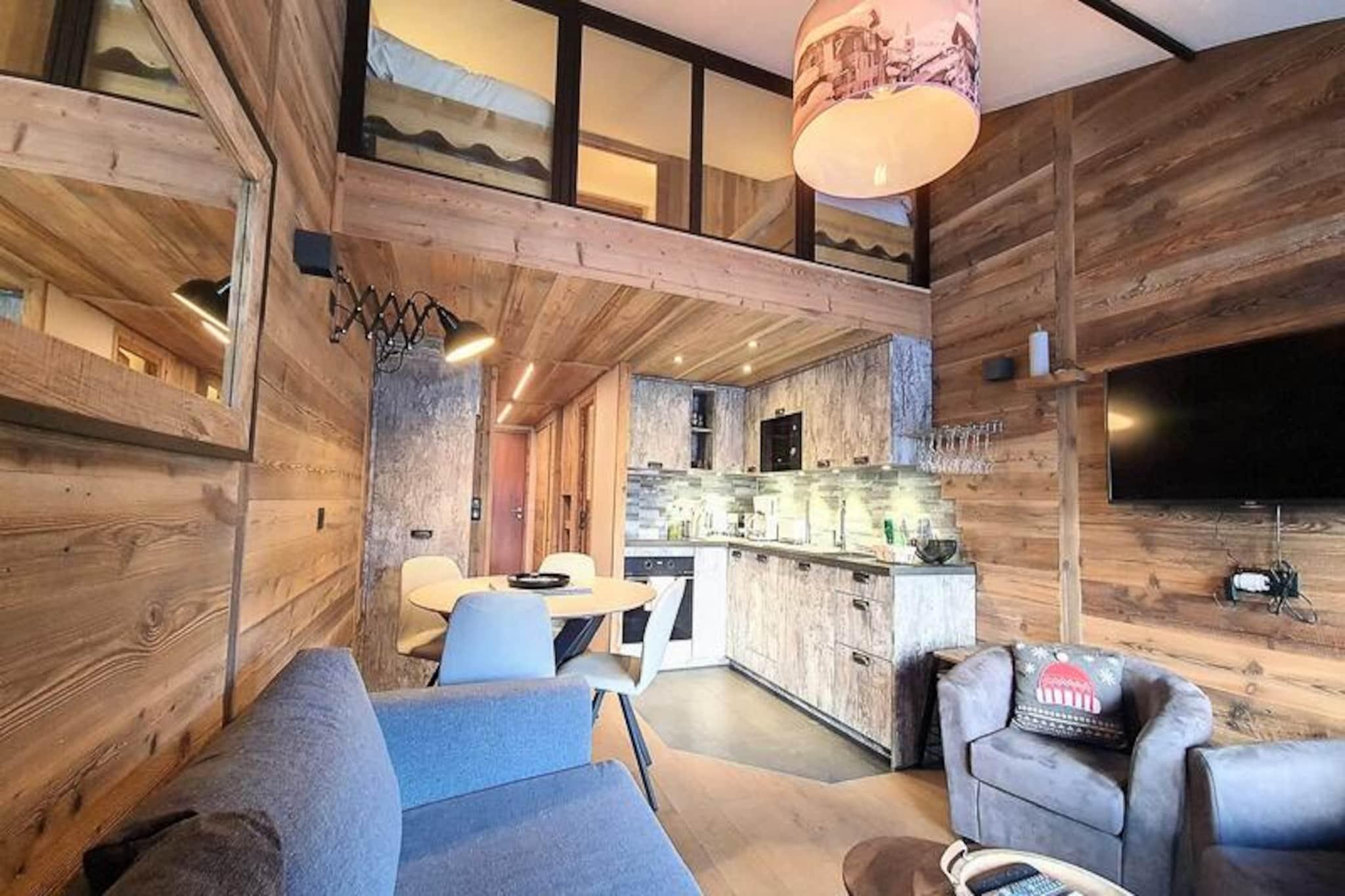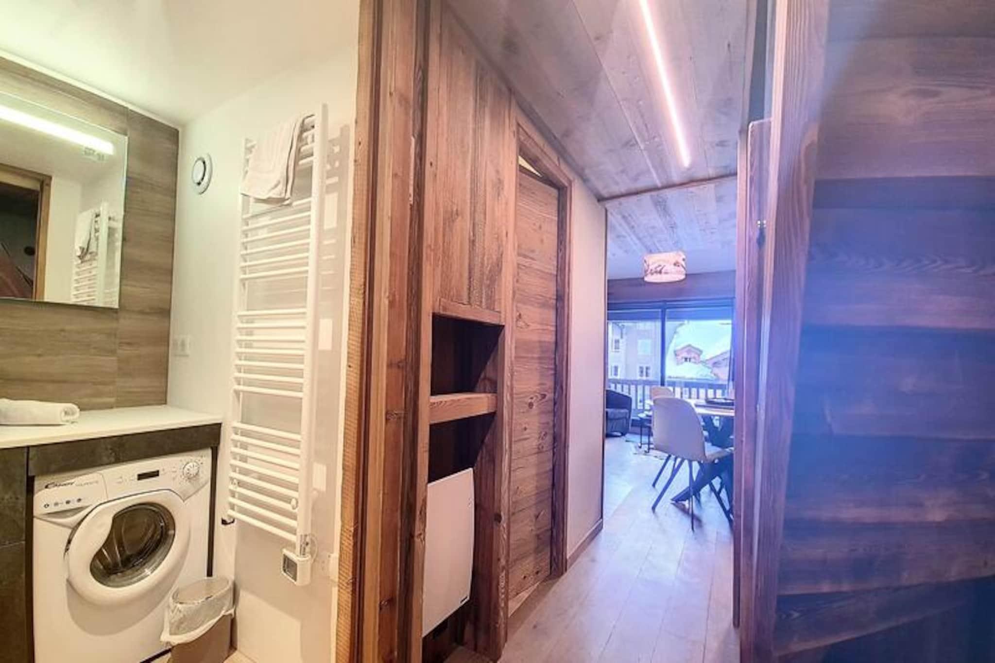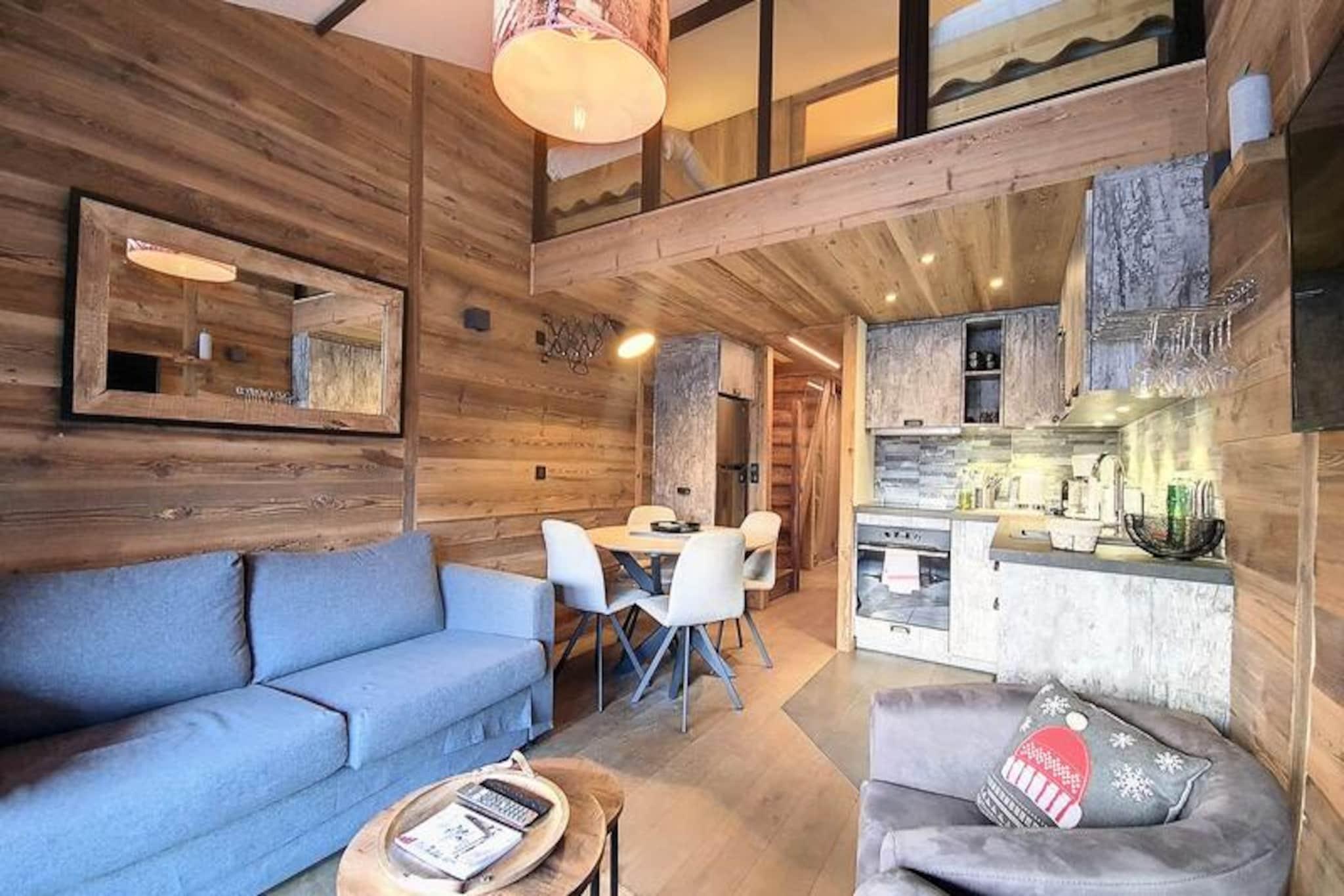 Midt i Val d'Isères pulserende charme tilbyder denne smukt renoverede 2-værelses lejlighed et indbydende tilflugtssted, kun 3 minutters gang fra pisterne. Denne sydvendte perle, der ligger på 4. sal i Le Dôme-residensen, kan prale af en solrig balkon, der er perfekt til at nyde den alpine atmosfære. Uanset om du er her for spændingen ved skiløb eller den rolige bjergluft, er dette hyggelige tilflugtssted designet til at gøre dit ophold uforglemmeligt. \n\nIndenfor har lejligheden komfortabel plads til op til fire gæster. Mezzaninen har et soveværelse med en blød dobbeltseng, mens bjerghjørnet tilbyder to hyggelige enkeltsenge under et ovenlysvindue, hvilket skaber en varm og intim atmosfære. Stuen med spiseplads og lounge er det perfekte sted at slappe af efter en dag med eventyr. Moderne bekvemmeligheder såsom et Smart TV, Wi-Fi (afhængigt af netværkstilgængelighed) og et fuldt udstyret køkken med keramisk kogeplade, mikrobølgeovn og opvaskemaskine sikrer alle hjemmets bekvemmeligheder. Et elegant brusebad, separat toilet og vaskemaskine bidrager til bekvemmeligheden. \n\nBeliggende i hjertet af feriestedet finder du alt, hvad du behøver, inden for rækkevidde. Fra skiboksen i stueetagen til nærliggende butikker, restauranter og afterski-muligheder er beliggenheden uovertruffen. Om vinteren kan du drage fordel af fordelagtige priser på liftkort til Tignes og Val d'Isère, hvilket gør din alpine oplevelse endnu mere problemfri. \n\nUanset om du søger eventyr på pisterne eller et fredeligt tilflugtssted i bjergene, kombinerer denne lejlighed moderne komfort med den tidløse charme i Val d'Isère. Lad magien i de franske alper skabe minder for livet.